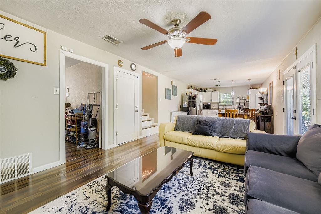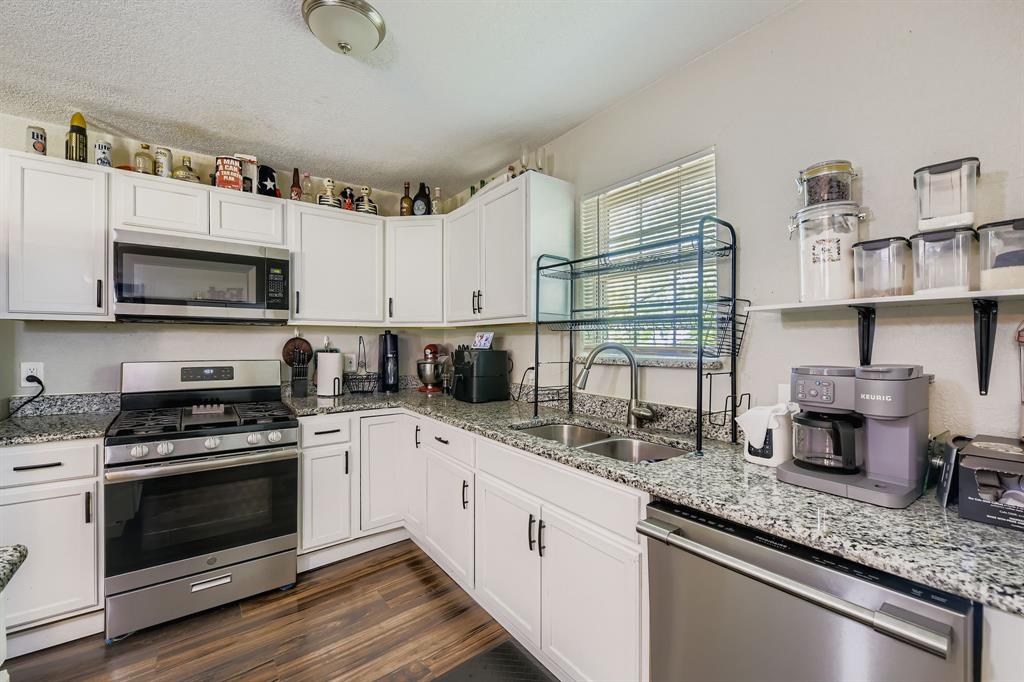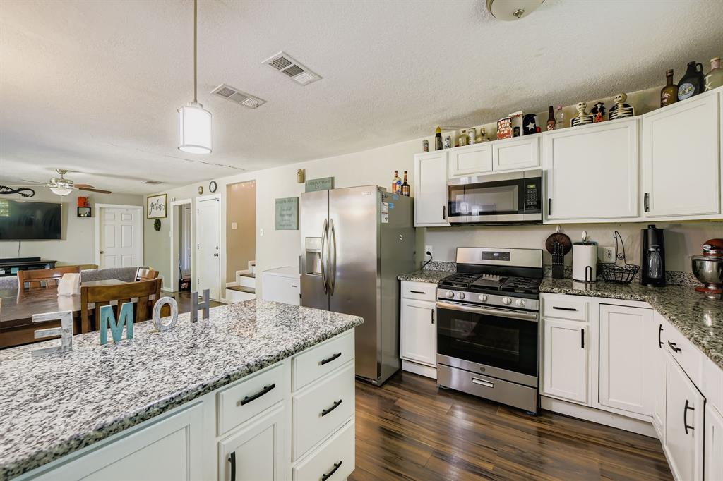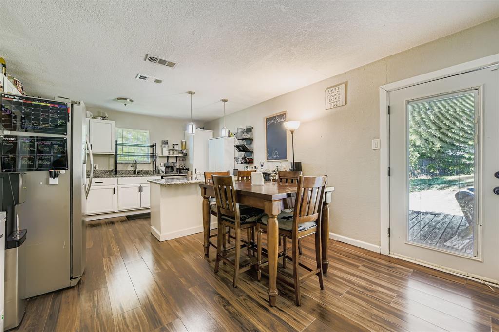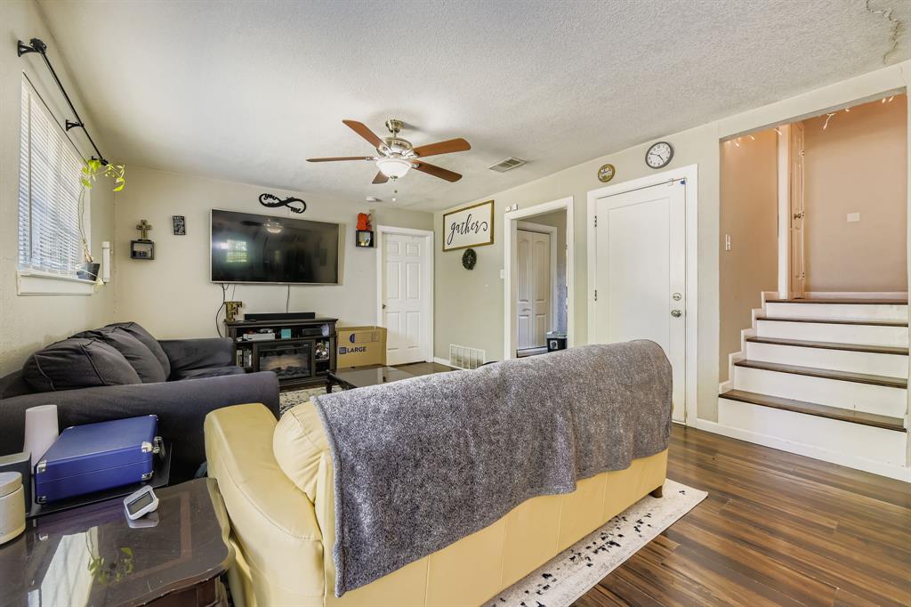 Upstairs, you’ll find three additional bedrooms, providing plenty of space for guests, hobbies, or storage. The fully fenced backyard includes a small patio for outdoor relaxing or entertaining. Situated near Veterans Park, local schools, and with quick access to I-30 and Loop 820, this home offers easy convenience to dining, shopping, and Fort Worth’s vibrant downtown.