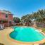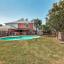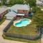 Beyond the walls, the exterior has classic brick construction, promising durability and timeless appeal. The backyard presents an inground pool, perfect for unwinding or entertaining visitors, with plenty of space for outdoor furniture or gardening.