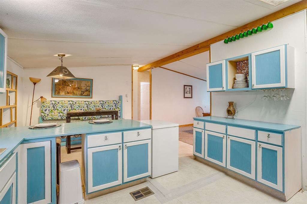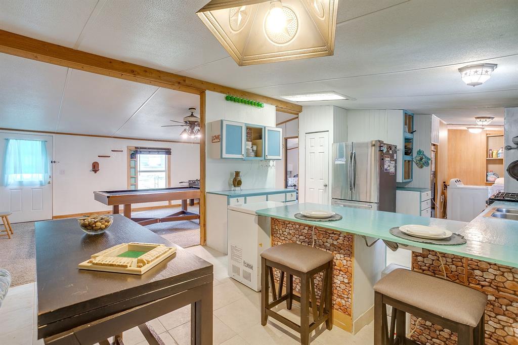 Enjoy the peaceful country! NO HOA, GODLEY ISD! Animals welcome! This beautiful 3 bedroom 1 bath home has new indoor paint and flooring. The living room has an open concept, lots of natural light, and plenty of space for entertaining. Kitchen includes: lots of cabinet space for storage, large pantry, island, and an eat in dining area. Outside, the large backyard is a private retreat, perfect for summer barbecues or simply relaxing in the sun. Enjoy the large detached 2 car garage with electricity. The fire pit and tiki bar complete the yard. Conveniently located within walking distance to schools, restaurants and shops.