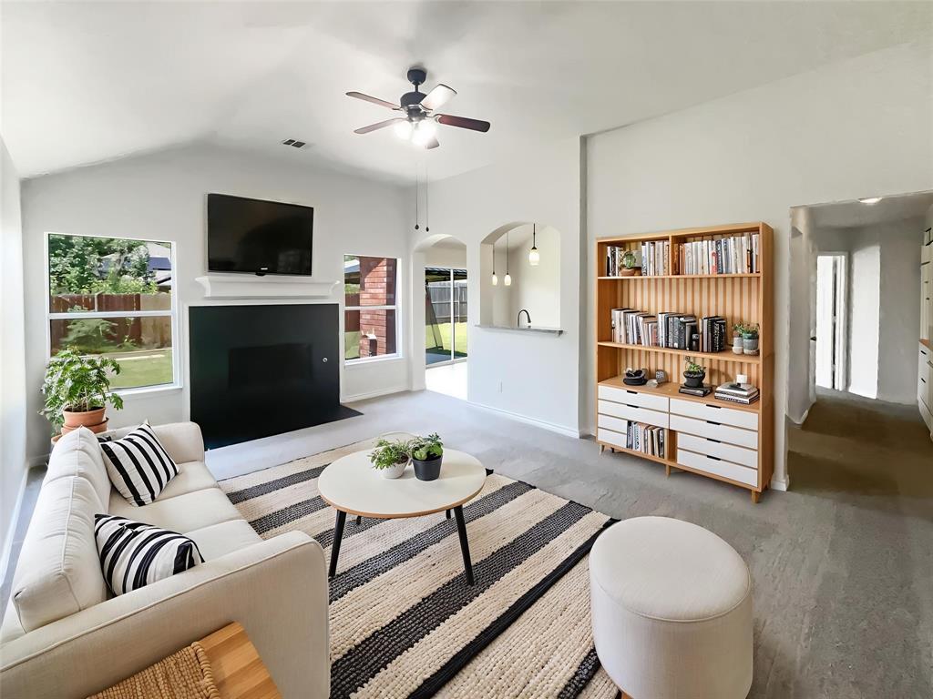 Welcome to this charming property that boasts a host of appealing features. The home's interior is adorned with a neutral color paint scheme, complemented by fresh interior paint, creating a warm and inviting atmosphere. The living room is highlighted by a cozy fireplace, perfect for those chilly evenings. The kitchen is a chef's dream, equipped with all stainless steel appliances. The home also features a partial flooring replacement, adding a touch of modernity. Outside, you'll find a covered patio, ideal for entertaining or simply relaxing. The property also includes a fenced-in backyard, providing privacy and security. This property is a must-see for anyone seeking a home with a blend of comfort and style. This home has been virtually staged to illustrate its potential.. 100-Day Home Warranty coverage available at closing