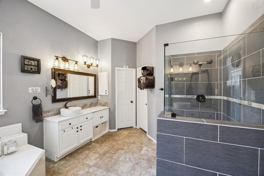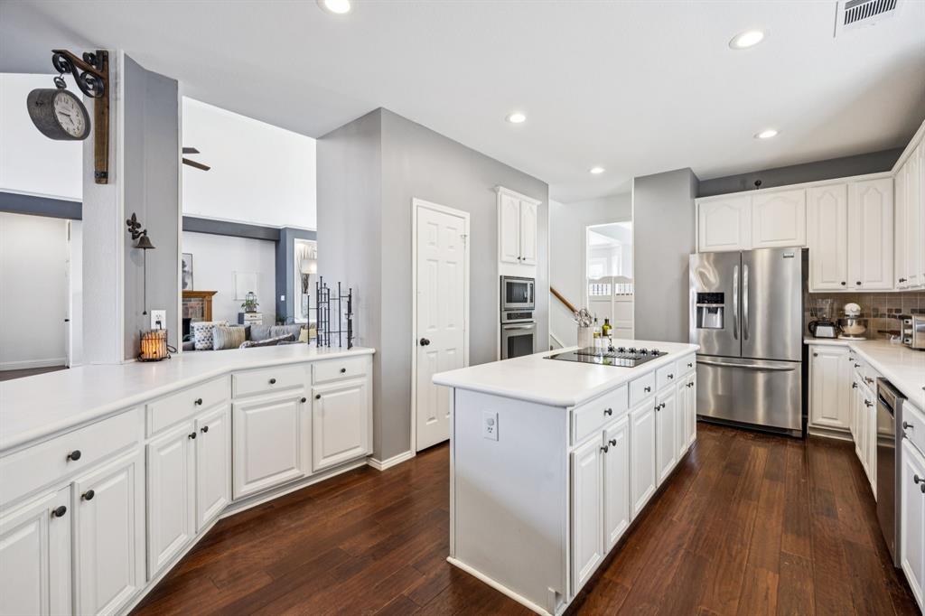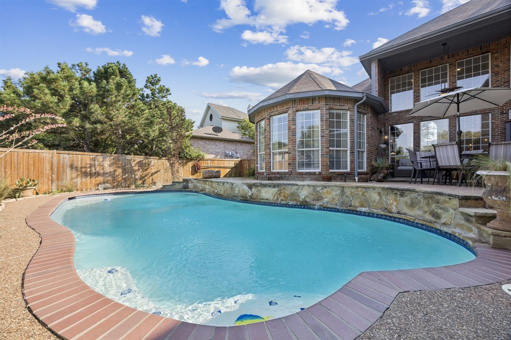 From the moment you step inside, you’ll fall in love with this spacious and thoughtfully designed 5 bedroom 4 bath home, featuring soaring ceilings, and an abundance of natural light. The open floor plan flows beautifully with wood floors throughout the entry, main living room, and chef’s kitchen. To the left of the entry is a versatile double room that provides endless possibilities to make this house truly feel like home, it's perfect as a formal living and dining space, dual offices, or a playroom. Two bedrooms and two full bathrooms are located downstairs, ideal for guests or multigenerational living. The oversized primary suite is tucked away at the back of the home with serene views of the pool and private backyard. Enjoy direct access to the patio, along with a spa-like bathroom with a huge walk-in shower, split vanities, and walk-in closet. The gourmet kitchen features stainless steel appliances, a downdraft cooktop vent in the island, a large stainless steel sink, and a pantry with space for all your Sam’s or Costco trips! The kitchen also includes a built-in desk or office nook that’s convenient for a home computer, managing household tasks, or helping with homework while dinner is on the stove. It opens effortlessly to the everyday dining area and expansive living room, featuring a stunning wall of windows and cozy fireplace. Upstairs, are three additional bedrooms; one with its own ensuite bath, while the other two share a full bathroom with dual sinks. A massive media or game room offers flexible space for movie nights, gaming, or gathering with loved ones. Outside is your own private oasis with a peaceful backyard that includes a sparkling pool, lush landscaping, and plenty of privacy for sunbathing, entertaining, or letting the kids swim in peace. There's even extra parking in the back for an RV, boat, trailer, or additional vehicles. This home truly has it all with space, function, luxury, and a location that puts you right in the heart of McKinney!