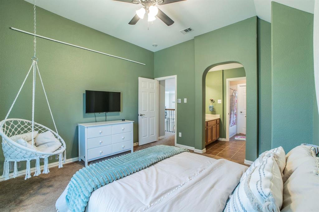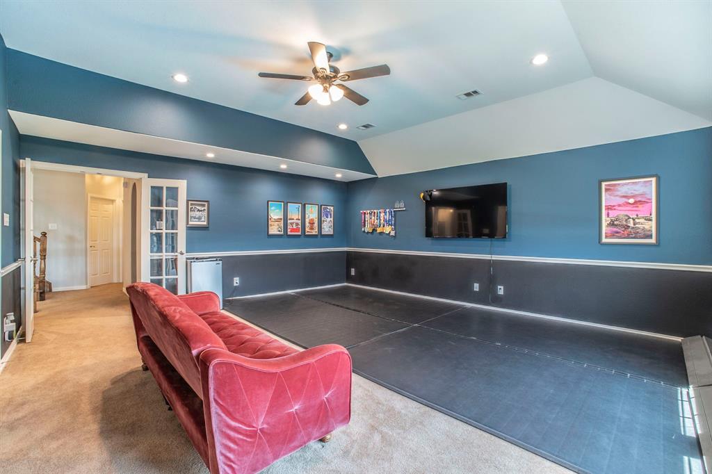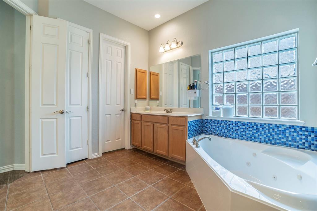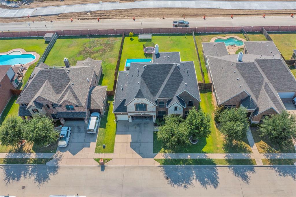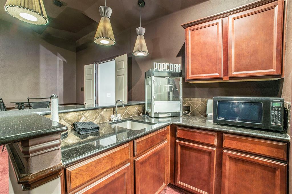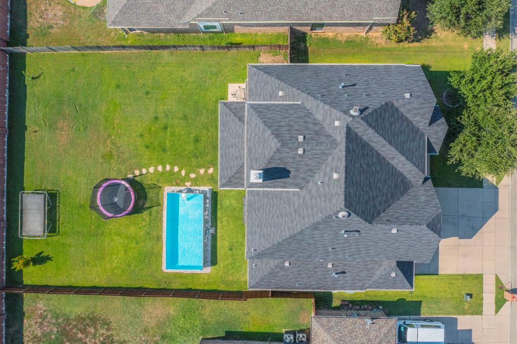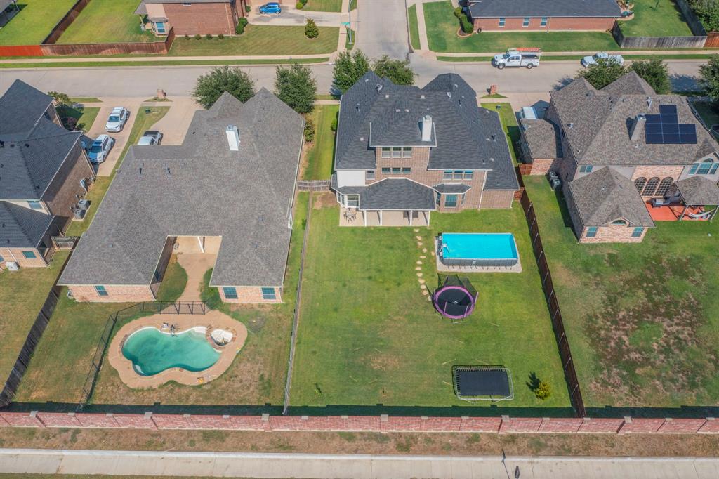 ONE OF A KIND! Three story home! A great floor plan! Notice six bedrooms! The primary bedroom suite is downstairs along with another bedroom currently used as an office. A half bath is also downstairs. The large primary bedroom and bath suite feature an enticing walk-in shower with moving shower heads, a jetted tub and a 16x10 walk-in closet. The open style kitchen was totally updated in late 2021 including updated flooring and fresh paint throughout. There is plenty of storage and counter space and even window seating in the breakfast area. Great for entertaining! The second story has a huge game room with a balcony overlooking the main living area. Four bedrooms are on this level each with a Jack and Jill Bath. The third level features the dazzling Media Room with high end theatre quality equipment, sound deadening insulation, wet bar-kitchenette, fridge, microwave, reclining theatre seating, small dining-seating area and its own rest room. The projector was just updated earlier this year. Out back is a large fenced yard and covered-open patio. There is a quality above ground pool to enjoy. Three car garage up front with plenty of driveway parking space. Notice the quiet cul-de-sac street with very little traffic. Just minutes to I-35 and Hwy 377. Kingsridge Park and Kingsridge West Park are just minutes away and feature playgrounds, trails and more. And the park has been recently updated. The roof was replaced mid 2021. Located in the desirable Keller ISD. Notice the low HOA fee. This home is special and loaded with amenities and other updates. Make it yours!