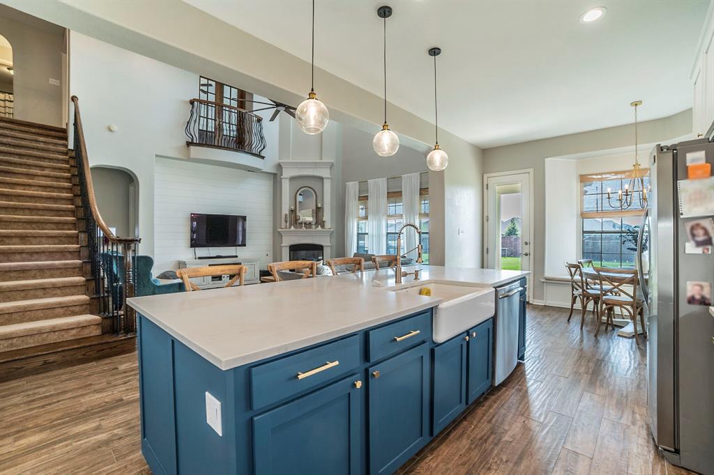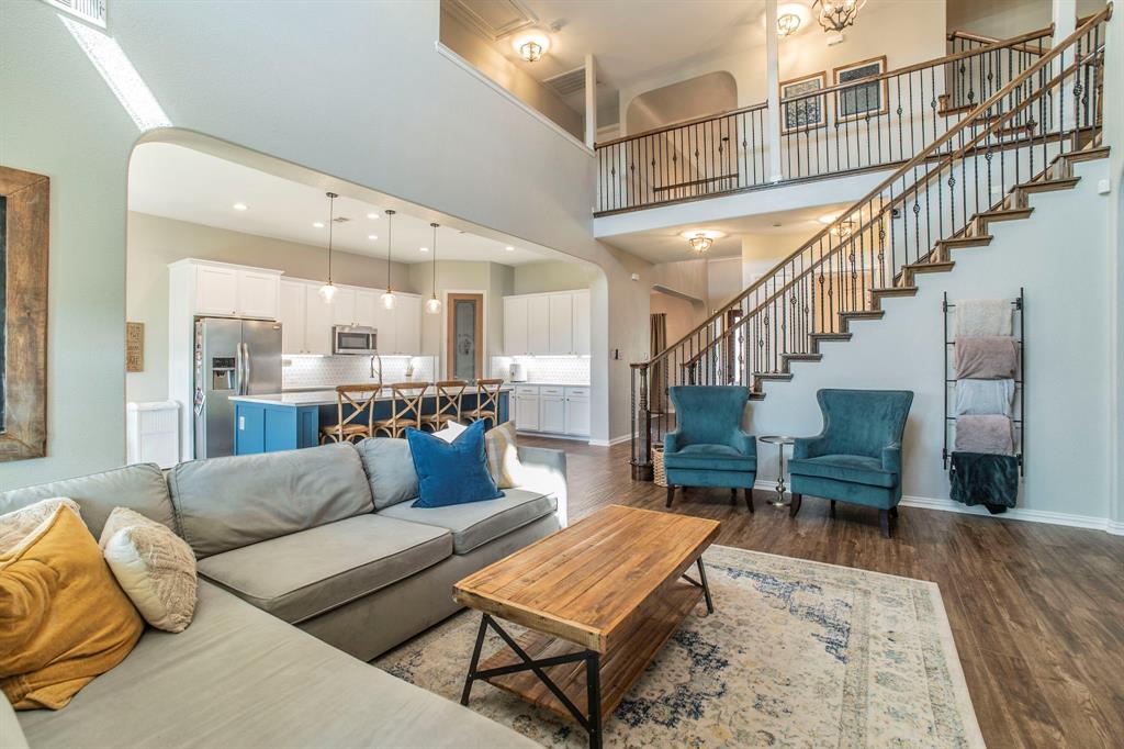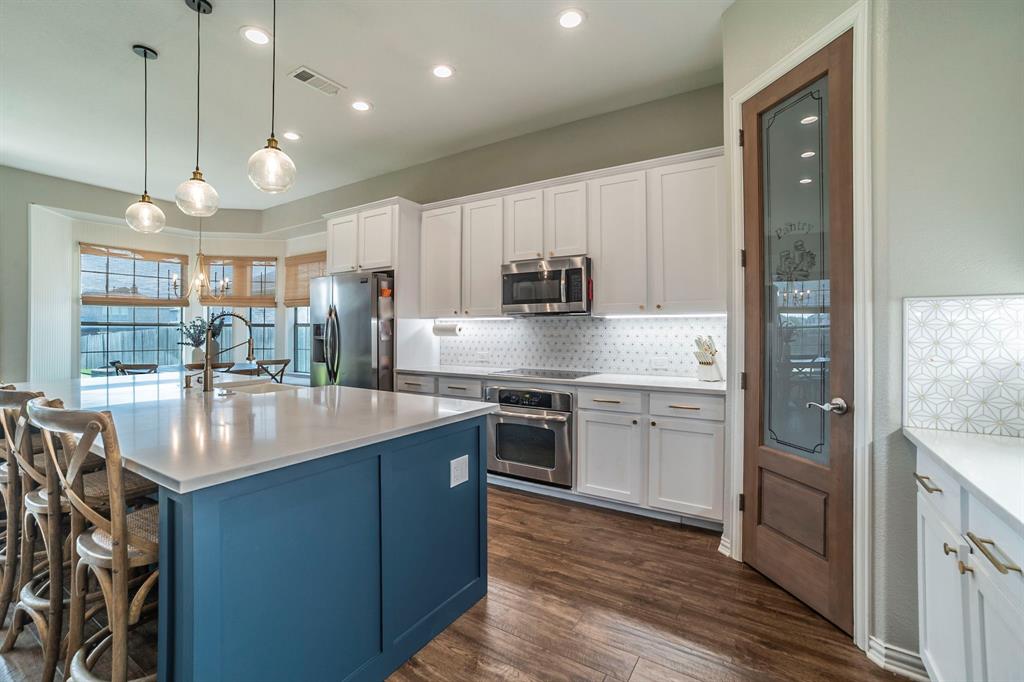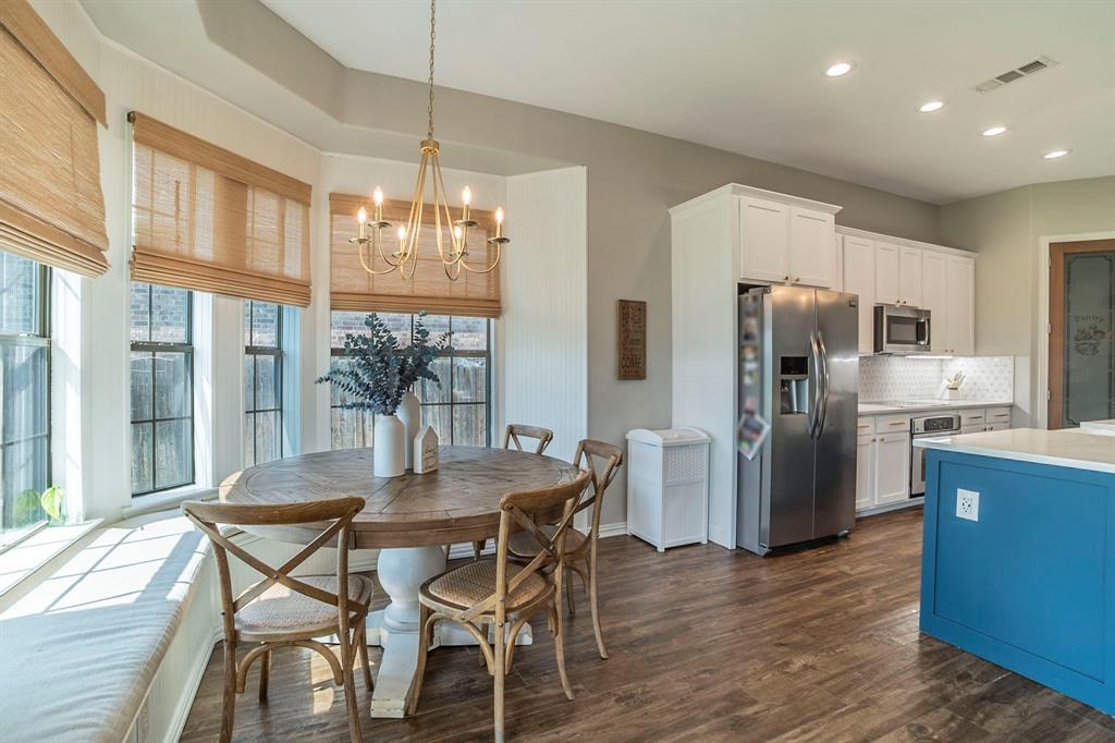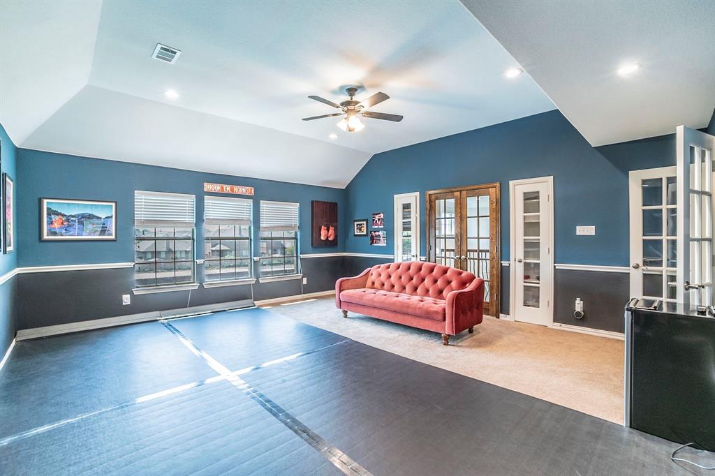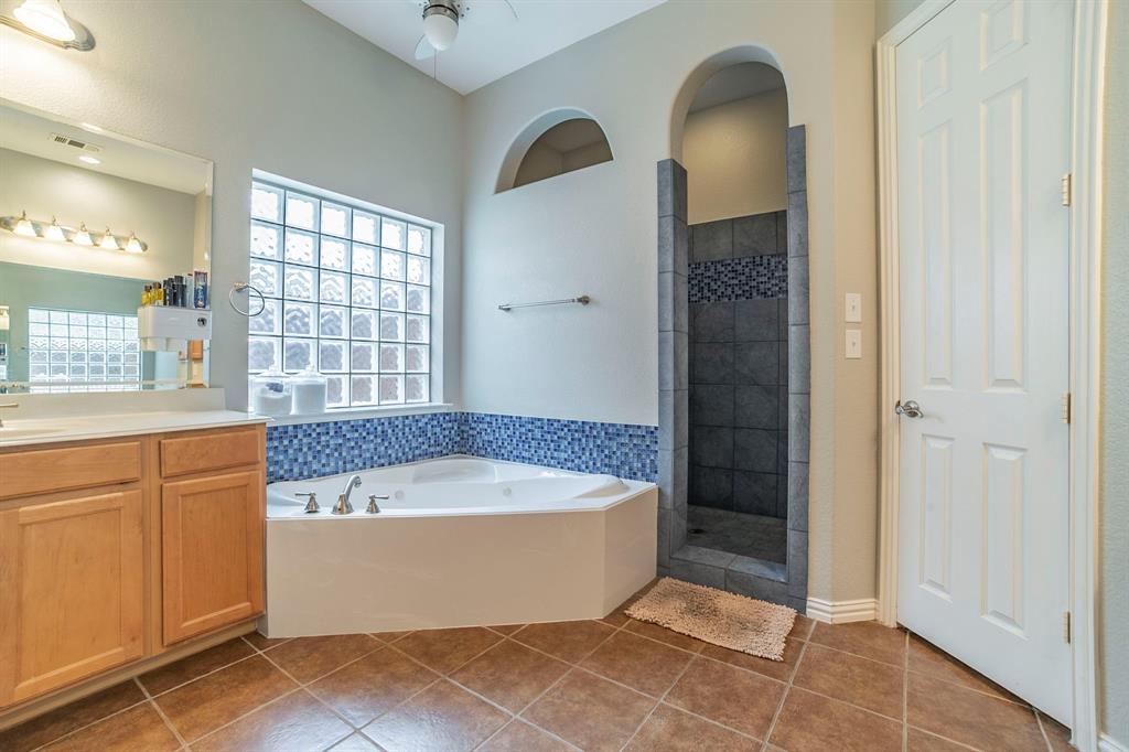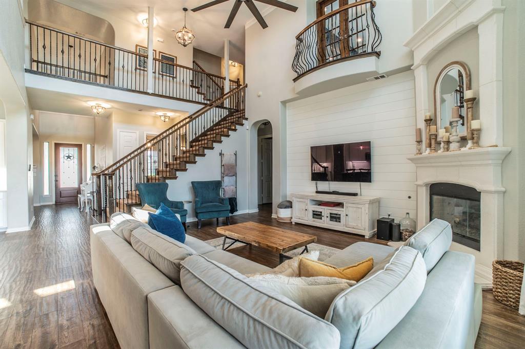 ONE OF A KIND! Three story home! A great floor plan! Notice six bedrooms! The primary bedroom suite is downstairs along with another bedroom currently used as an office. A half bath is also downstairs. The large primary bedroom and bath suite feature an enticing walk-in shower with moving shower heads, a jetted tub and a 16x10 walk-in closet. The open style kitchen was totally updated in late 2021 including updated flooring and fresh paint throughout. There is plenty of storage and counter space and even window seating in the breakfast area. Great for entertaining! The second story has a huge game room with a balcony overlooking the main living area. Four bedrooms are on this level each with a Jack and Jill Bath. The third level features the dazzling Media Room with high end theatre quality equipment, sound deadening insulation, wet bar-kitchenette, fridge, microwave, reclining theatre seating, small dining-seating area and its own rest room. The projector was just updated earlier this year. Out back is a large fenced yard and covered-open patio. There is a quality above ground pool to enjoy. Three car garage up front with plenty of driveway parking space. Notice the quiet cul-de-sac street with very little traffic. Just minutes to I-35 and Hwy 377. Kingsridge Park and Kingsridge West Park are just minutes away and feature playgrounds, trails and more. And the park has been recently updated. The roof was replaced mid 2021. Located in the desirable Keller ISD. Notice the low HOA fee. This home is special and loaded with amenities and other updates. Make it yours!