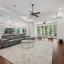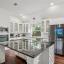 All living areas feature wood flooring and newer fixtures. Soaring ceilings and abundant windows fill the home with natural light. The kitchen was completely remodeled with a large granite center island, making a great conversation area. The appliances are stainless steel, the upper cabinets feature glass doors, and there’s a stylish pantry door with ample cabinetry. The light in this room is wonderful.