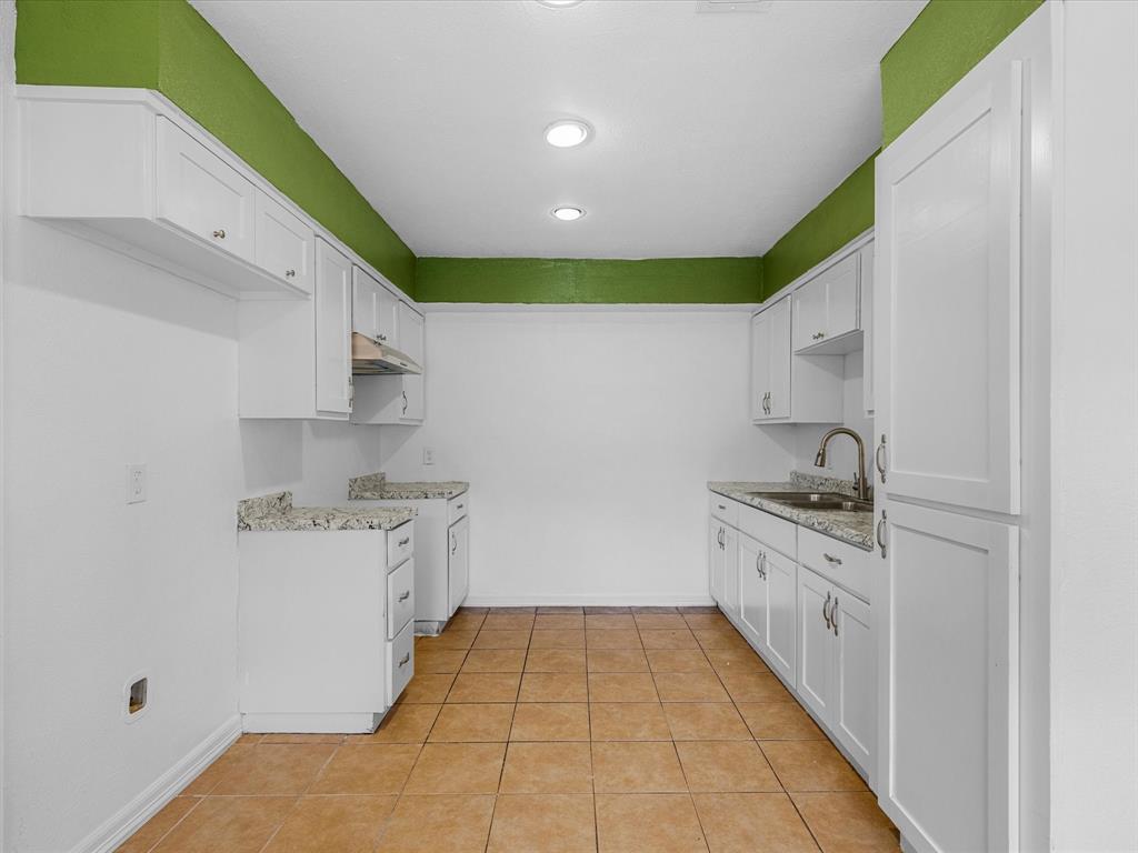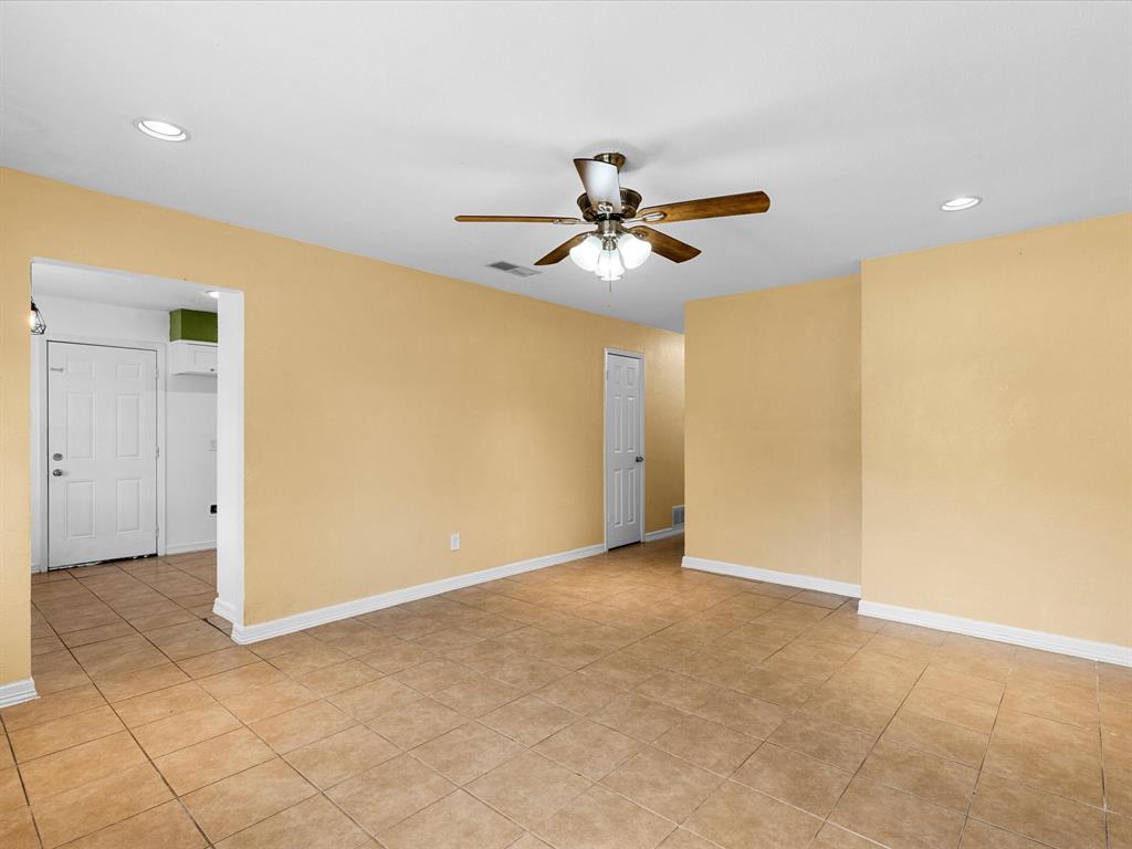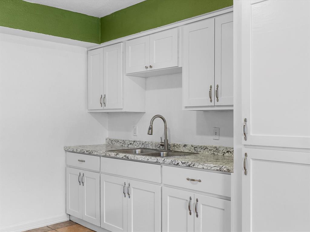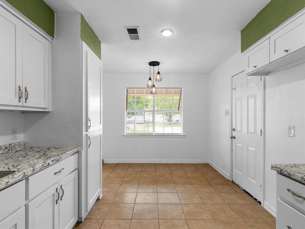Inside you'll find 3 spacious bedrooms and 2 full bathrooms, along with tile flooring throughout for easy maintenance. The home features a renovated kitchen with new countertops, white cabinetry, and stylish lighting, flowing seamlessly into the dining and living areas.