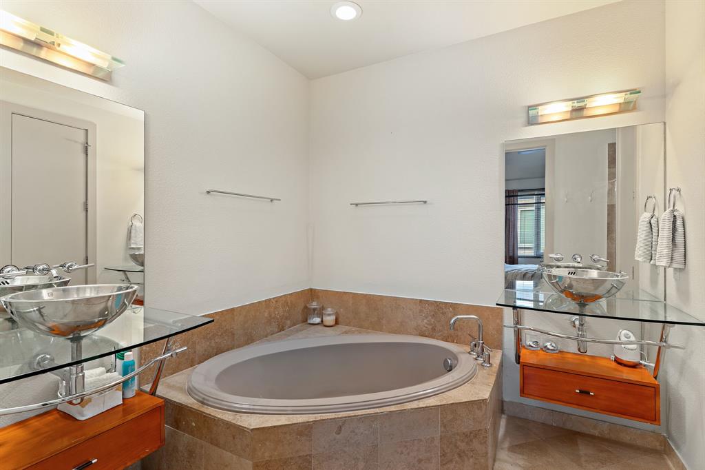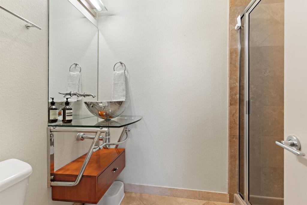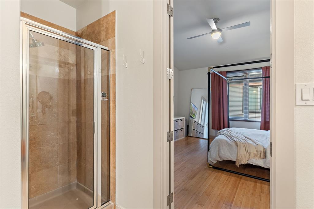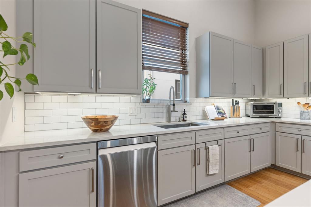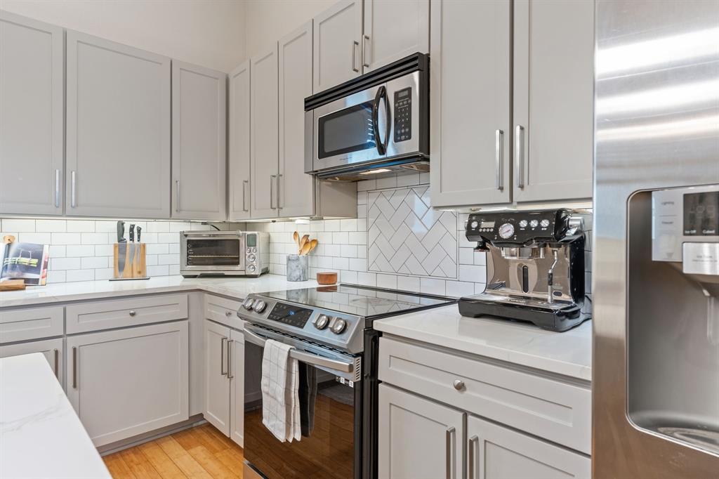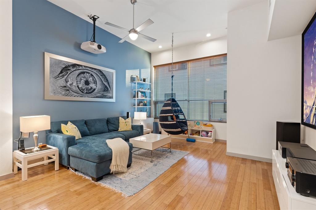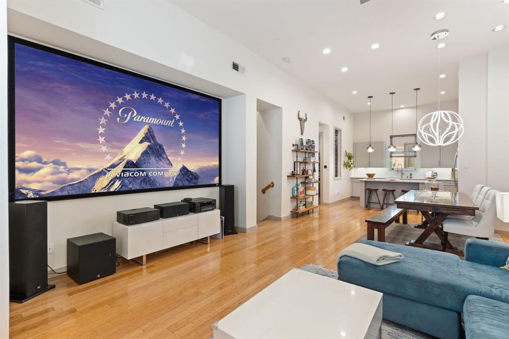 Step into city living in Dallas' Lower East Village with this modern and contemporary 3-story townhome offering 3 bedrooms, 3.5 bathrooms and a rooftop patio with incredible views of the Dallas skyline. Designed for comfort and convenience, the layout features a first-floor bedroom with en-suite bath—perfect for guests or a home office. The second level offers an open-concept kitchen, dining, and living area with bamboo hardwood floors, stainless steel appliances, granite countertops, a large pantry, breakfast bar, and powder bath—ideal for entertaining or everyday living. Upstairs, two spacious bedrooms each include private en-suite baths, including a primary suite with dual vanities, soaking tub, and walk-in shower. Enjoy your morning coffee or evening wine on the private rooftop terrace with incredible downtown Dallas views. Additional features include wet bar with wine fridge and built in keg set up, negotiable projector screen, Tesla charger in garage. With easy access to restaurants, shops, and major freeways, this home offers the perfect mix of style, function, and convenience—ideal for homeowners wanting to live near the heart of it all.