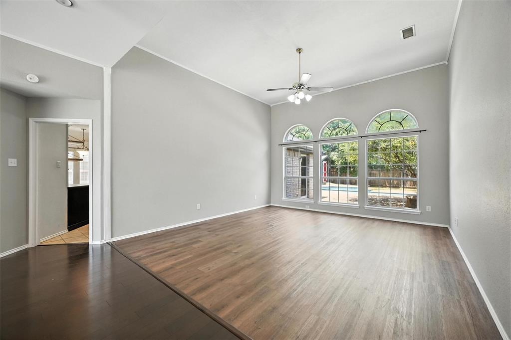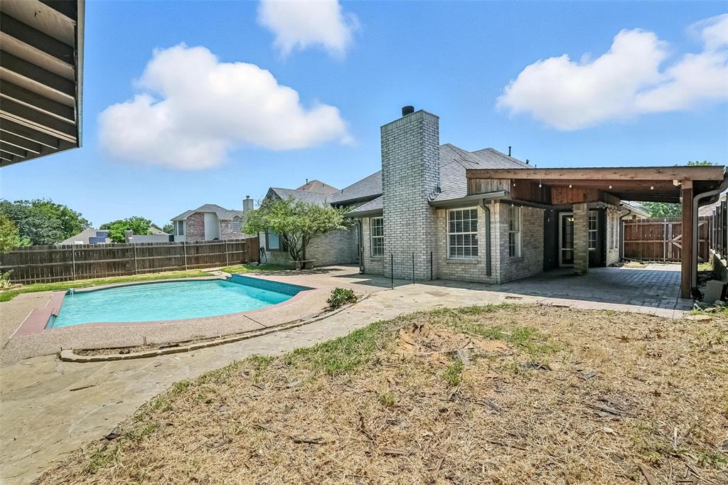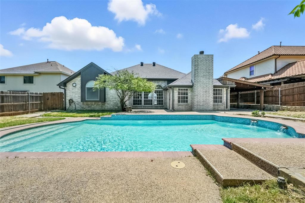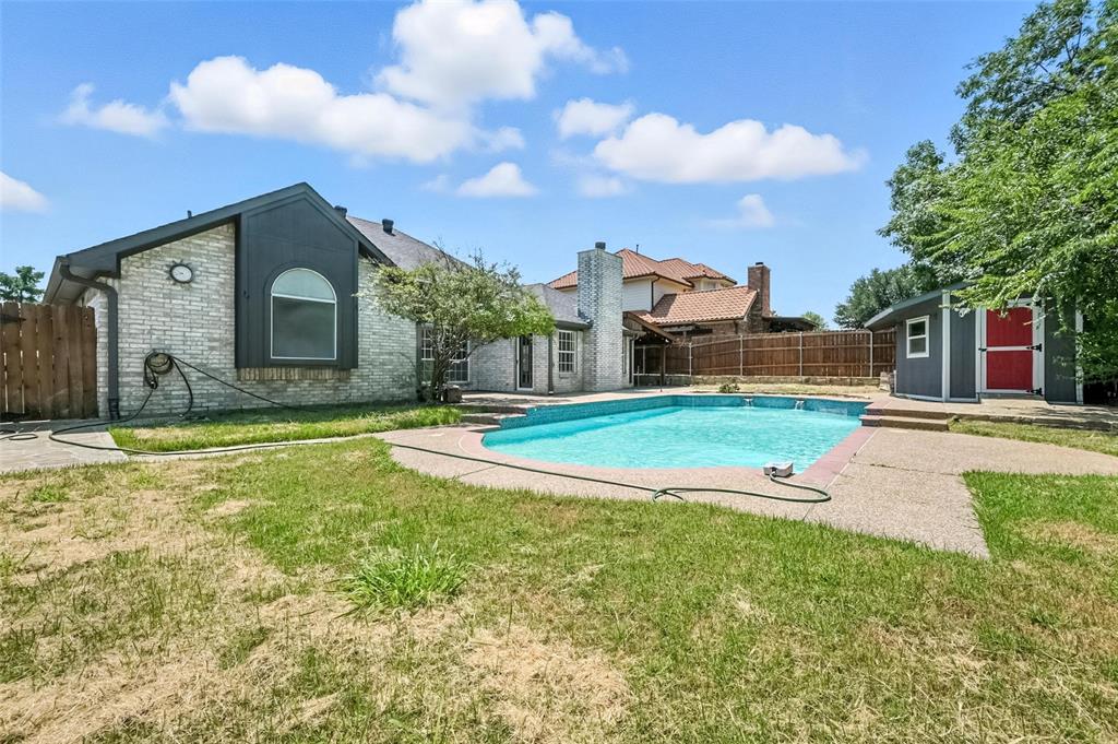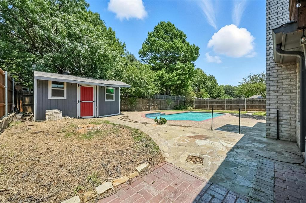 Welcome to this inviting home located in the heart of North Richland Hills, nestled within the established Foster Village subdivision. This beautifully maintained residence offers over 2,100 square feet of well-designed living space, including 3 bedrooms and 2 full bathrooms. Enjoy seamless indoor-outdoor living with an open-concept layout that connects the kitchen, den, and breakfast nook to multiple outdoor living areas—perfect for entertaining or everyday relaxation. A dedicated dining area adds a touch of sophistication, while the flexible floor plan provides ideal spaces for both work and leisure. The private backyard is a true retreat, featuring a sparkling pool, shaded patio, and a charming storybook potting shed alongside a separate tool shed. Inside, the primary suite showcases custom built-ins, crown molding, and a designer accent wall, while the secondary bedrooms offer generous space and timeless finishes. Ideally located just a short walk to Cross Timbers Park and within close proximity to shopping, dining, and schools. Do no miss this opportunity.