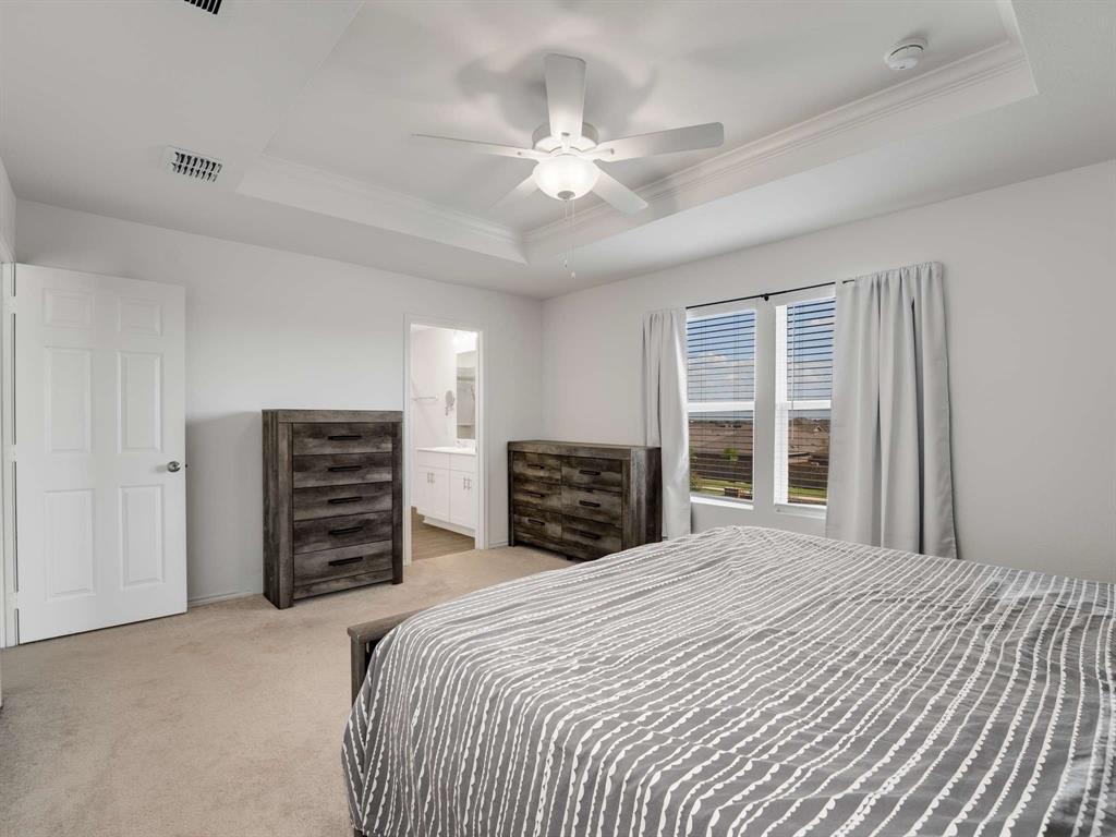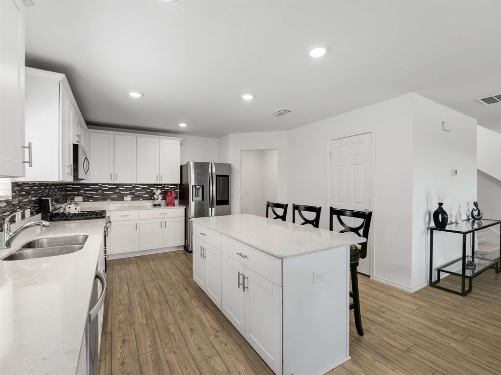 Highly desired floorplan on a premium lot, perfectly blending style, comfort, and functionality. The open-concept design seamlessly connects the living, dining, and kitchen areas, creating an inviting space for both entertaining and everyday life. The kitchen stands out with a sprawling island, abundant cabinetry, a huge walk-in pantry, and thoughtful design that makes cooking and gathering effortless. The large primary suite features a spa-like ensuite with an oversized shower, while secondary bedrooms are thoughtfully placed for privacy. A generous loft offers flexible space for media, play, fitness, or a quiet retreat, and generous storage is found throughout. Outside, the large lot and expansive private backyard provide endless possibilities for outdoor living. Move-in ready with tasteful finishes, this home delivers the feel of a designer model with the comfort of a lived-in space—all in a prime location with quick access in and out of the neighborhood.