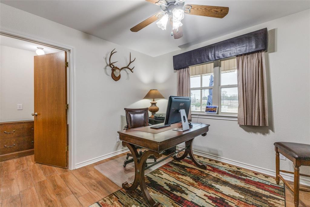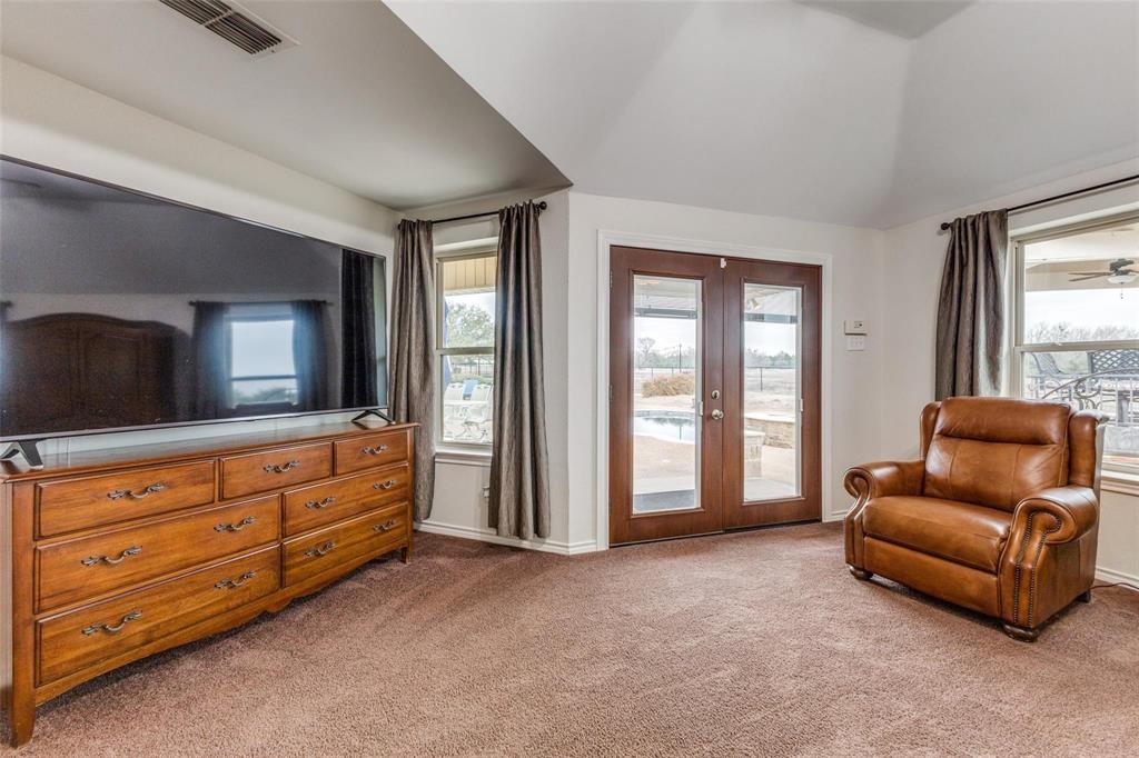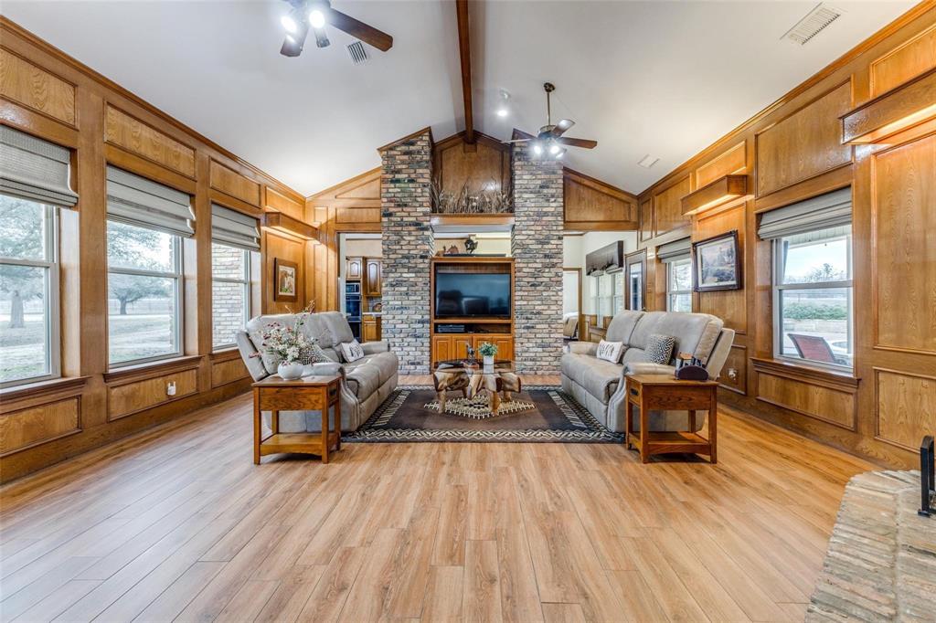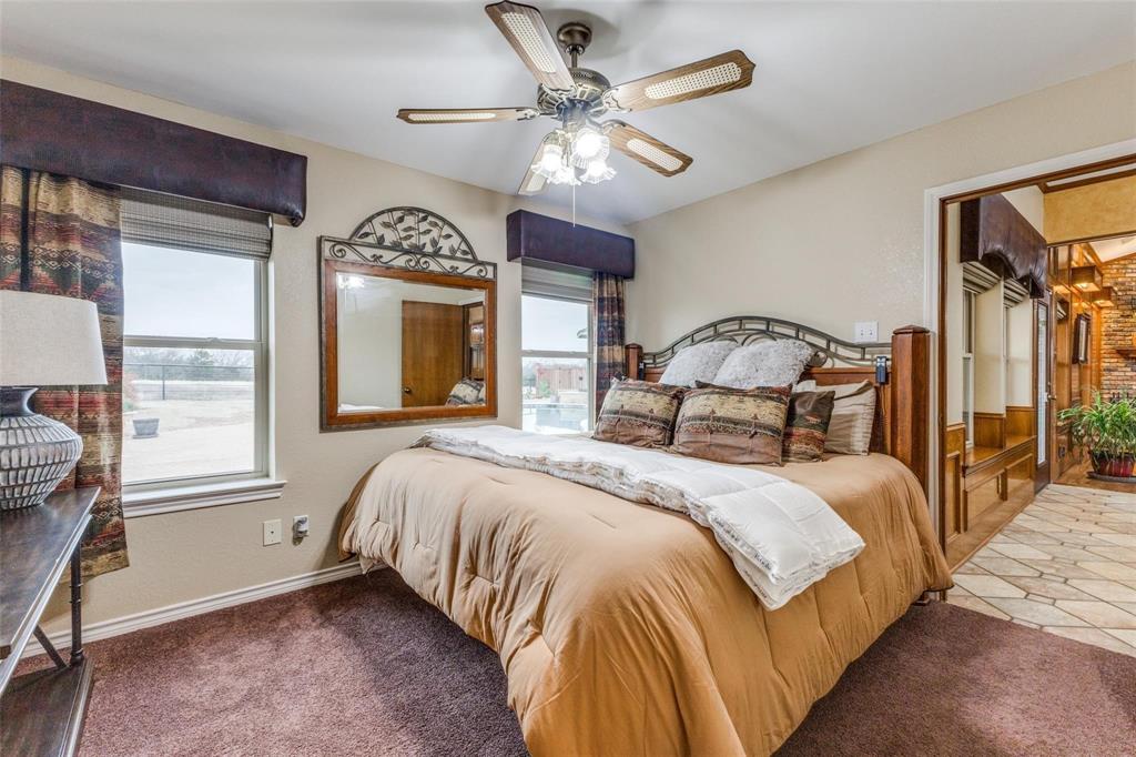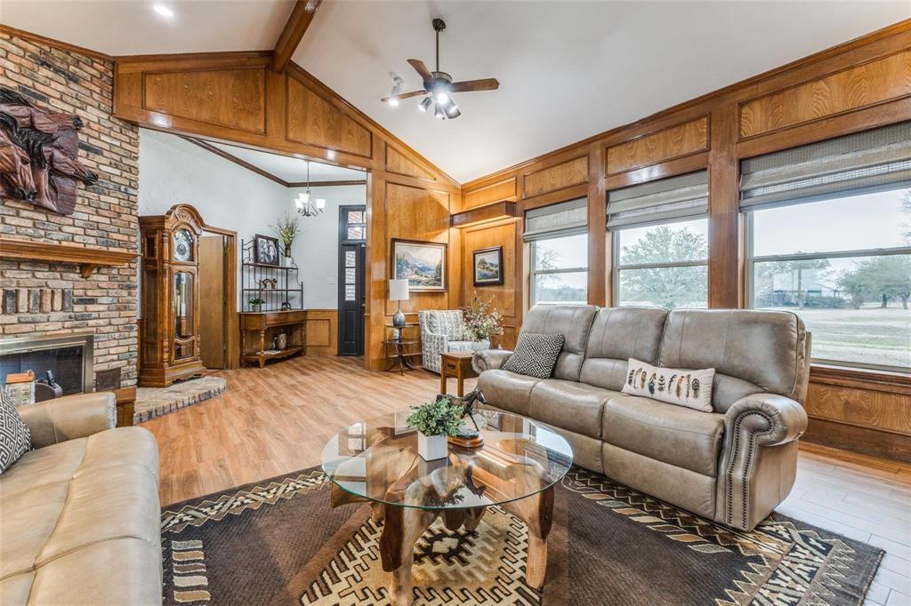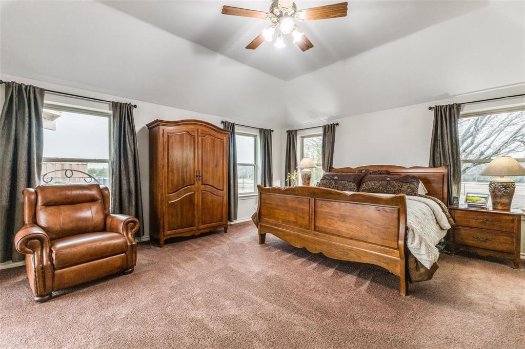 Embrace the ultimate ranch lifestyle on this sprawling 46+ acres in Blue Ridge, TX! This completely private custom-built brick home features four bedrooms, three full baths, and expansive views that showcase stunning sunsets and sunrises. Inside, enjoy a large living room with wooden paneling and a cozy fireplace, along with an expansive kitchen and dining area. Spacious primary suite boasts an en-suite bath with a walk-in shower. For equestrian enthusiasts, a covered riding arena with roll-up and side doors, eight stalls, an observation deck, and wash racks awaits. A large office with AC and an efficiency apartment adds convenience. Outdoor living is exceptional, complete with a refreshing pool, spa with a water feature, gazebo, and open patio for relaxing while enjoying beautiful views. Recent updates include a new roof, doors, and windows. This ranch also has cross fencing, stocked pond, a two-story dock with a fishing pier, a garage with RV hookup, private on property trails and additional barns for endless possibilities. Live your dream lifestyle in this beautiful ranch haven! Wildlife exempt.