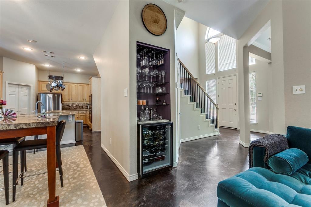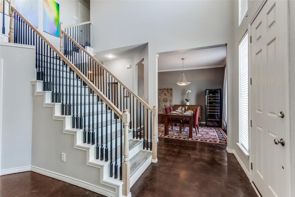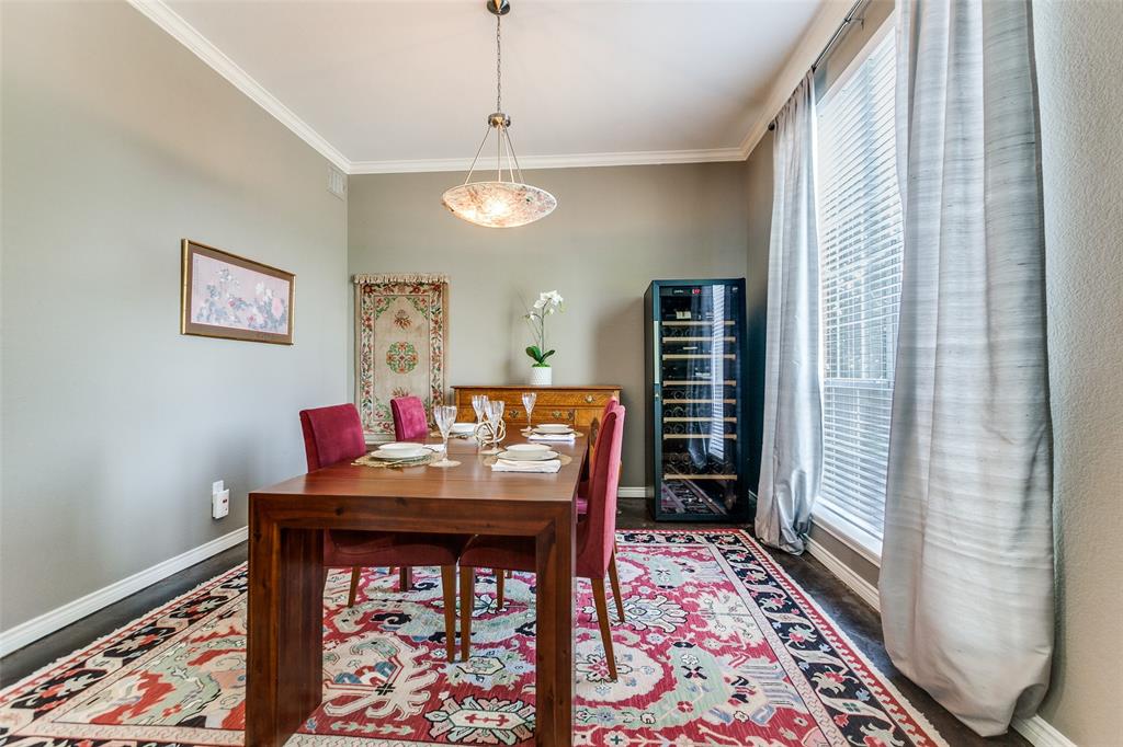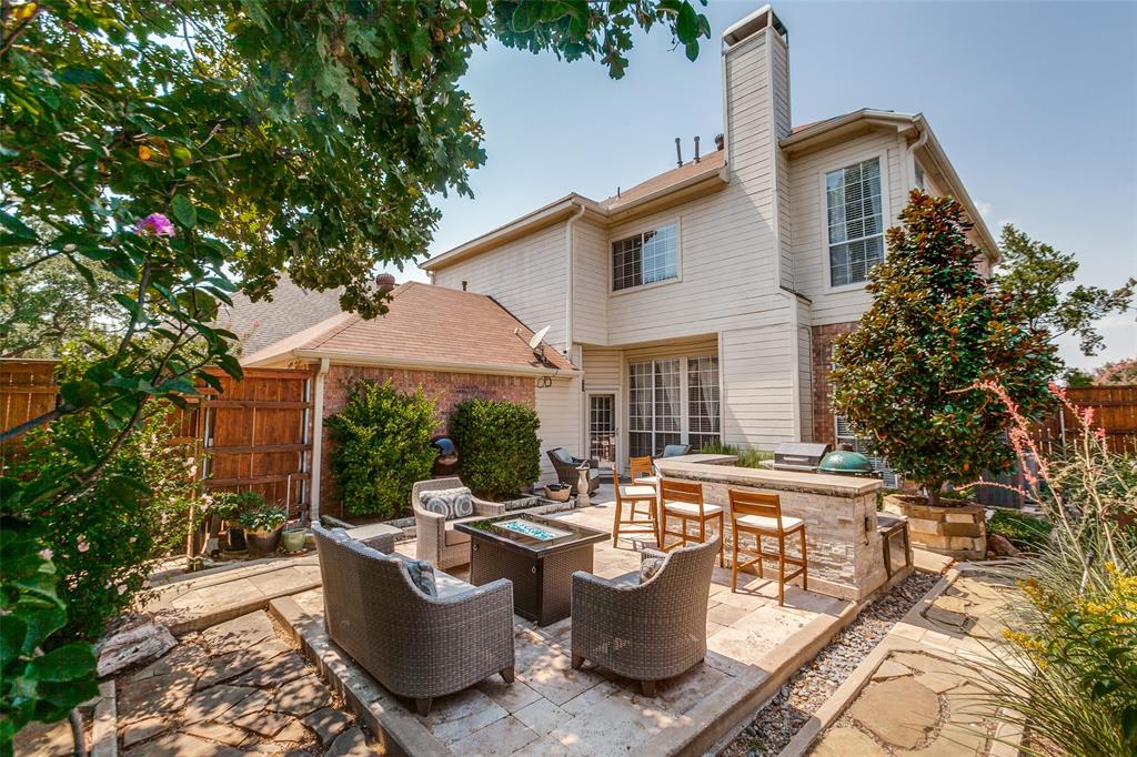 Situated in a vibrant community, this Richardson home provides comfort, functionality, and sophistication in equal measures. Providing easy access to tree-covered parks, walking and biking trails, local dining, and shopping. Upon entering, the grand foyer immediately impresses with soaring ceilings and abundant natural light. The open layout effortlessly connects formal and informal spaces. The kitchen is truly the heart of the home, equipped with gleaming granite, stainless steel appliances, a large center island, and a custom backsplash. Perfect for casual meals, giving way to a bright living room accented by a wood-burning fireplace and expansive windows. A formal dining room provides an elegant setting for family gatherings, while a thoughtfully designed wine nook and bar area create an inviting space for entertaining friends and family. Upstairs, the primary suite serves as a retreat with cathedral ceilings. The en-suite bath features dual vanities, a soaking tub, a separate shower, and an impressive walk-in closet. Additionally, the generously sized bedrooms feature abundant natural light, ensuring comfort, privacy, and versatility. Ideal for family, guests, or a home office. Step outside to your backyard oasis, highlighted by a beautifully designed outdoor living space. A spacious stone patio offers distinct lounge and dining areas, complemented by mature landscaping and a privacy fence, creating a welcoming atmosphere.