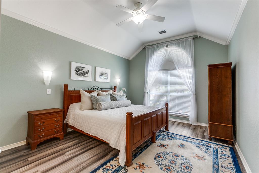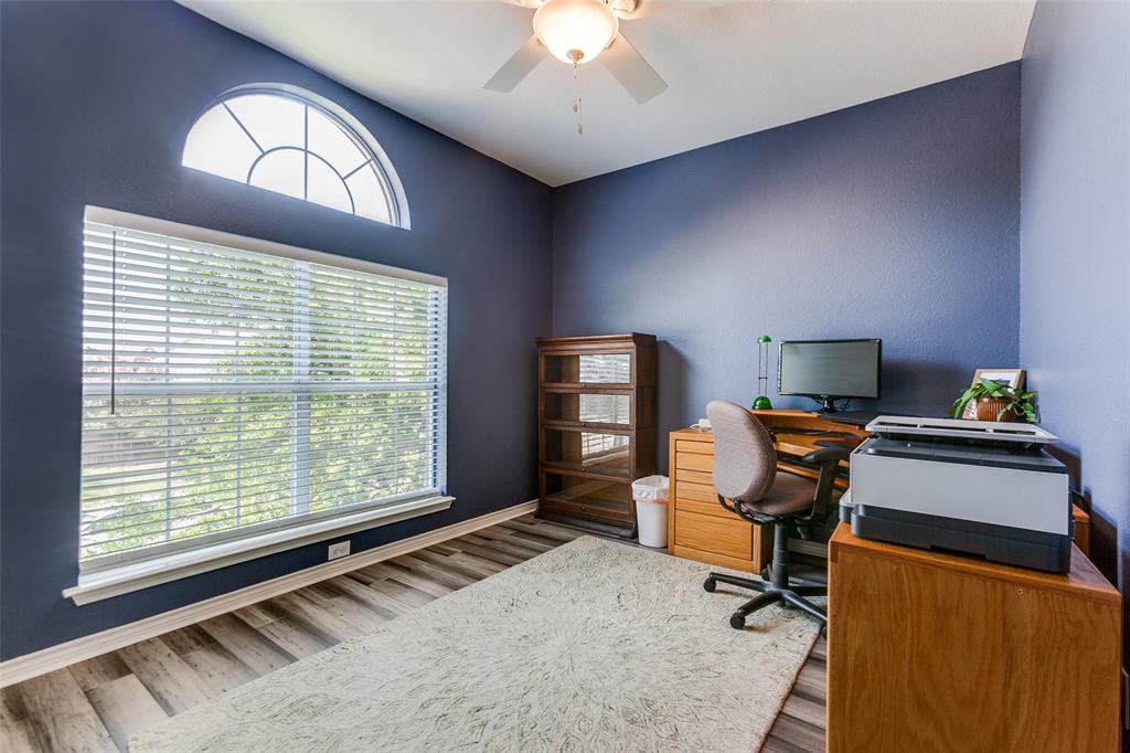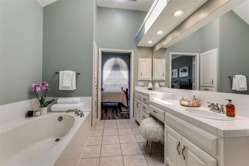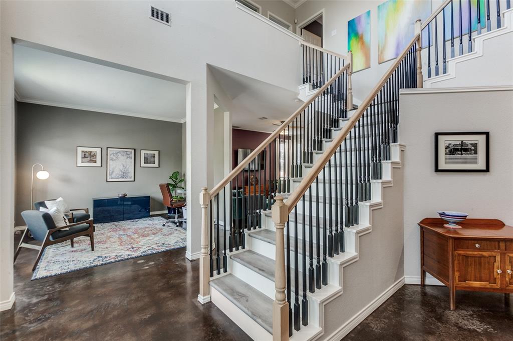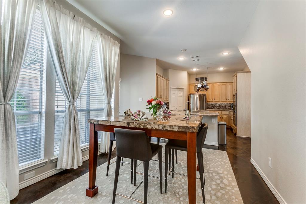 Situated in a vibrant community, this Richardson home provides comfort, functionality, and sophistication in equal measures. Providing easy access to tree-covered parks, walking and biking trails, local dining, and shopping. Upon entering, the grand foyer immediately impresses with soaring ceilings and abundant natural light. The open layout effortlessly connects formal and informal spaces. The kitchen is truly the heart of the home, equipped with gleaming granite, stainless steel appliances, a large center island, and a custom backsplash. Perfect for casual meals, giving way to a bright living room accented by a wood-burning fireplace and expansive windows. A formal dining room provides an elegant setting for family gatherings, while a thoughtfully designed wine nook and bar area create an inviting space for entertaining friends and family. Upstairs, the primary suite serves as a retreat with cathedral ceilings. The en-suite bath features dual vanities, a soaking tub, a separate shower, and an impressive walk-in closet. Additionally, the generously sized bedrooms feature abundant natural light, ensuring comfort, privacy, and versatility. Ideal for family, guests, or a home office. Step outside to your backyard oasis, highlighted by a beautifully designed outdoor living space. A spacious stone patio offers distinct lounge and dining areas, complemented by mature landscaping and a privacy fence, creating a welcoming atmosphere.