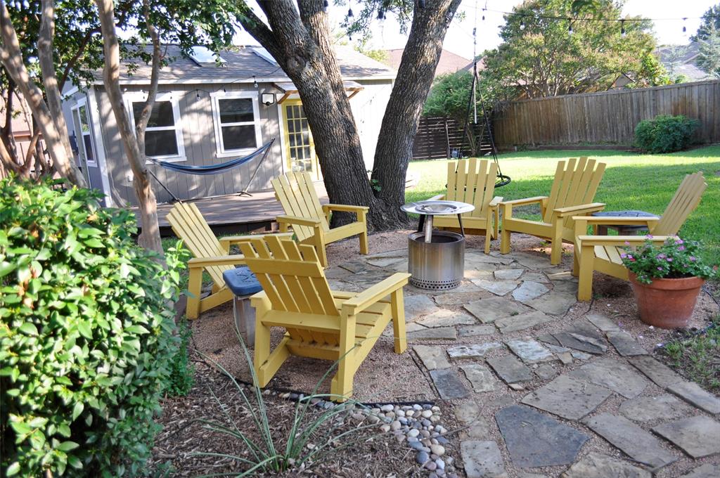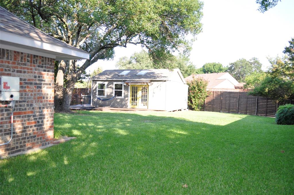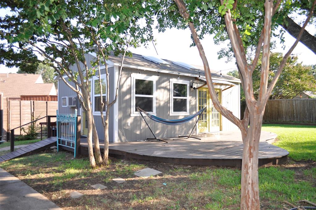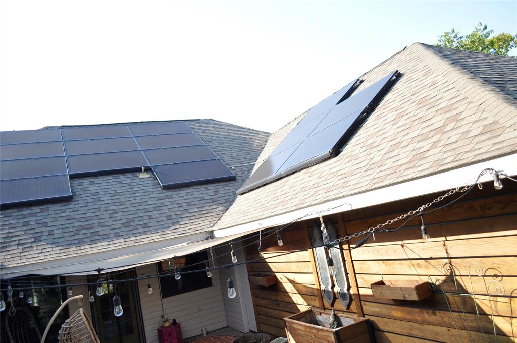 This home has too much to mention here. First, this lovely home sits right across from the Chisholm Trail creek hiking biking paths with a short stroll to one of the playgrounds nearby. Over $30,000 Solar System will be paid off by Seller so think of your monthly savings! What will you do with all that extra money saved every month? With nearly a third acre you have so many options for entertainment or just relaxing in an oversized backyard. This 4 bedroom home or 3 plus an office was remodeled to open up the front of the home to a grand open area for entertaining guest. Vaulted Ceilings in the first living area with a wood burning fireplace plus beautiful wood floors give it a warm relaxing atmosphere unless you want to pull back the curtains for a light & bright display. Don't miss the cozy side nook just outside the formal dining room as it faces Chisholm Trail where sitting with your morning coffee and watching the sun rise as it glistens across the water might become a morning habit. Unless of course you prefer to relax in your private oasis out back under the shade tree sitting around the flagstone patio beneath the soft lighting? Perhaps during Winter you could gather around a fire pit with friends. Dual sinks in the master bath, a new shower installed this year, along with a walk-in closet. Cute Jack & Jill bedrooms with separating portions is so nice. Lovely kitchen overlooks the patio, back yard, and awesome Art Studio, craft room, man cave, work shop, home office, playhouse, oh my so many possibilities! This cute building is air conditioned, has skylights, a wrap around deck, while still leaving you with an oversized back yard. Now, as parking goes, there is an ally entrance with a rolling gate, a driveway long enough for an RV & a Boat, plus an oversized 2 car garage with additional work shop area. Beautiful neighborhood, fantastic home, reduced electricity for years to come, especially as electric prices climb. You must see this one fast!