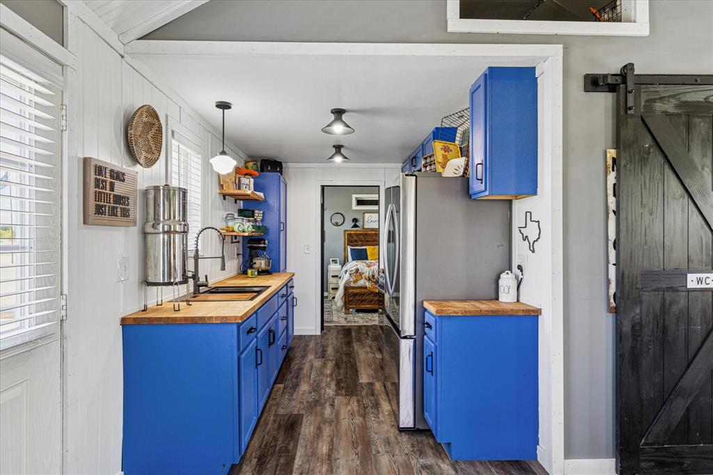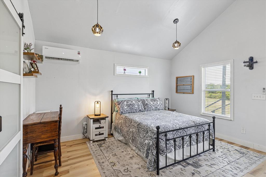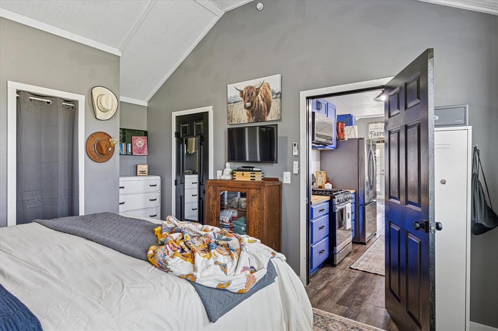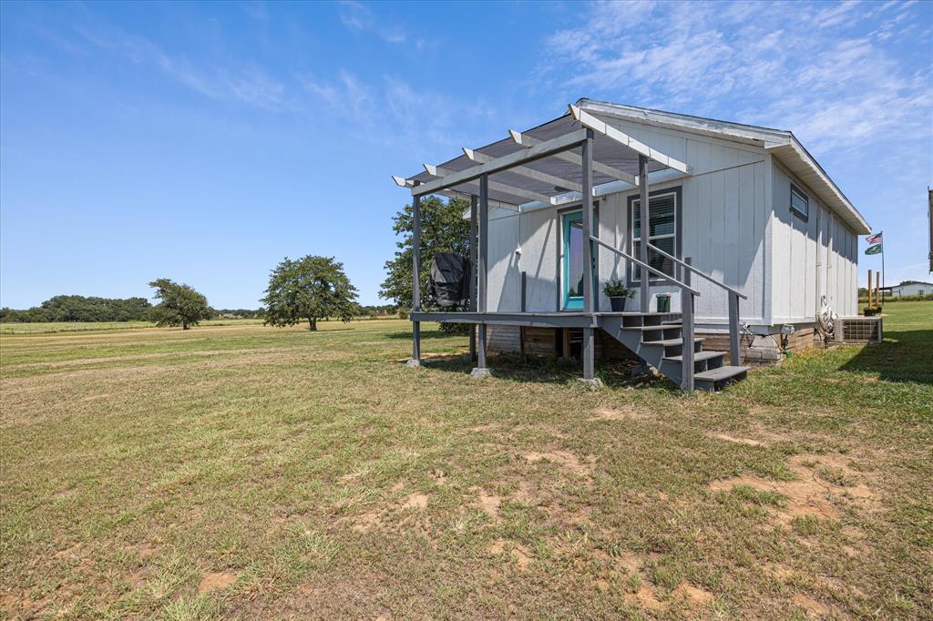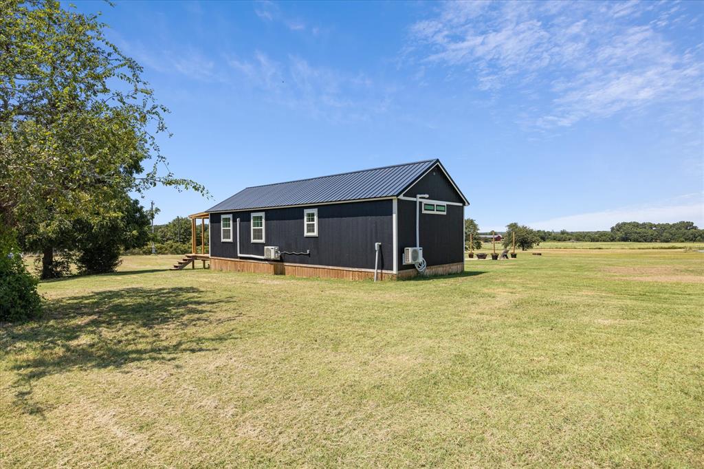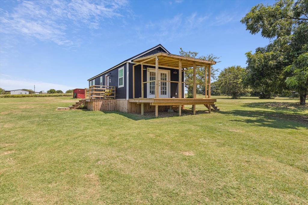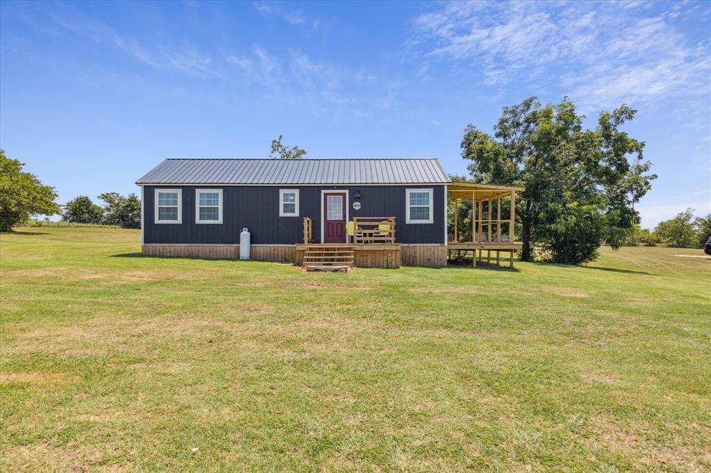 Experience the charm of country living with two delightful Tiny Homes nestled on 5 fully fenced acres in the beautiful North Texas Hill Country—perfect for crafting your own small farm paradise. These newer, cozy homes offer the ideal setup for multi-generational living, each featuring 1 bedroom, 1 full bathroom, a kitchen with a gas range, a comfortable living area, and a private outdoor deck. Each home is equipped with two mini-split HVAC systems for efficient heating and cooling. They share a water well and septic system for convenience. The homes offer 720 and 640 square feet of living space, respectively. Outside, you'll find everything you need to embrace rural living, including a greenhouse, raised bed planters, a chicken coop, and a storage shed. Enjoy the benefits of no city taxes and no HOA fees—just peaceful, simple living with endless possibilities.
