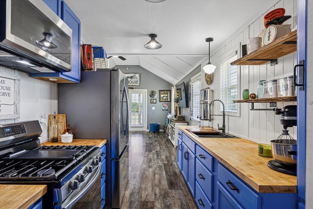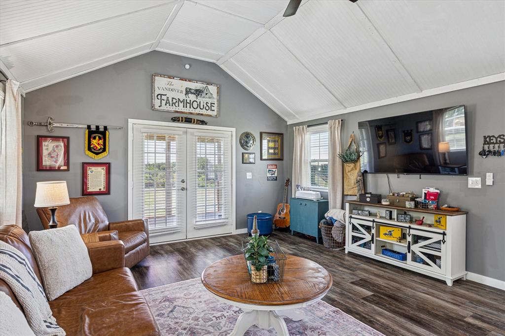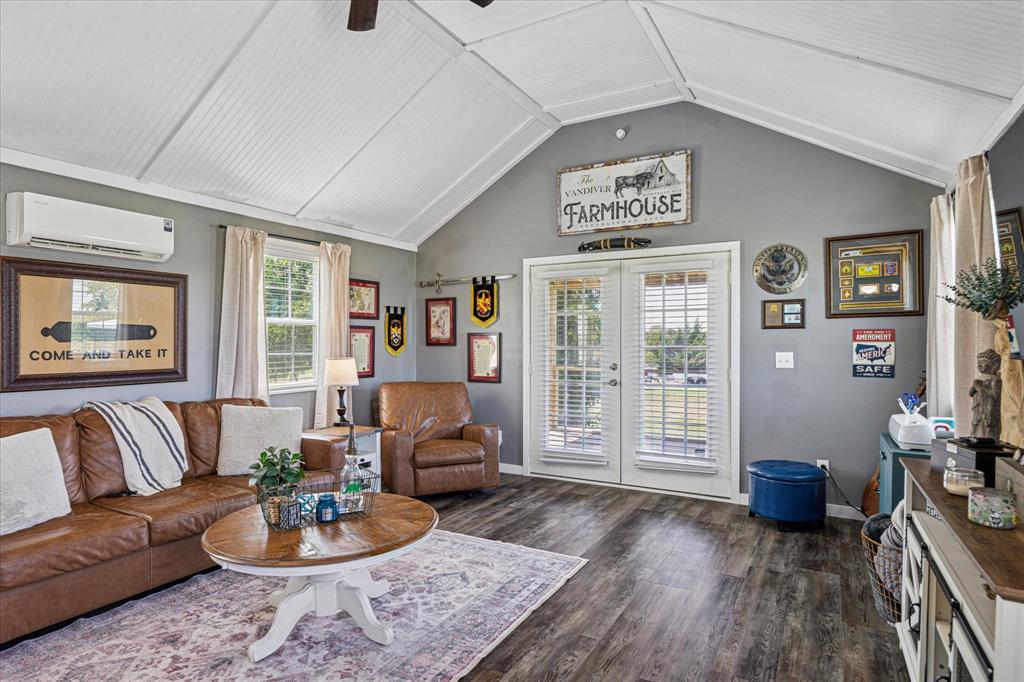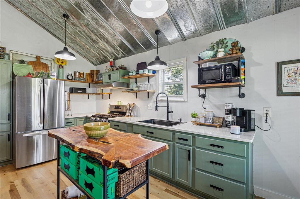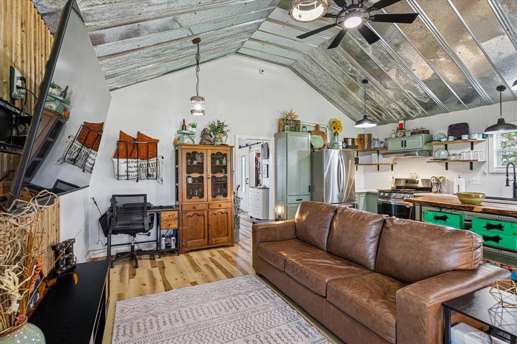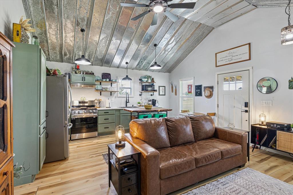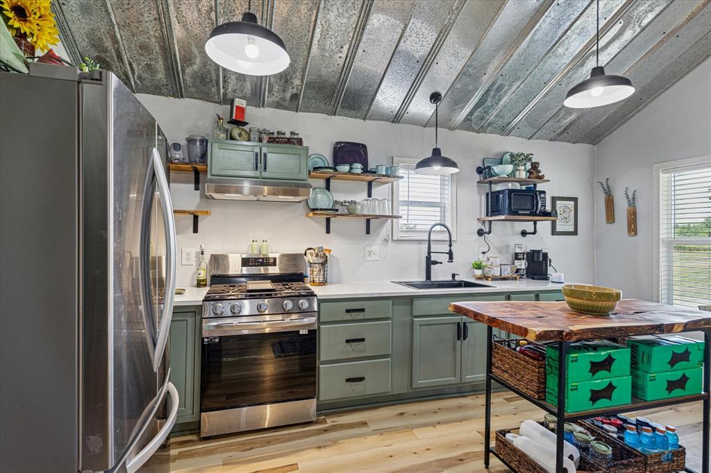 Experience the charm of country living with two delightful Tiny Homes nestled on 5 fully fenced acres in the beautiful North Texas Hill Country—perfect for crafting your own small farm paradise. These newer, cozy homes offer the ideal setup for multi-generational living, each featuring 1 bedroom, 1 full bathroom, a kitchen with a gas range, a comfortable living area, and a private outdoor deck. Each home is equipped with two mini-split HVAC systems for efficient heating and cooling. They share a water well and septic system for convenience. The homes offer 720 and 640 square feet of living space, respectively. Outside, you'll find everything you need to embrace rural living, including a greenhouse, raised bed planters, a chicken coop, and a storage shed. Enjoy the benefits of no city taxes and no HOA fees—just peaceful, simple living with endless possibilities.