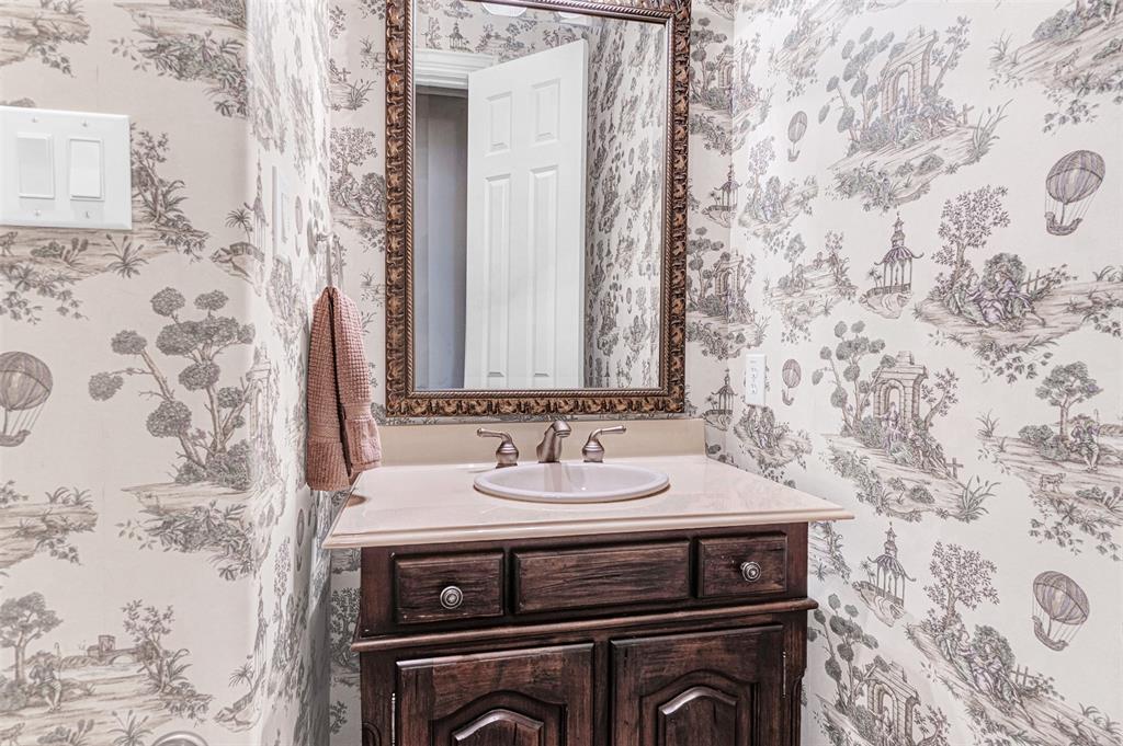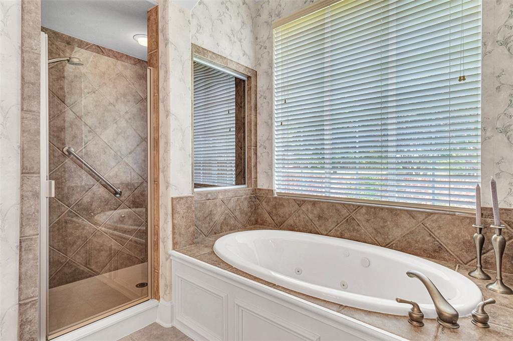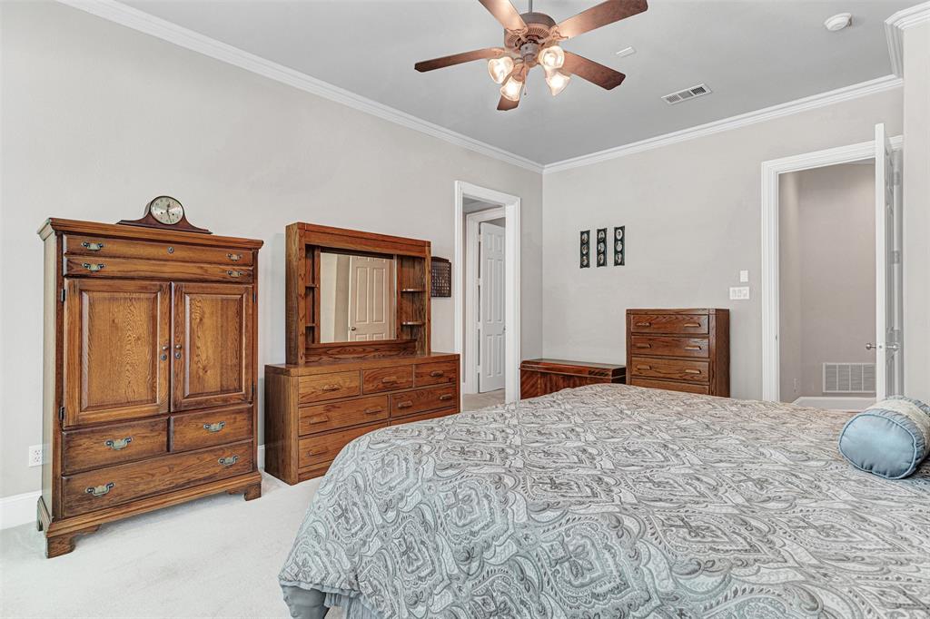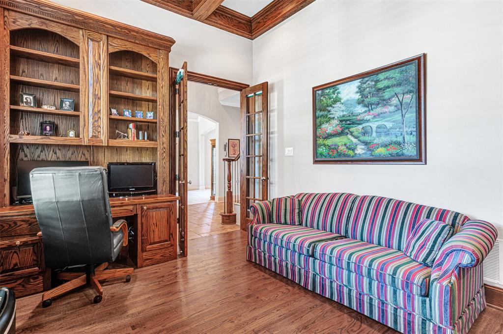 The heart of the home is the chef-inspired kitchen, featuring granite countertops, a butler’s pantry, walk-in pantry, and a spacious breakfast bar—perfect for entertaining and daily living. The primary suite is tucked away on the main level and includes a jetted tub, dual vanities, a separate shower, and generous walk-in closets. A private guest suite with a full ensuite bath is also conveniently located on the first floor and is currently being used as a handsome home office with custom built-ins.
