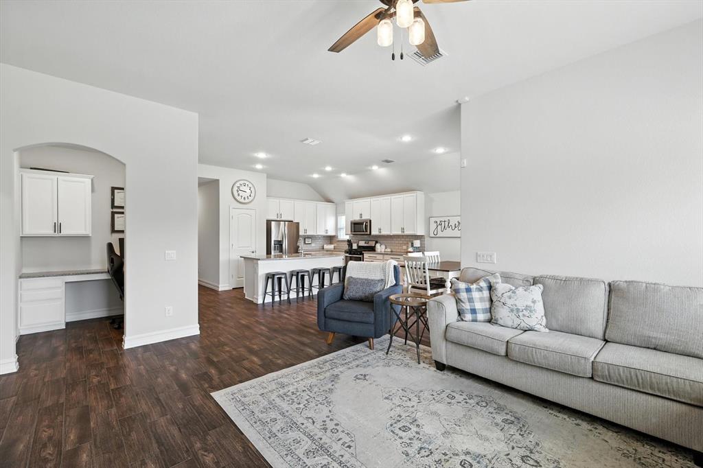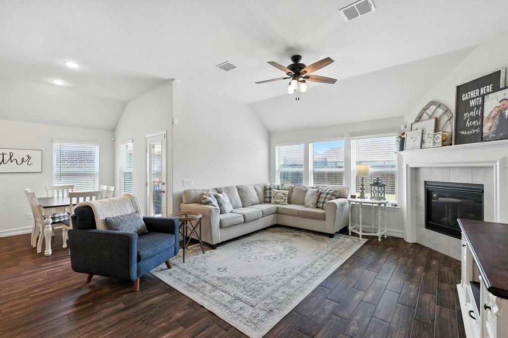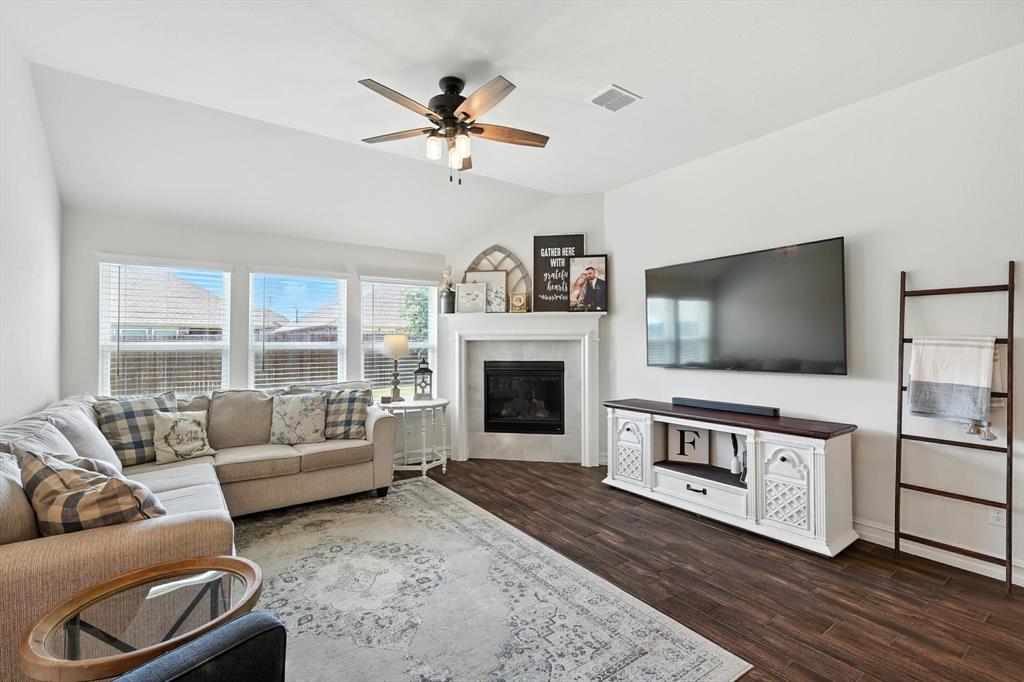 Welcome to this beautifully maintained 3-bedroom, 2-bath residence located in the highly desirable Willow Ridge Estates of Haslet, and zoned to the top-rated Northwest ISD. Designed with both comfort and style in mind, this home features an open-concept layout enhanced by porcelain wood tile flooring and a spacious living area with a cozy fireplace.