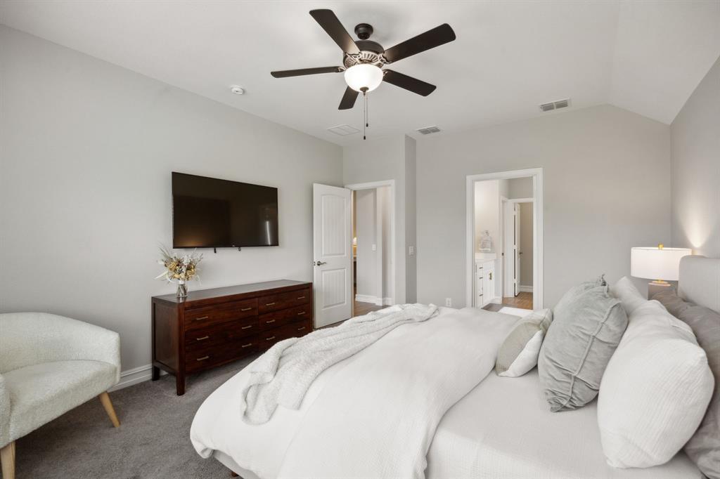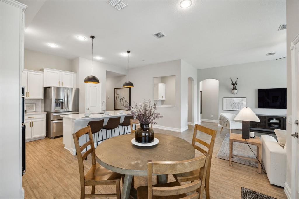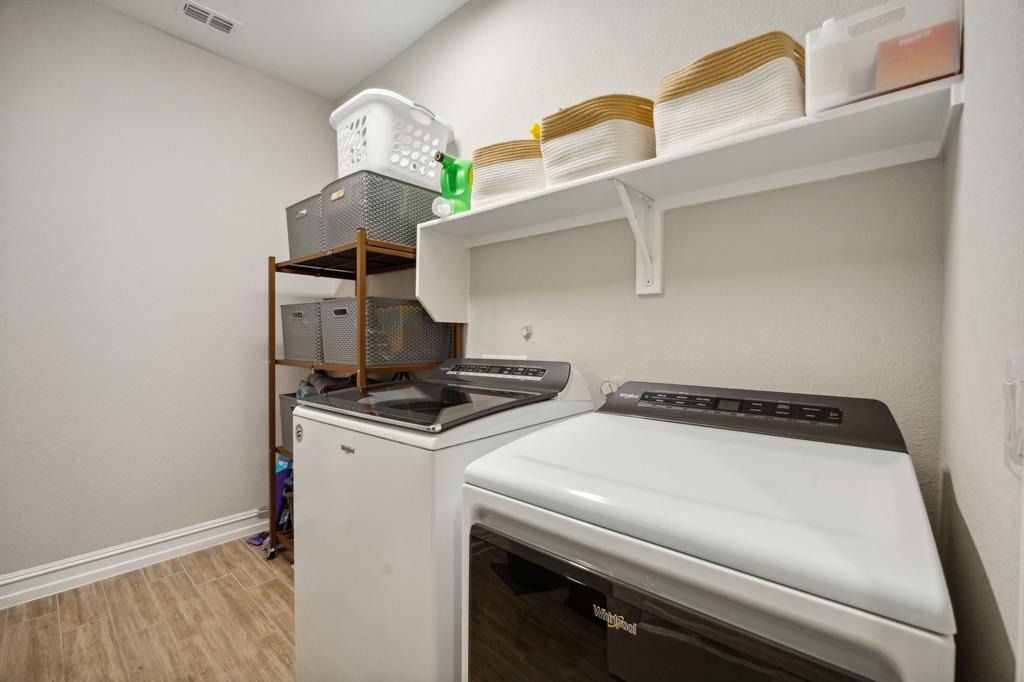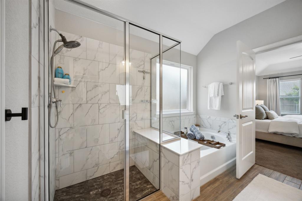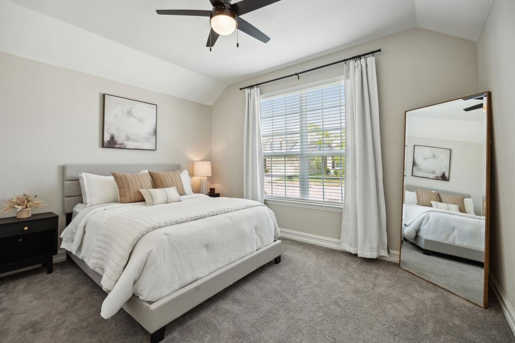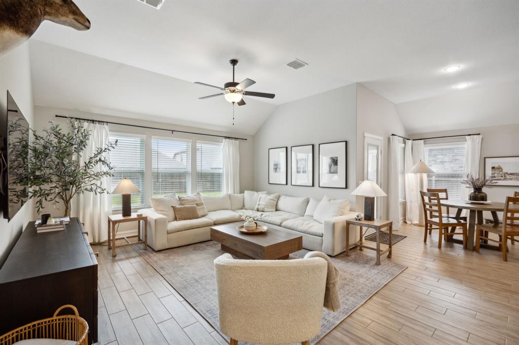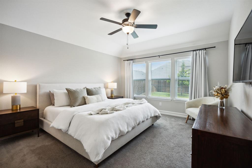 Like-new 4 bed, 2 bath, 2021 build loaded with incredible finishes throughout, zoned into coveted Northwest ISD! As you enter, you're greeted by light oak wood-look tile flooring. It adds a touch of modern character to the space without sacrificing durability. The open layout of the kitchen and living area offers a perfect space for hosting friends and family. The space is flooded with natural light to give it an open and welcoming feel. The bright white kitchen is outfitted with sleek quartz countertops, stylish tile backsplash, a stainless steel double oven, a spacious island with breakfast bar, and drop lighting. A built-in quartz desk in a nook off the kitchen offers a great space to work from home, and built-in cabinetry gives you extra storage space. The private primary suite comes complete with dual quartz vanities, updated mirrors and fixtures, a walk-in tile shower, a garden tub, and a walk-in closet that connects to the utility room, making laundry a breeze! The second bath also features a dual quartz vanity, plus other modern finishes, and a mudroom creates a perfect transition space upon entering and leaving. The tasteful gold fixtures throughout add elegance and charm to the entire home. This is one of the few homes with a 4th bedroom option at this price and size, and it could also double nicely as another dedicated office option for those who work from home. Out back, the covered patio looks out to the oversized backyard with a sprinkler system and gutters to ensure your yard stays looking great all year long. If you're new to the area, make sure to check out all the amazing retail and dining coming in close by, giving you everything you need within minutes!