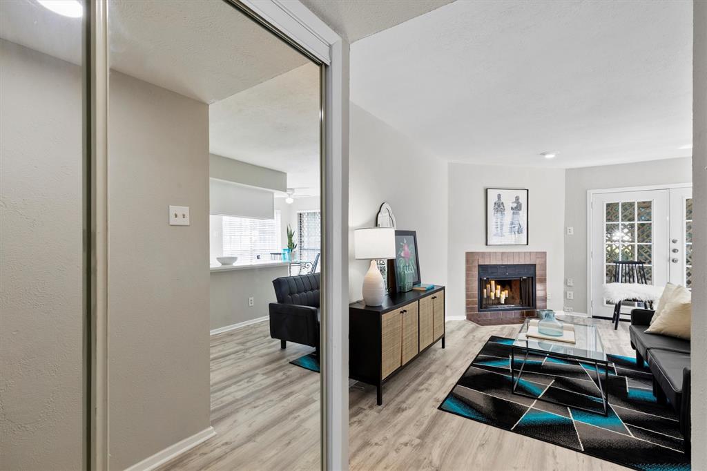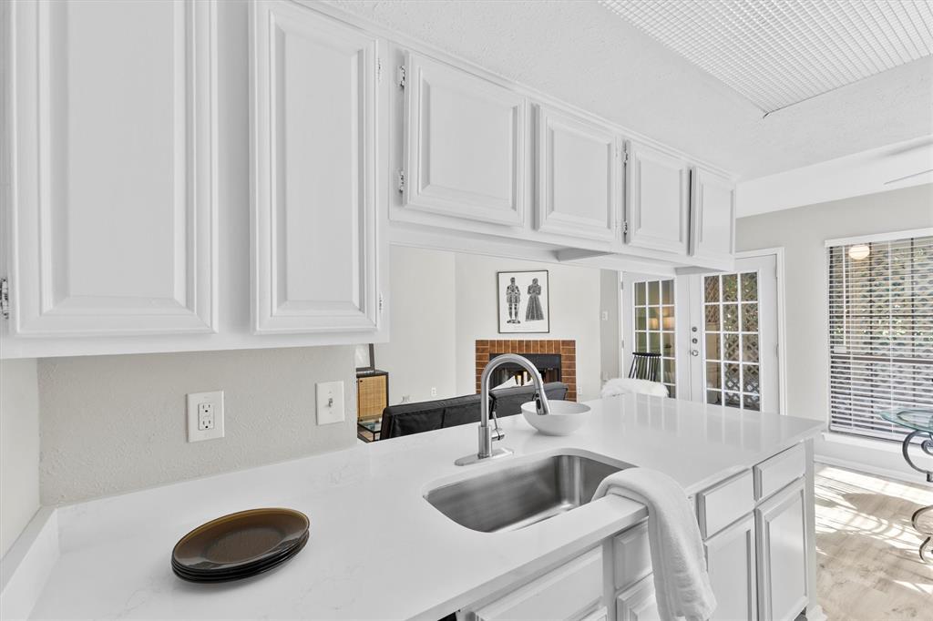 Urban Oasis Just Minutes from Downtown – Luxuriously Updated 1 Bed, 1 Bath Condo--Premium lower level corner unit with screened in porch. Welcome to your own private retreat in the city! This beautifully updated 1-bedroom, 1-bath condo blends luxury, comfort, and convenience in a serene, tree-lined community just 5.3 miles from downtown Dallas. Step inside and be greeted by an open-concept layout that feels both spacious and inviting. The updated kitchen features a new dishwasher, solid surface countertops, and white cabinetry — perfect for everyday living or entertaining guests. The new Luxury Vinyl plank flooring throughout creates a neutral uniform canvass that makes adding your unique curations both fun and ideal. Unwind in front of the cozy wood-burning fireplace during cool winter nights, or step outside to your tranquil screened in patio surrounded by trees. — In the summer, cool off in the sparkling community pool located just steps from your front door. Located just 3 miles from the vibrant Bishop Arts District, you’re minutes from unique shops, diverse dining, and exciting nightlife. Love the outdoors? Stevens Park Golf Course is a short stroll away, and the popular Coombs Creek Trail — perfect for biking, jogging, or leisurely walks — is just over a mile from your door. A brand-new Sprouts Market is also under construction nearby, adding even more convenience. Enjoy true peace of mind with a well-established HOA that covers exterior maintenance, structural insurance, lush landscaping, water, sewer, trash, and pool upkeep. All that’s left for you to do is relax and enjoy. The nearby parks and trails are perfect for your four legged friends. Whether you’re looking for a full-time residence or a low-maintenance getaway close to the heart of the city, this condo offers it all. Come experience the perfect blend of luxury, nature, and urban convenience — schedule your private tour today! (may be eligible for special CRA financing through multiple lenders)