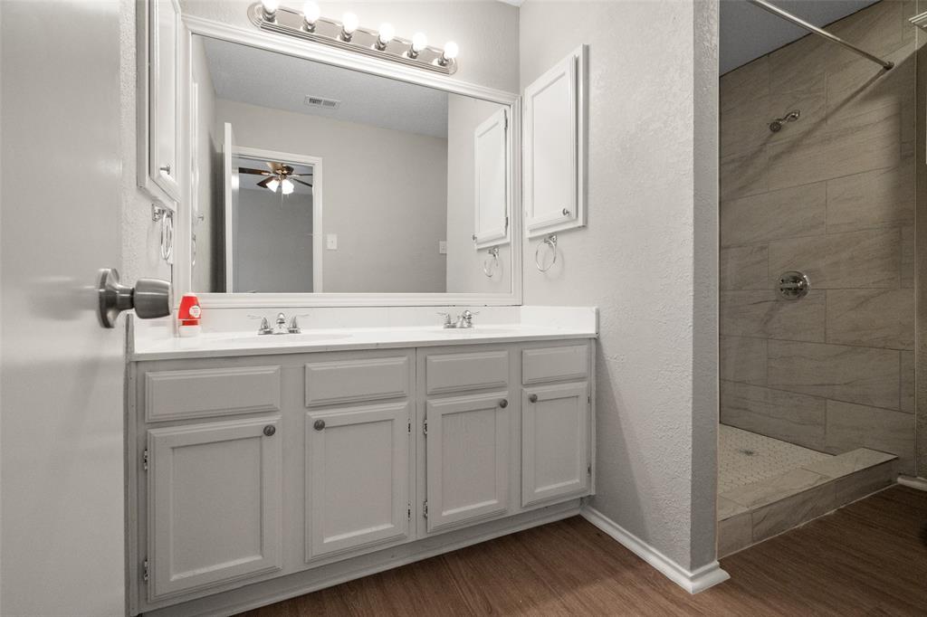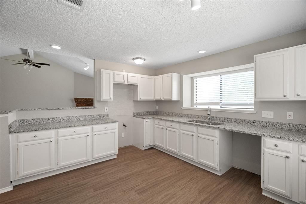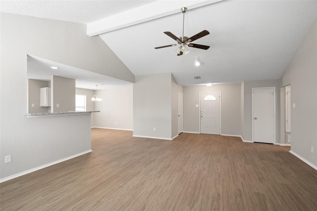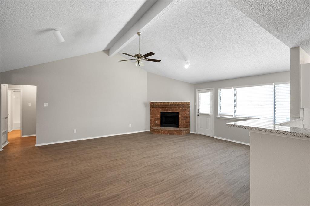 Welcome to this updated home conveniently located in the heart of Mesquite, just a short distance to Town East Mall and all the restaurants and shops once could ask for! The spacious living room features a vaulted ceiling, a corner fireplace, and ample room for the entire household while overlooking the dining room and kitchen. You can do a lot in this kitchen with the extended cabinetry, tons of counter space, and breakfast bar. Soon-to-be-installed stainless steel appliances will ensure any chef can cook and feed for every gathering. The wood-look LVP flooring that is everywhere but the bedrooms is meant to withstand the heavy foot traffic of a busy household. The primary bathroom is graced with an updated, walk-in shower and double vanities. And in the open back yard, enjoy some shade under the tree or hide from a coming tornado in the functional in-ground storm shelter. The home has a new roof, updated plumbing, fixtures, and electrical. Come see and picture yourself at home.