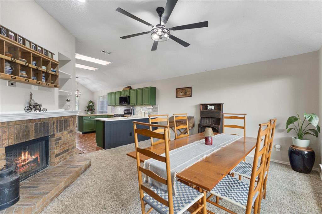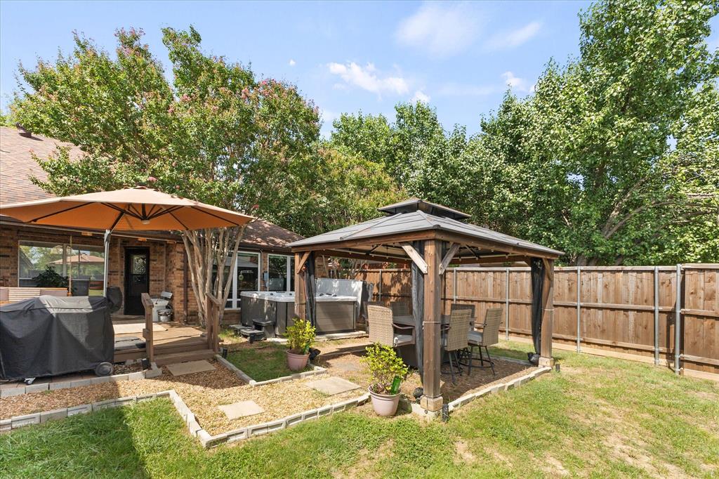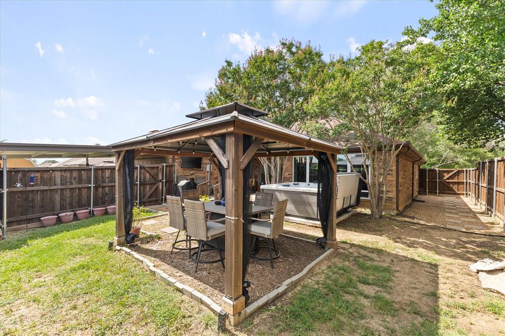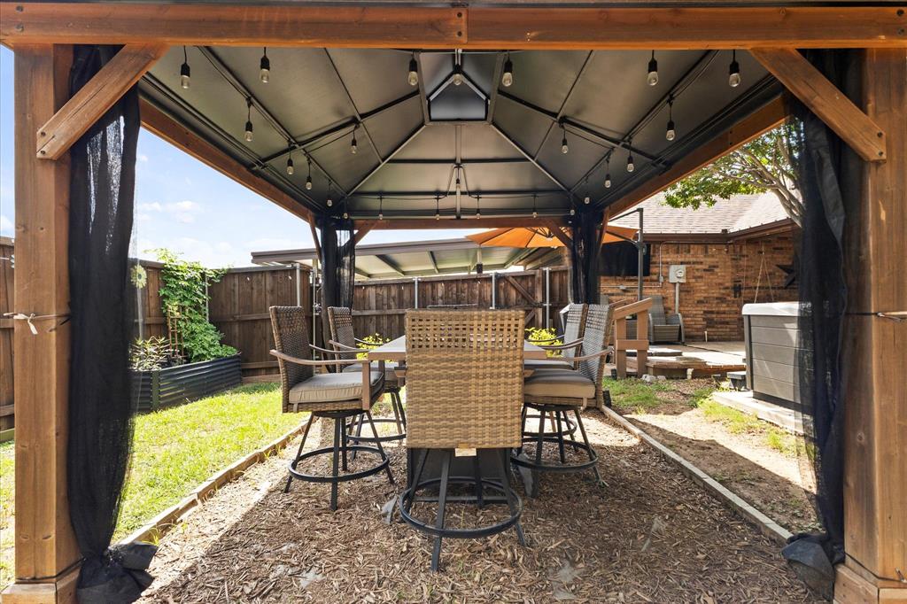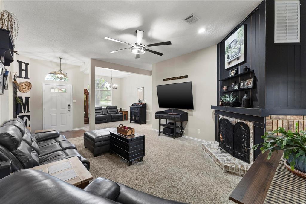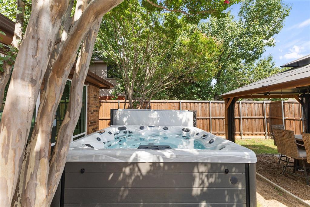 Charming Farmhouse-Style Retreat with Modern Updates & Outdoor Oasis! Welcome to this beautifully updated 3-bedroom, 2-bathroom home that perfectly blends modern comfort with touches of farmhouse charm. Step inside and you’re greeted by warm, neutral tones, and abundant natural light throughout. The heart of the home features an eye-catching two-sided fireplace, creating a cozy focal point that connects both living areas and adds character to the home. With two spacious living areas and two dining areas, there’s ample space to spread out, host family gatherings, or simply enjoy quiet evenings at home. The kitchen flows seamlessly between the living and dining spaces and offers generous countertop space, updated cabinetry, and a welcoming layout ready for your next home-cooked meal or morning coffee. Nearby, the formal dining area could easily double as a flex space—think home office, playroom, etc... All three bedrooms offer comfort and style, with the primary suite standing out as a sweet retreat. It features a beautifully updated ensuite bathroom and a walk-in shower. The secondary bedrooms share an equally updated full bathroom, making this home as functional as it is beautiful. Step outside and you’ll find a private backyard haven designed for relaxation. A covered back porch with a swing and mounted tv invites you to unwind in the shade, while the pergola is perfect for dinners with friends and included hot tub create the perfect space. Whether you're hosting guests or enjoying a quiet night under the stars, this backyard truly has it all.