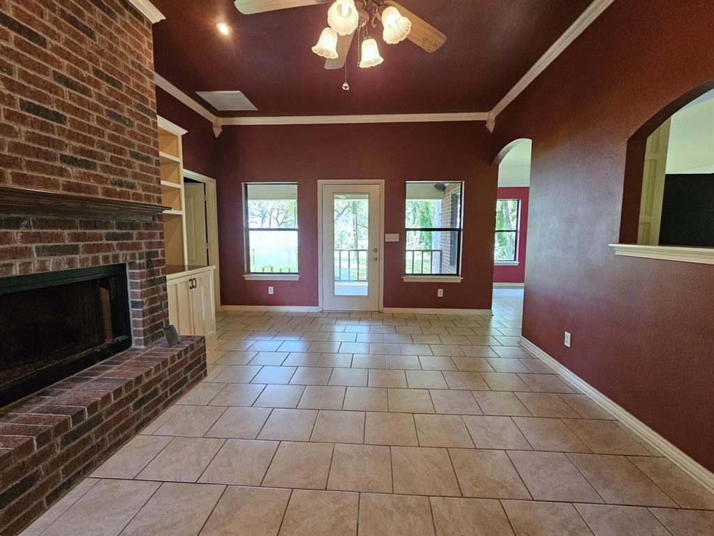 Quaint waterfront custom built home with split bedroom plan, large kitchen with attached dining room area; DR is open to the living room which has a WBFP, built-in cabinetry and lake views. Master BR has built-ins, a view of the lake, and en-suite bathroom. Nice lake view from the expansive rear porch. Cape Tranquility has a waterfront community park with pavillion, which may be leased by residents for gatherings, a boat ramp, two docks. Roads repaved 2 or 3 years ago. Two large utility closets off of the two-car carport, with additional parking beside the driveway. Irrigation via lake pump. Upper Neches leased land that goes with the home is approximately 80' x 230' or just under a half-acre, as shown on Survey; the lease for Upper Neches land plus irrigation pump is about $100 per yr.