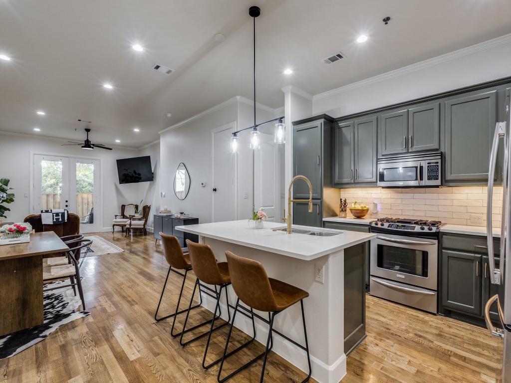 Amazing location or gorgeous updates? It's hard to say what is the best feature of 5808 McCommas #106. The location cannot be beat: Pretty and pristine building is on a quiet stretch of McCommas that is just a block from Corner Market and all the other Greenville Avenue shops and restaurants. A truly walkable lifestyle. The unit itself is breathtaking. Just-completed updates include new floors, new countertops, new paint, a complete remodel of the bathrooms, and just-installed turf in the spacious and charming side yard. The home offers 3 bedrooms and two bath or two bedrooms and an office. Kitchen is open to the spacious dining and living areas. Tons of storage in the unit as well as two commodious storage spaces in the garage. A secure building in one of Dallas' most vibrant areas, and a cheerful unit that has just had all the high end updates--the perfect new home!