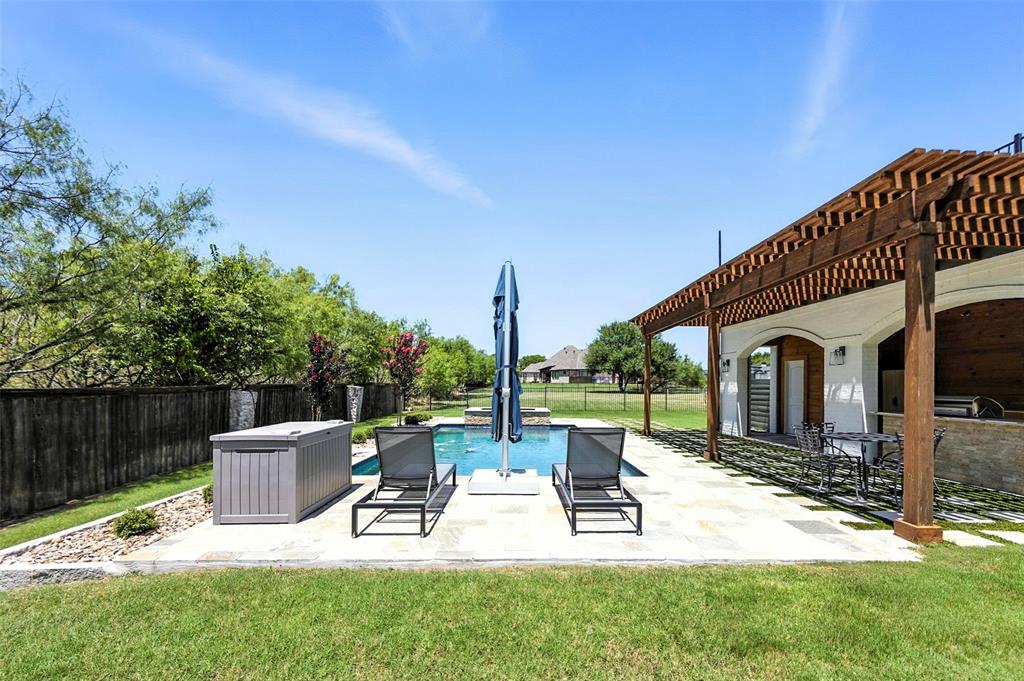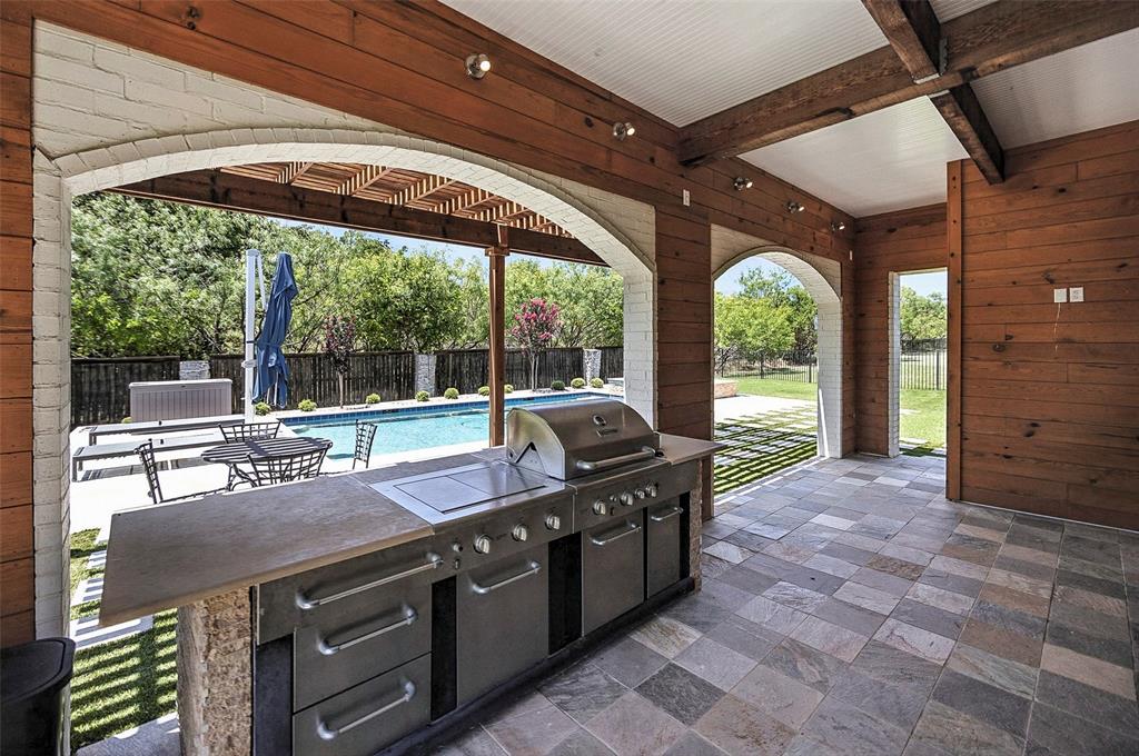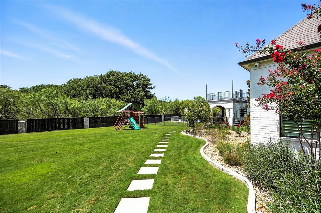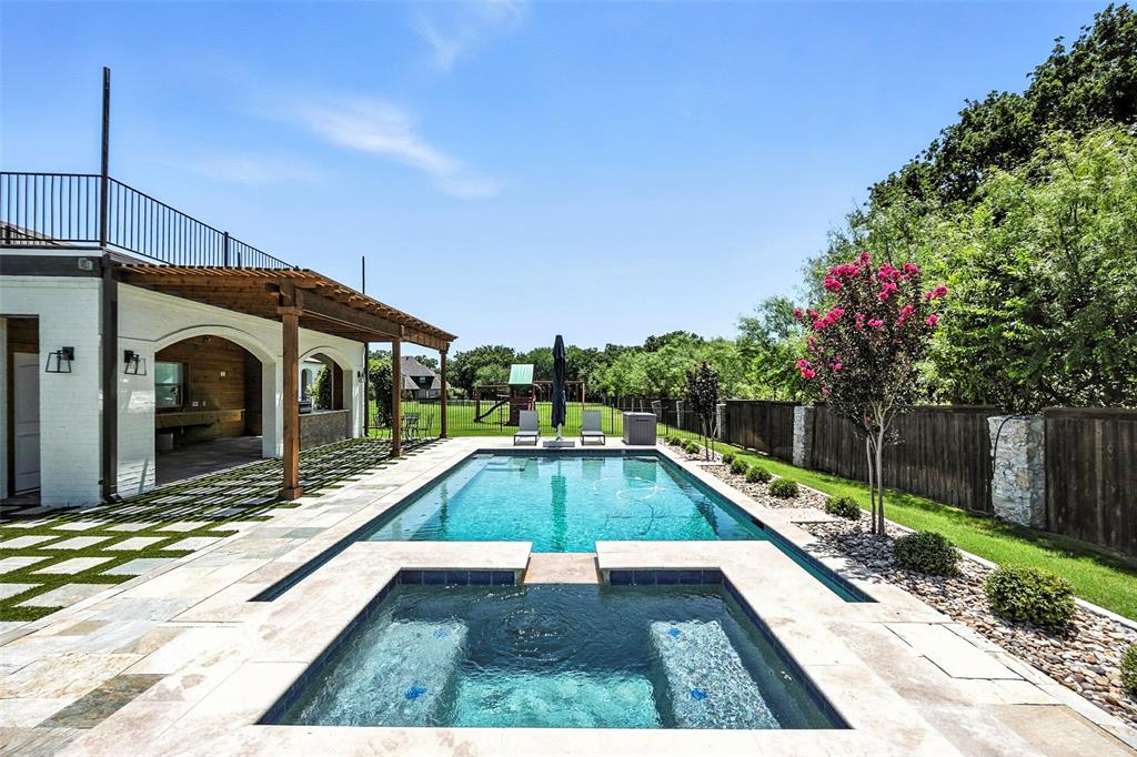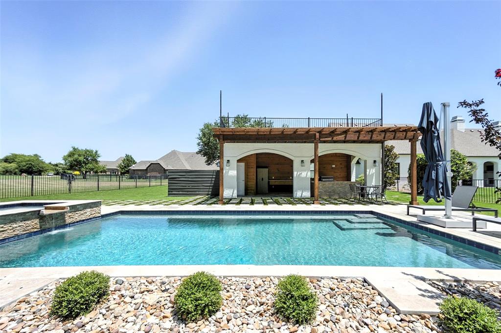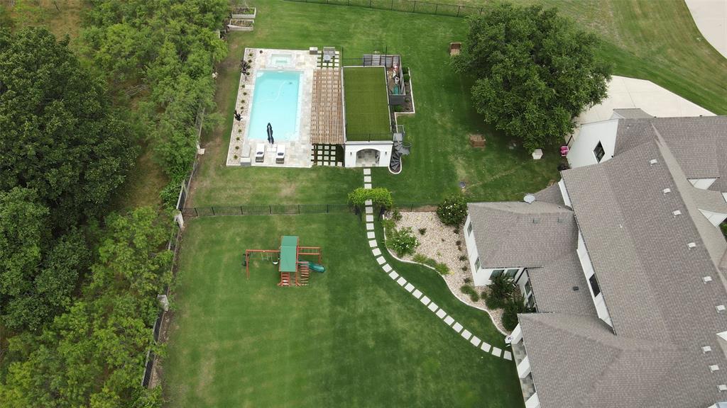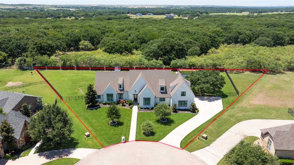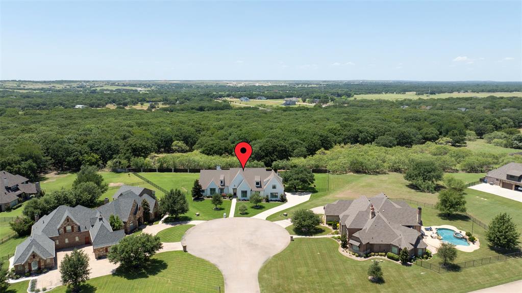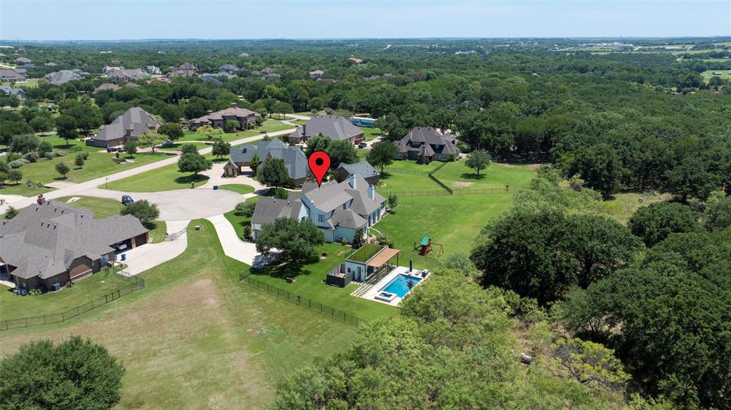 Exquisite 6-bedroom home in the prestigious guarded and gated Bella Flora community, served by the highly acclaimed Aledo ISD. Perfectly positioned in the heart of a cul-de-sac, this residence sits on a huge, privately fenced pie-shaped lot with breathtaking views and a resort-style backyard.