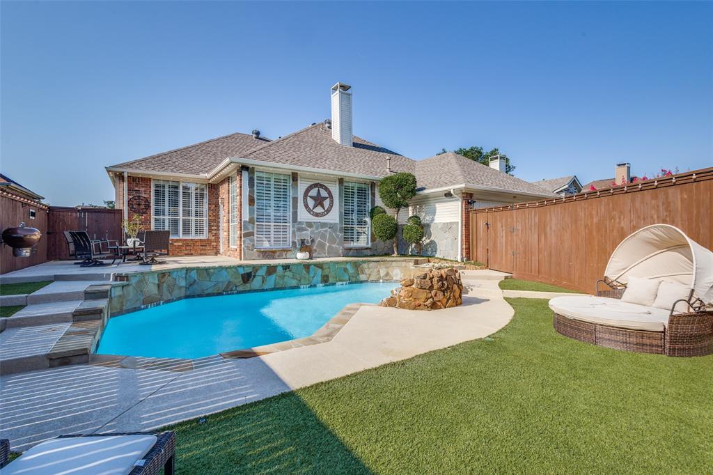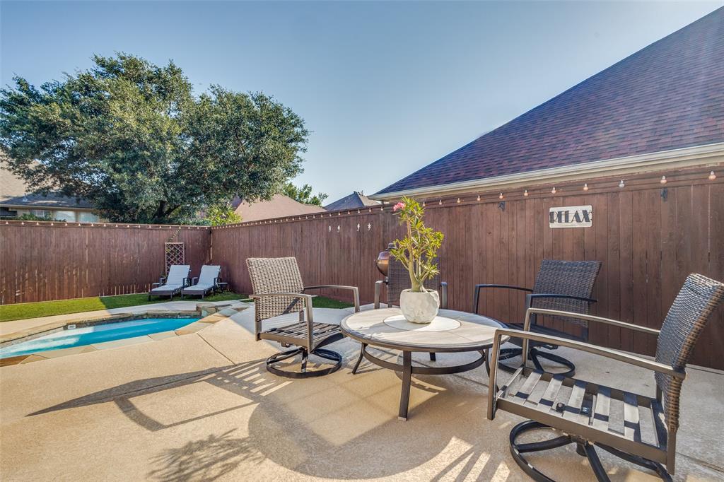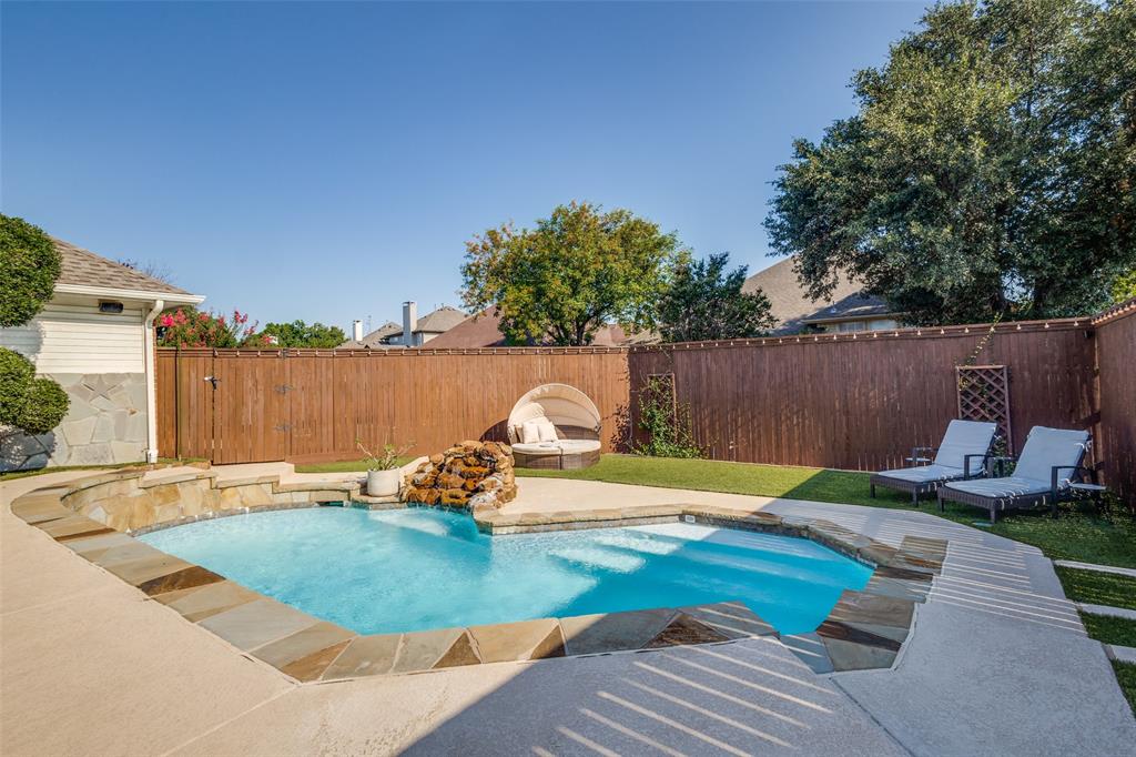 Step outside to your private backyard retreat, where a sparkling saltwater pool with Kool decking sets the stage for unforgettable gatherings. Low-maintenance turf and a stained wood privacy fence with built-in lighting add beauty and functionality. The attached BBQ grill makes weekend cookouts a breeze.
