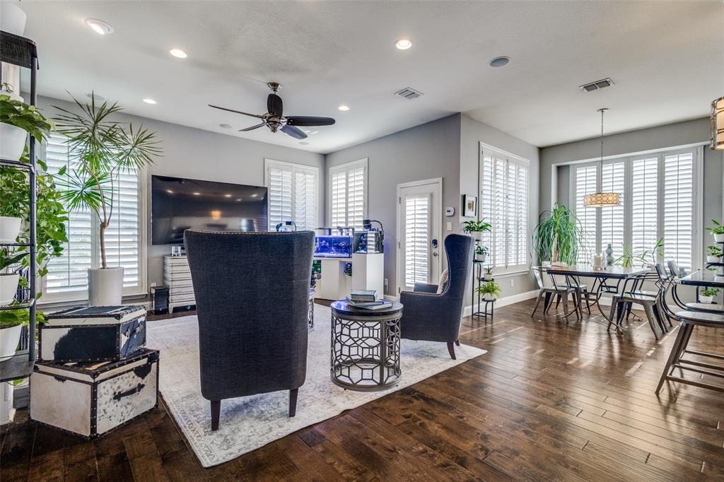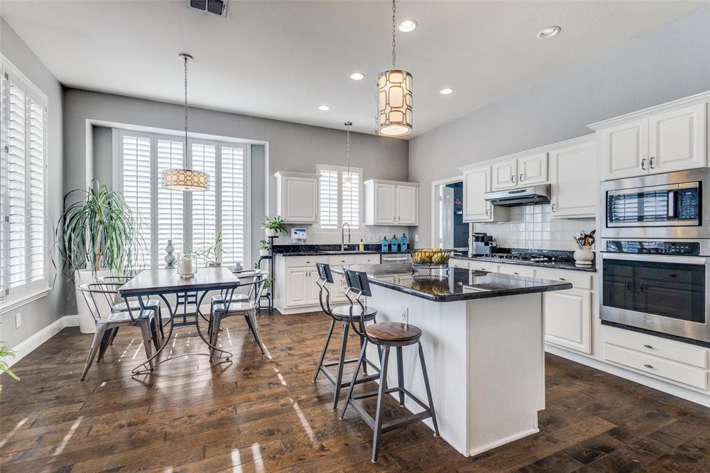This beautifully upgraded home offers style, comfort, and cutting-edge smart features. From the moment you step inside, you’ll be impressed by the rich engineered hardwood floors, a sophisticated modern paint palette, and elegant plantation shutters throughout. The open-concept layout boasts soaring ceilings and a chef-inspired kitchen equipped with a 4-burner gas cooktop, granite counters, pendant lighting, stainless steel appliances—including built-in oven, microwave, and fridge—USB outlets, a tiled backsplash, ample cabinet space, and a walk-in pantry with pocket door.