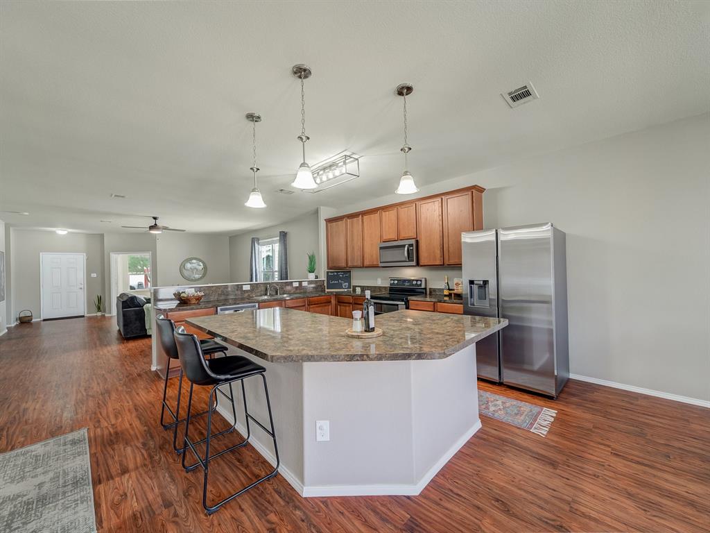 $4000.00 credit for rate buy down or closing costs offered by GW Home Loans. Step into this Aubrey ISD zoned, beautifully laid out one-story home featuring four spacious bedrooms and two full baths. This home is an ideal blend of comfort and convenience for modern living utilizing every square foot. Great natural light flows through in every room. The open concept kitchen connects itself to both a breakfast nook and the large living area, perfect for entertaining. The backyard boasts a custom deck built perfect for grilling, dining al fresco and spending time unwinding. The local elementary school is one block away, but this home is tucked away from school traffic, making it the perfect location within the neighborhood. Providence Village is home to abundant green spaces, dog parks, a community waterpark, state of the art fitness center, a skatepark, two community centers, two little league baseball fields, a gaga ball pit, an adult softball field (and league!) as well as over a dozen parks and soccer fields, and a 25 acre lake with trails throughout. The outdoor life is calling you in Providence Village. Located conveniently between Denton and McKinney along the 380 corridor, you will find yourself 20 minutes from the PGA, HEB, Universal Studios, the Star, Toyota Soccer Center, Frisco Roughriders and more. Hyper local construction includes a Sprouts, Kroger and Target in front of the neighborhood, a short 3 minute drive to get your must haves. Providence Village is also serviced by Insta-cart as well as other delivery services. Other notable construction is the new DISD High School at Naylor and 380 set to open in Fall 2027.