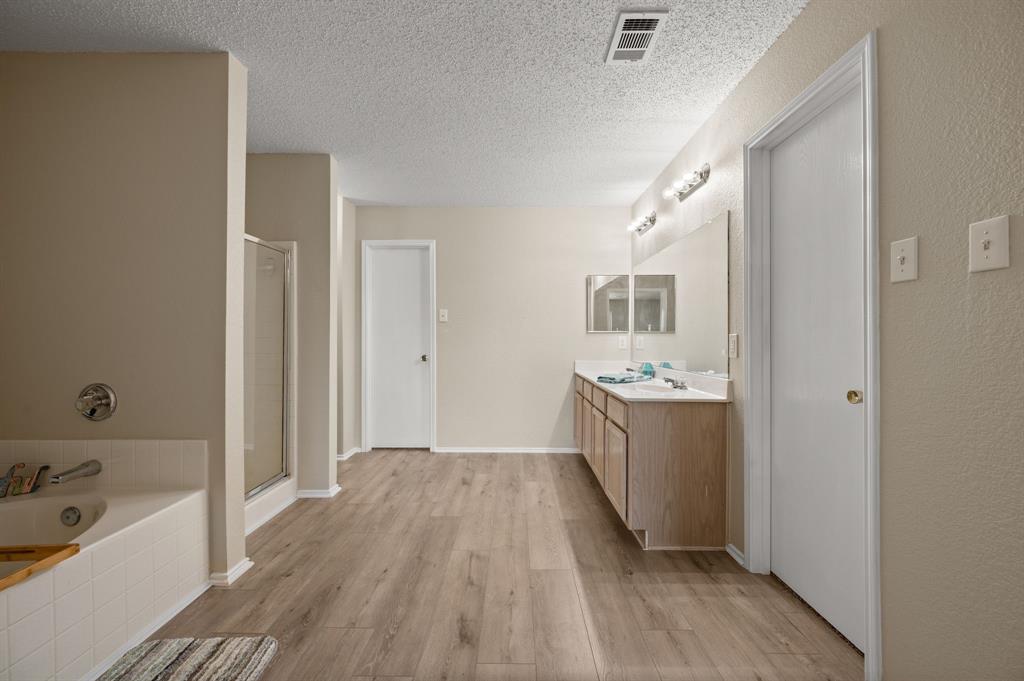 5 well-appointed bedrooms, this home offers versatility and privacy. The master suite, a luxurious retreat located upstairs, away from the other bedrooms. It boasts two walk-in closets, providing abundant storage . The en-suite bath promises relaxation, a space where you can unwind after a long day. Garden tub, separate shower, dual sinks.