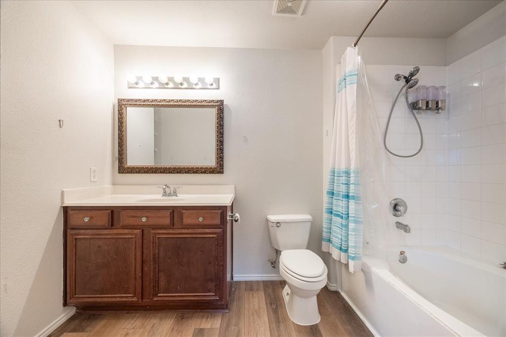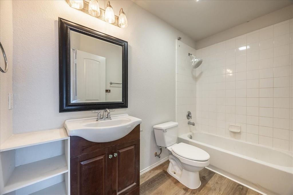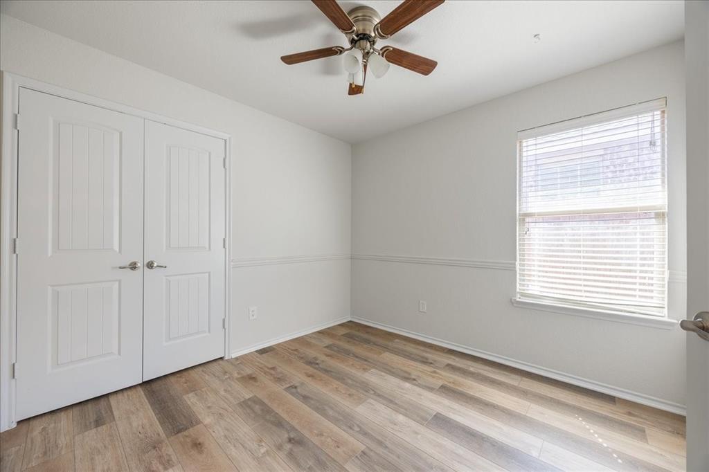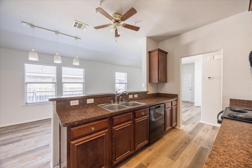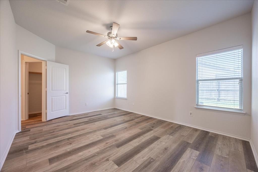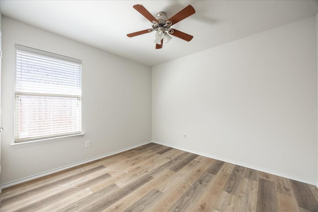 Welcome to your new home in Heartland. This would be fantastic for a first-time home buyer or as an investment property. This one-story home is nice and bright. Brand new luxury vinyl flooring and fresh paint throughout. New oven, new microwave, new dishwasher. The living room opens up to galley kitchen with a generous breakfast bar and dining area. The secondary bedrooms are located at the front of the house along with the secondary bathroom. The large primary suite is located at the back of the house. It features an en-suite bathroom and a large walk-in closet. The backyard has a covered patio with plenty of room for an outdoor table and chairs. Across the street, you'll find a pond and the bus stop to school. Heartland has so much to offer. Three community pools. A fitness center. A 35-acre stocked pond for fishing. Parks, walking trails, and so much more. See this home today!