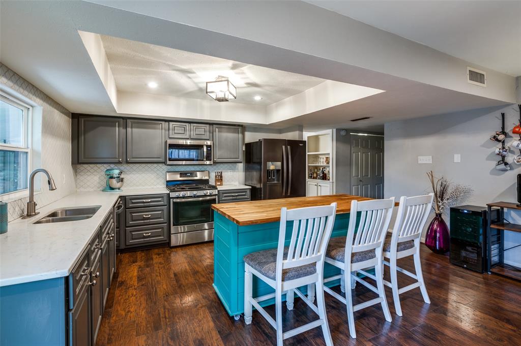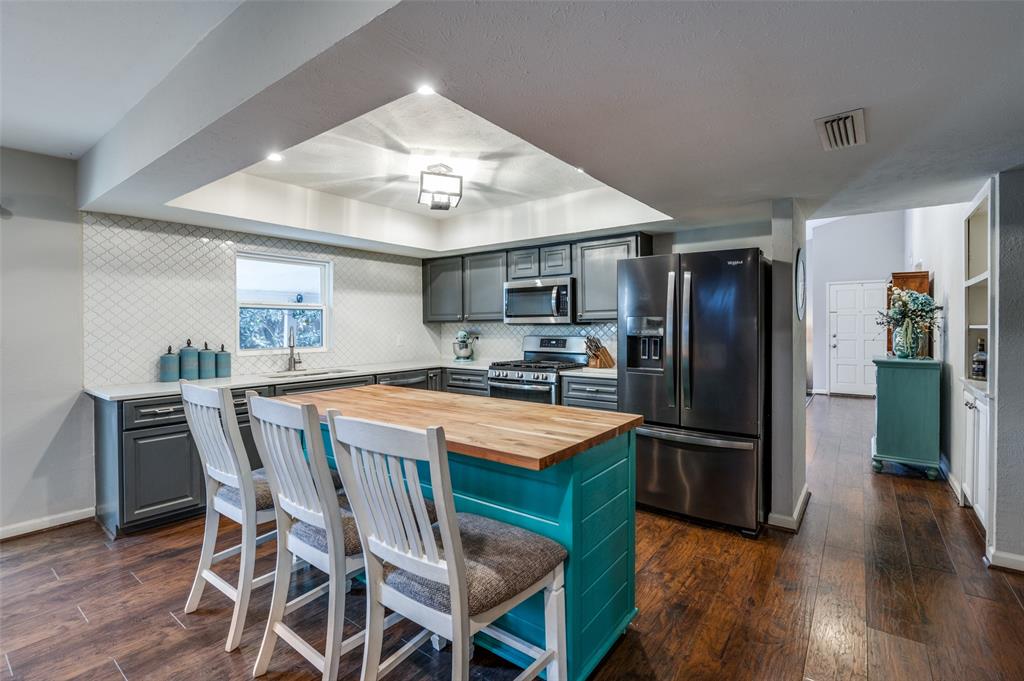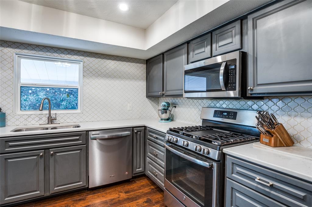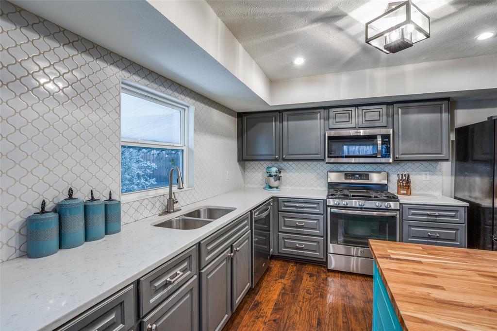 NEW Architectural Shingle Roof 2024, HVAC replaced 2020, Water Heater replaced 2023, and new 8 ft privacy fence built in 2022! This home is turn key, low stress and ready for you to call home! This charming property is set on a picturesque tree-lined street and offers a warm, inviting atmosphere. Just inside the front door is the first of 2 living spaces with back patio access, and the formal dining room features modern lighting with an elegant touch. The open floor plan boasts a spacious living area with a tiled fireplace that flows seamlessly into the kitchen, complete with sleek cabinets, quartz countertops, and stainless steel appliances. Bathrooms showcase stylish updates, including contemporary vanities, tiled showers, and upgraded flooring. Outside, the backyard is perfect for entertaining, featuring a covered patio and beautiful magnolias lining the fence. Located in central Plano, this home is just minutes from High Point Park and Big Lake Park, combining convenience and tranquility.