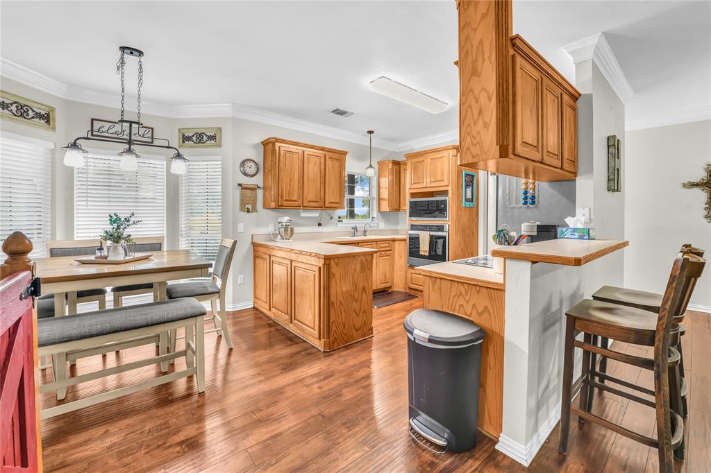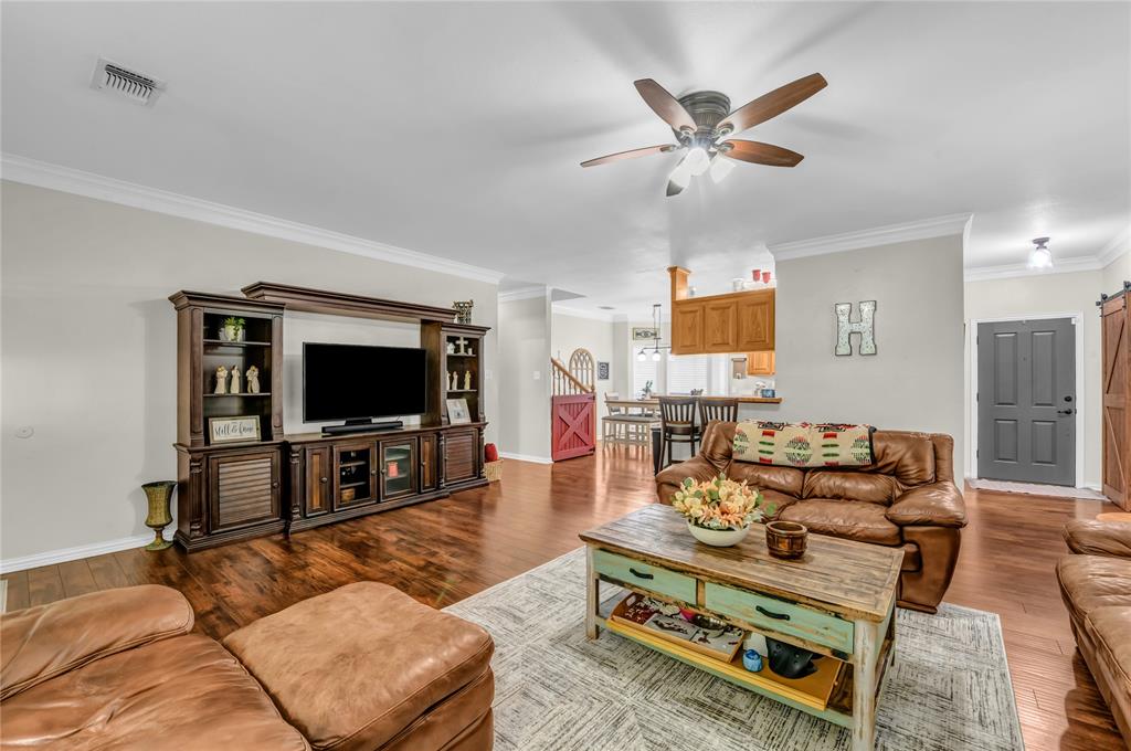 The open-concept kitchen and dining area flow seamlessly into the main living space, complete with wood-look laminate flooring, updated paint, and ample natural light throughout. Whether you’re hosting friends or enjoying a quiet evening at home, the layout is both functional and inviting.