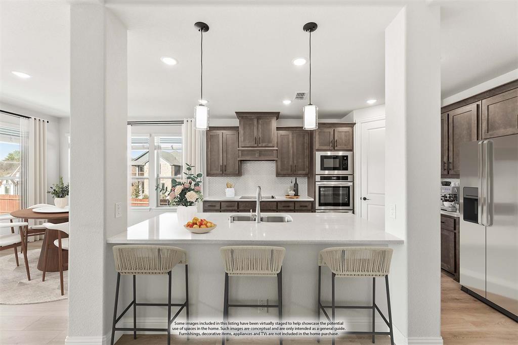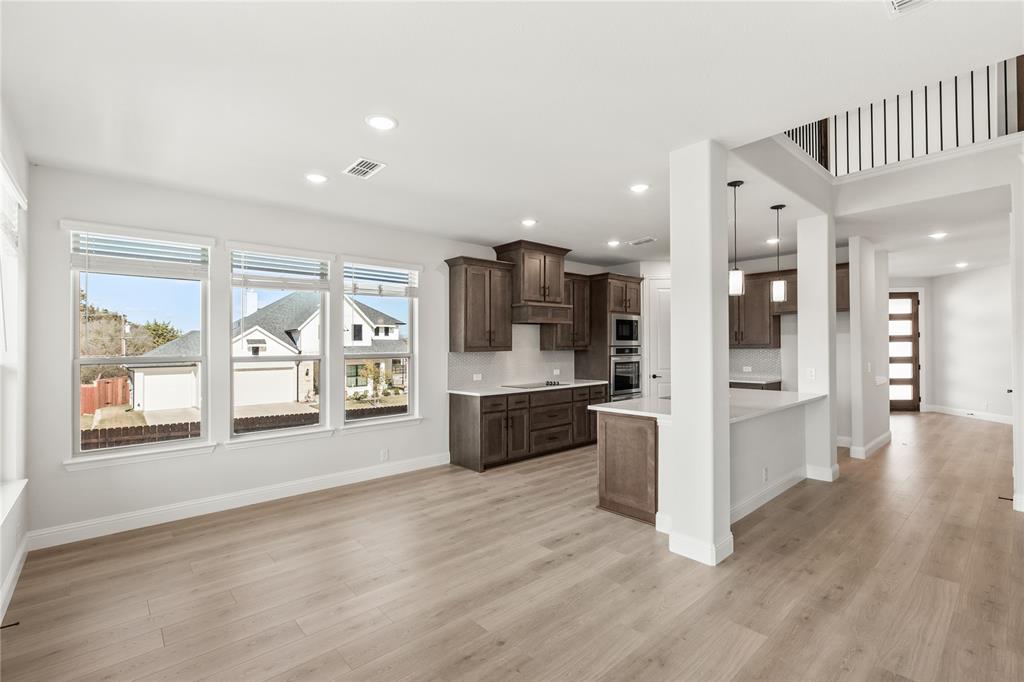 NEW! NEVER LIVED IN. Move-In Ready November 2025! Bloomfield Homes' Magnolia III has 6 bedrooms, 5 bathrooms, 4 covered outdoor areas, and space that’s built to handle real life. Premium corner homesite gives you a little more breathing room! The main floor includes 2 bedrooms—ideal for guests or multi-gen living—plus a Formal Dining Room, an open Family Room with a wood-burning fireplace, and a Gourmet Kitchen designed to keep things moving. Quartz counters, a walk-in pantry, and an oversized island open to the Breakfast Nook and Family Room. Laminate wood floors run through the main areas downstairs, and 8-foot interior doors give everything a taller, cleaner look. The Primary Suite is tucked away in back with 2 individual vanities, a garden tub, a separate shower, and a closet with room to spare. The other 4 bedrooms and 3 baths are found upstairs. A large game room sits at the center with access to the front balcony, while an open metal railing lines the staircase and catwalk above the living space. In-Law Suite upstairs has a lovely ensuite with a dual sink vanity, large shower, roomy closet, and its own private deck overlooking the backyard! On the first floor, there's more shaded outdoor space at the front porch and rear patio, both spacious enough for seating and decor! Other upgrades include a cedar door on the 2.5-car garage, 2-inch faux wood blinds preinstalled, an irrigation system, fresh sod, dedicated laundry room, an energy-efficient elements that help with monthly utility costs! Located in Ridgepoint with quick access to schools, parks, and local shopping. Bloomfield at Ridgepoint is open daily - stop in to take a peek!