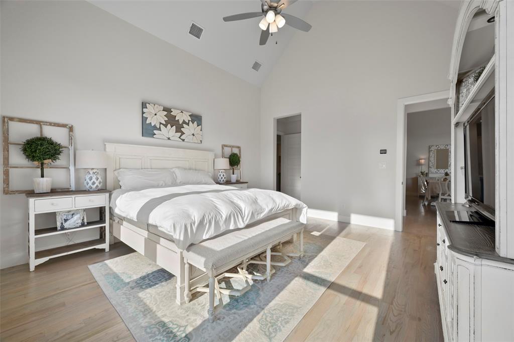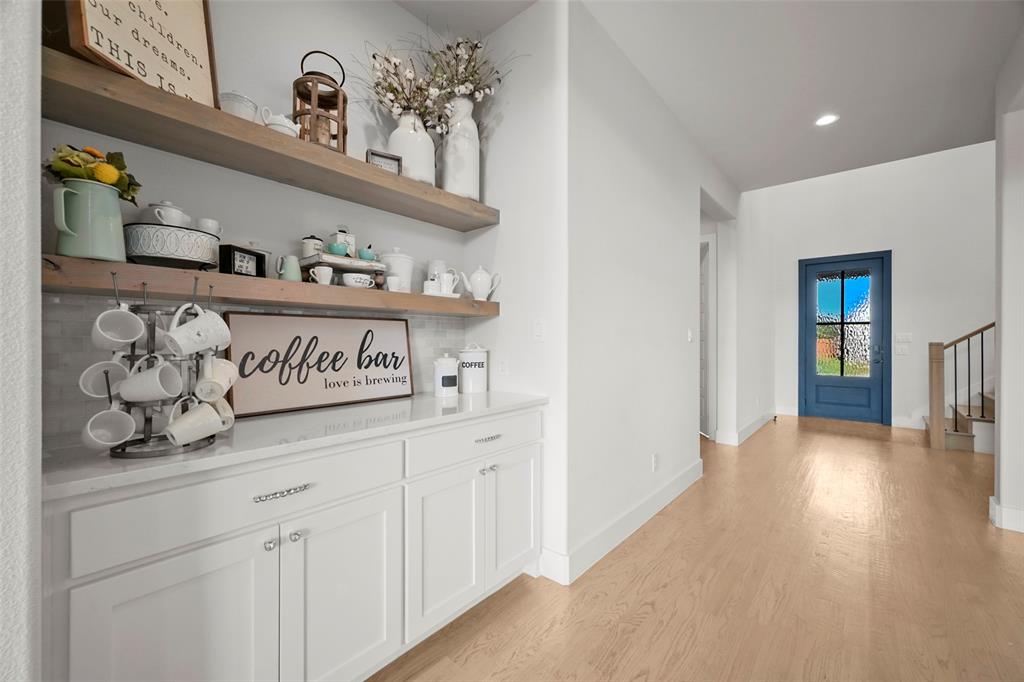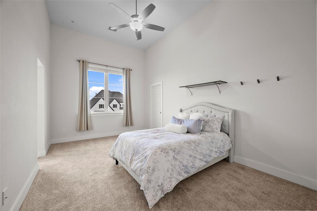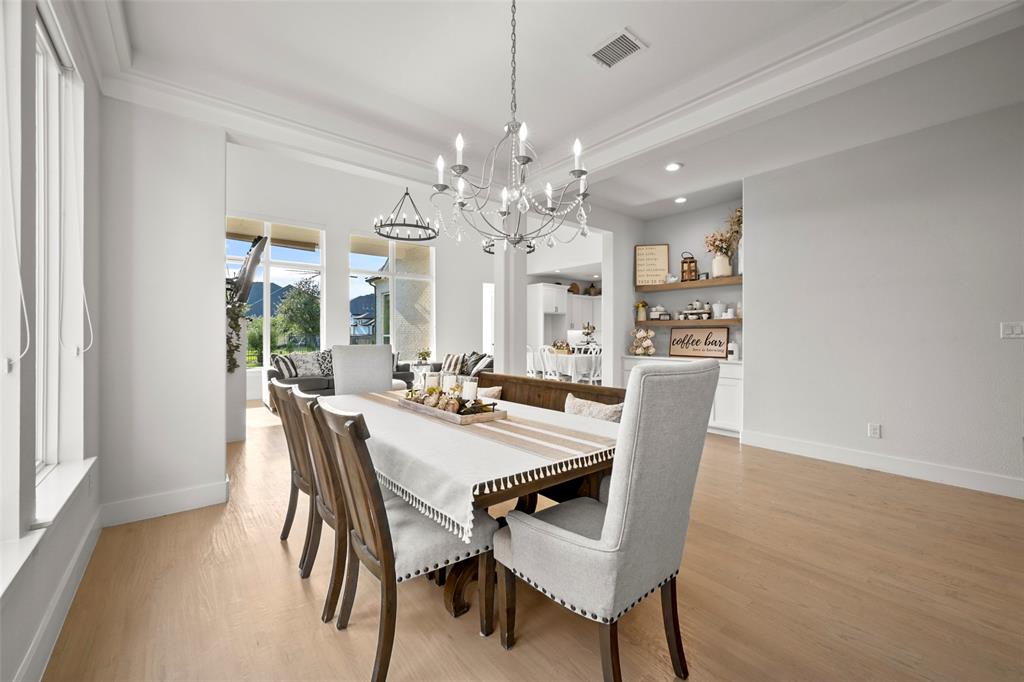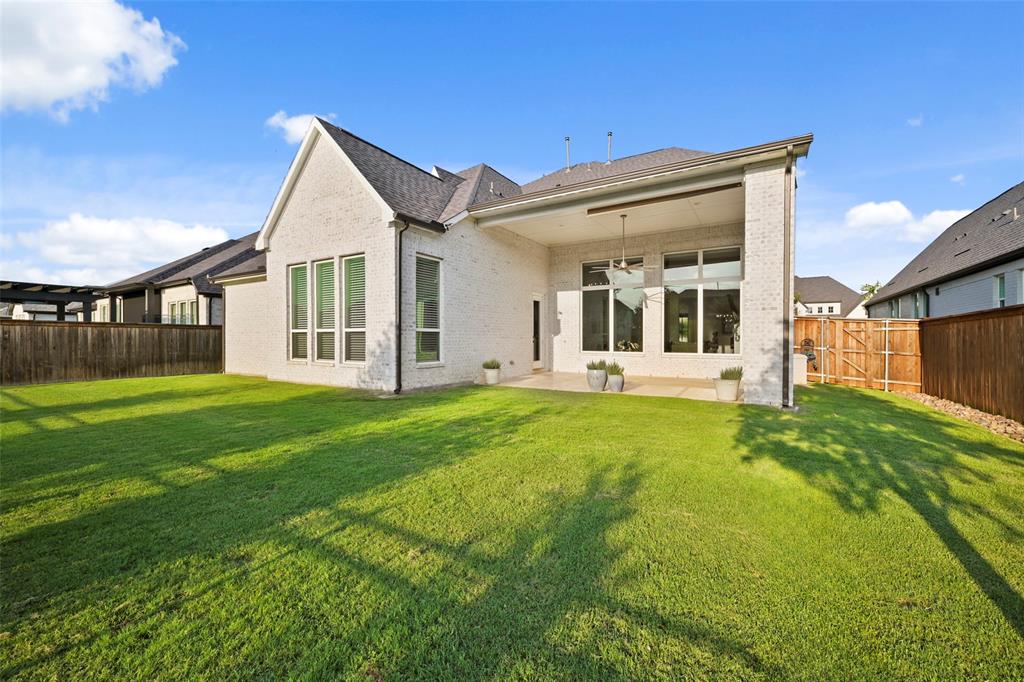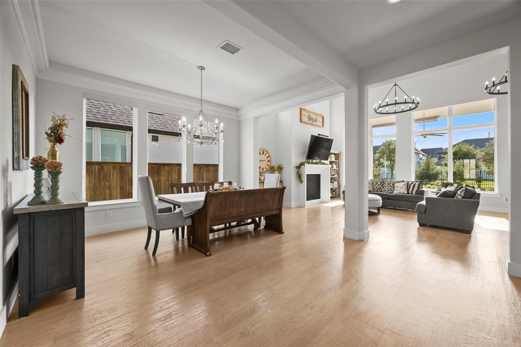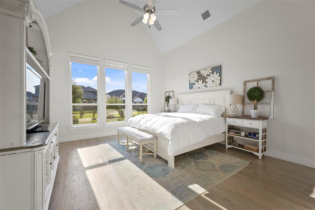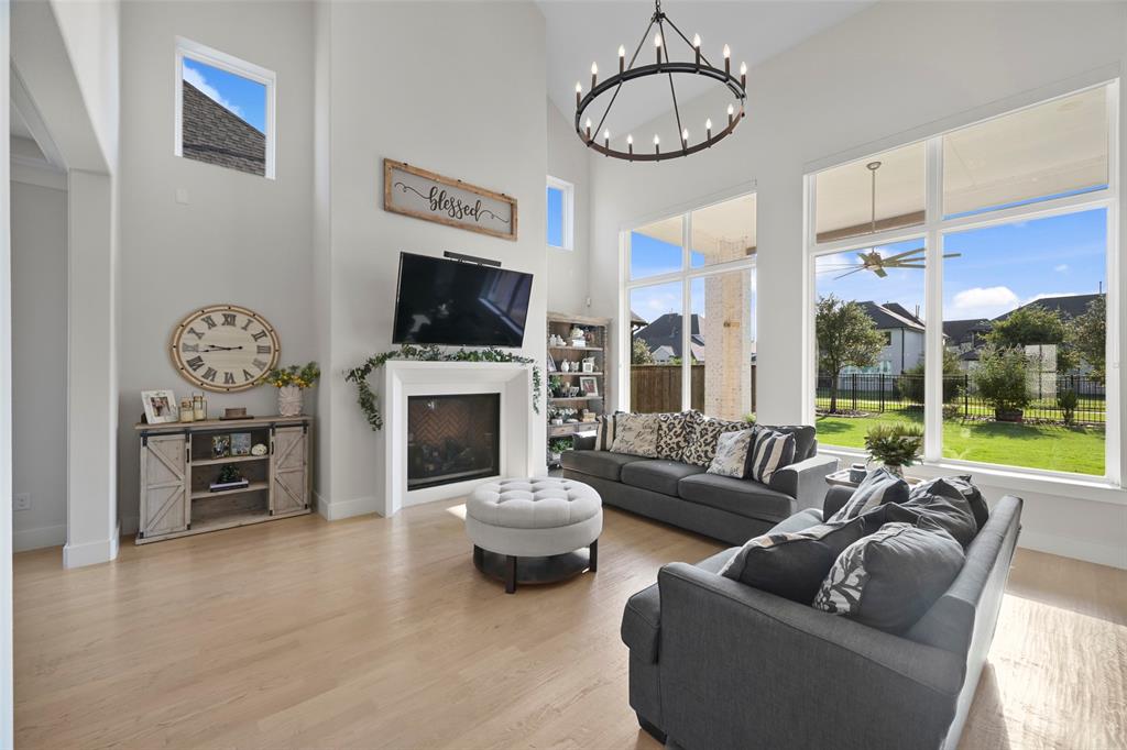 Large and beautiful modern Shaddock home in the highly sought after Grange section of the Light Farms master planned community with 5 pools, splash pad, tennis & pickleball courts, basketball courts, sand volleyball court, playgrounds, Nook restaurant & bar, dog park, Constellation lake and nature walking trails throughout the whole neighborhood. Home is priced to sell and won't last long. You'll have a hard time finding a better price per sq ft from a premium builder in this area. The location of this house in Light Farms is perfectly situated between the Barnyard, where many neighborhood events and parties take place (and houses the pool, courts, restaurant) and the lake, dog park, playground with a short walk to either location. This 4,675 sq ft house has 5 bedrooms (2 downstairs), 4.5 bathrooms, show-stopping raised study, large game room and media room, and backs to a greenbelt. This open concept home is light and airy with a wall of windows in dining and family room and loaded with upgrades with the entire first floor, partial stairs and study all covered with hardwood floors. All the carpet on second floor is brand new. Beautiful quartz counters, gas cooktop and double ovens in large kitchen with a huge pantry and a gorgeous dry bar with built-in shelves and cupboards in the dining area. Marble counters in primary bath with his and her walk-in closets, his and her vanities, an oversized shower and a stand-alone tub. Plus, walk-in closets in all secondary bedrooms. Ceiling fans throughout all bedrooms and study and on back patio. This home also includes a smart home package with video doorbell, 5.1 surround pre-wire with HDMI bundles and wireless access points for a hardwired secure network.