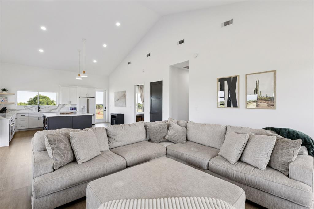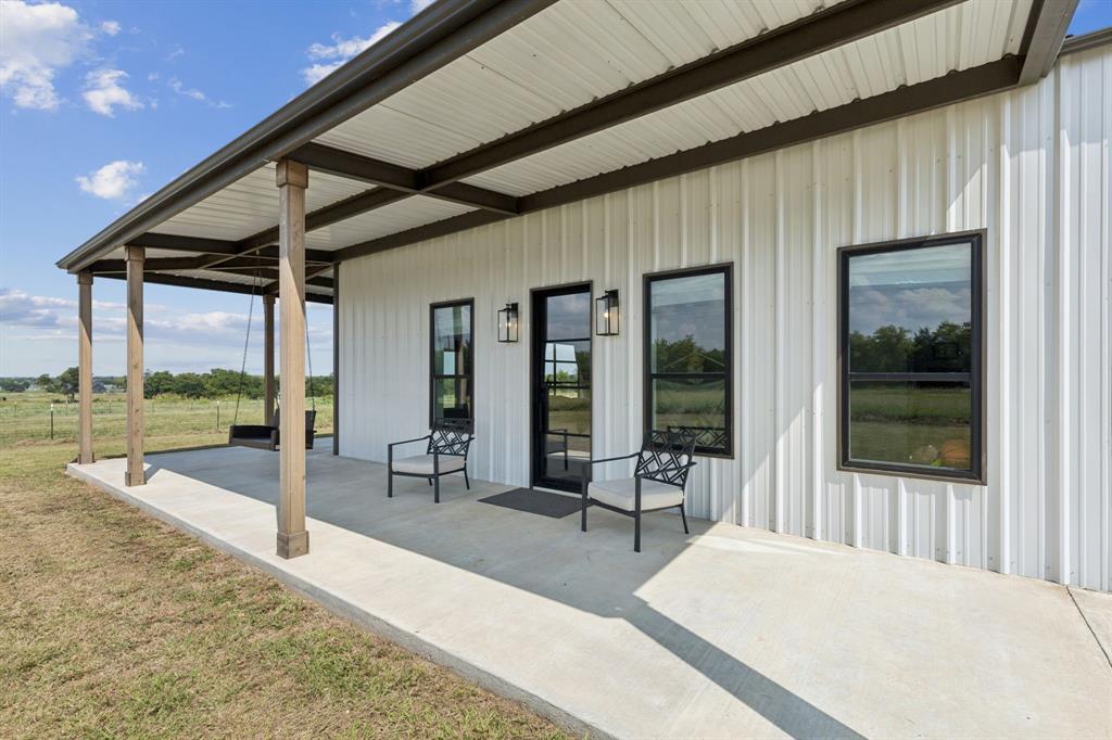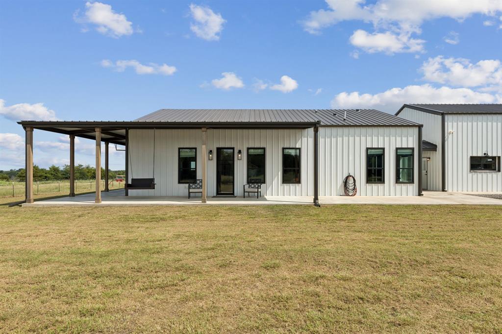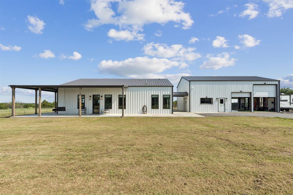 Barndominium living at its finest! Set on 8 beautiful acres in Celeste, this one-of-a-kind property blends modern design, smart features, and country charm. The 3-bedroom, 2-bath main home offers an airy open-concept floorplan with standout details, including a sleek Invisacook induction range, Café Series appliances, a walk-in pantry and butler’s pantry, and a dramatic glass roll-up door in the living room that expands your entertaining space to the outdoors. Enjoy stylish modern ceiling fans, a whole-house scent system, hidden pull-out laundry hampers in both bathrooms, blackout Roman shades in every room, and a huge master closet.