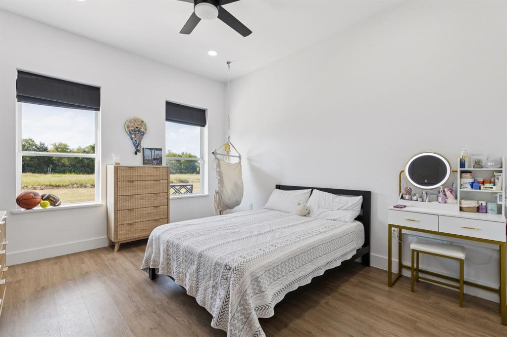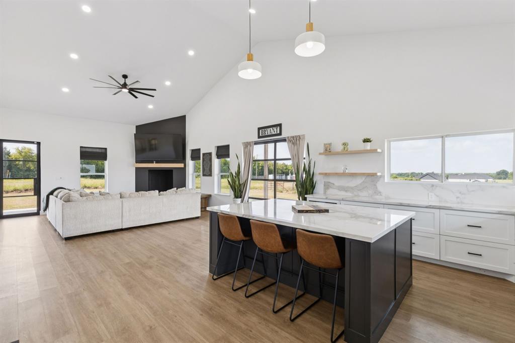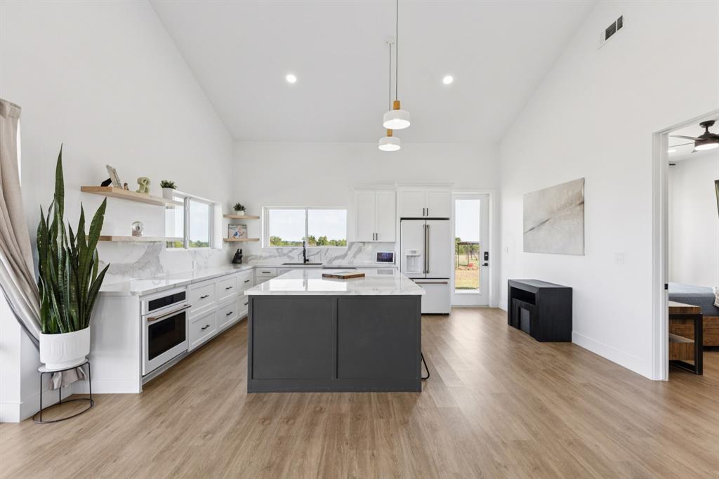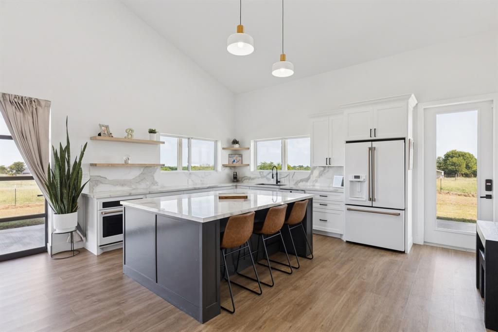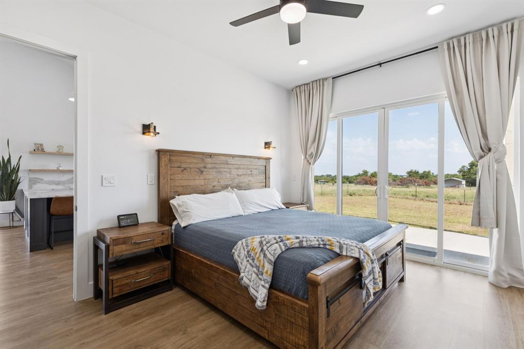 Barndominium living at its finest! Set on 8 beautiful acres in Celeste, this one-of-a-kind property blends modern design, smart features, and country charm. The 3-bedroom, 2-bath main home offers an airy open-concept floorplan with standout details, including a sleek Invisacook induction range, Café Series appliances, a walk-in pantry and butler’s pantry, and a dramatic glass roll-up door in the living room that expands your entertaining space to the outdoors. Enjoy stylish modern ceiling fans, a whole-house scent system, hidden pull-out laundry hampers in both bathrooms, blackout Roman shades in every room, and a huge master closet.