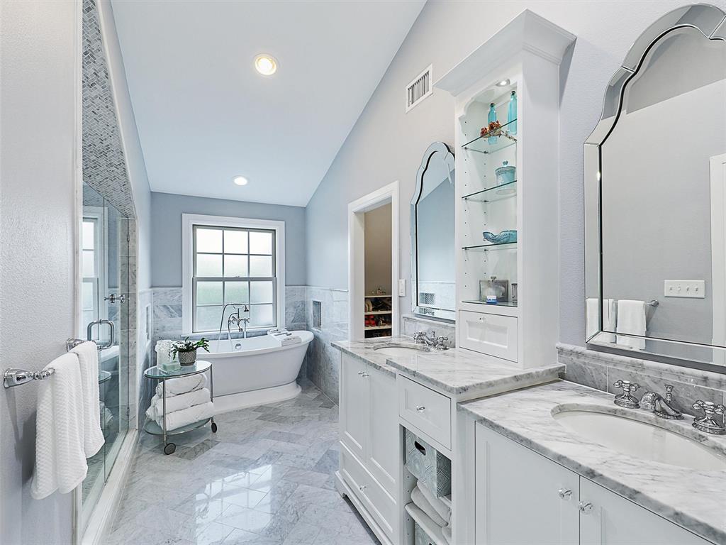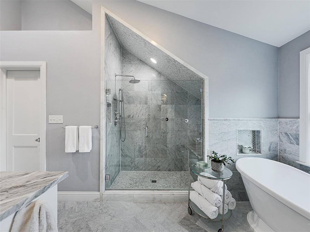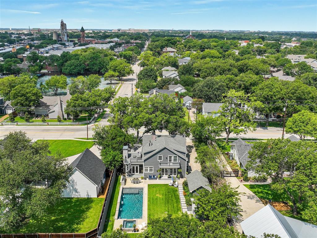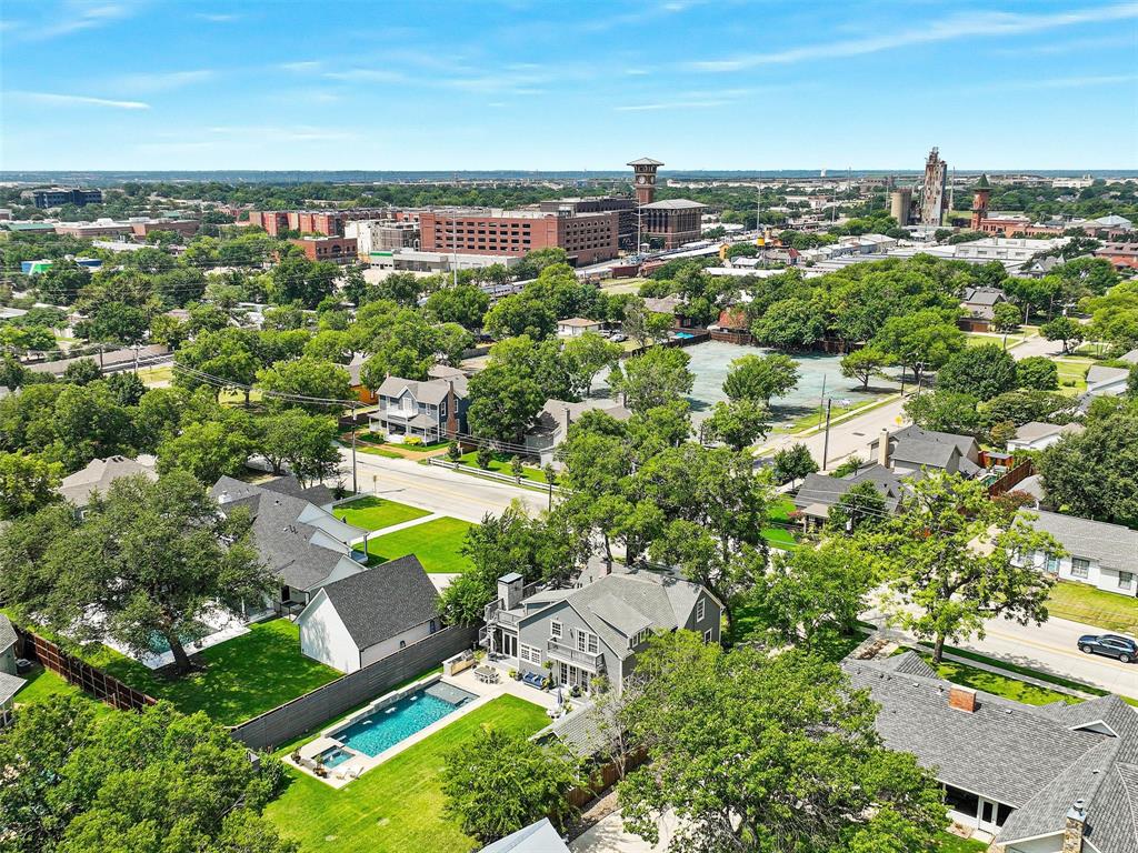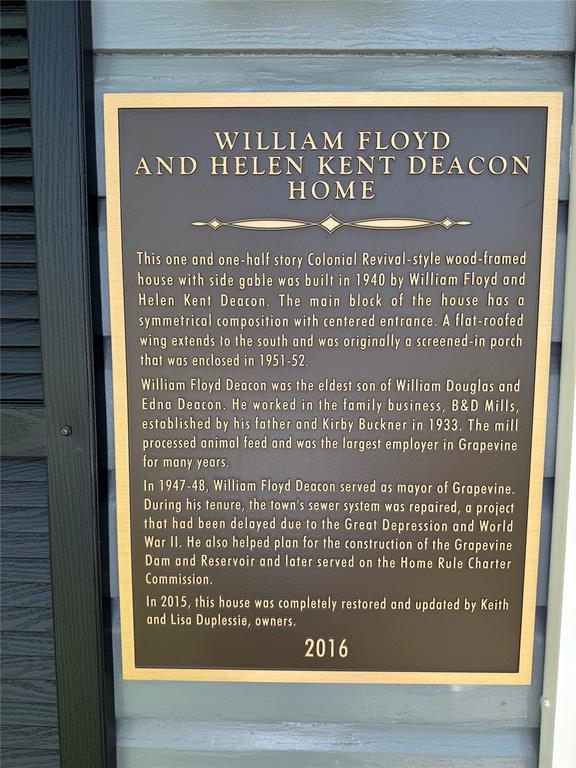Live your best life in one of the most desirable homes in Historic Grapevine, located on a leafy residential street surrounded by exquisite examples of classic architecture. A truly walkable lifestyle just steps to Main Street, Hotel Vin, the historic train station, and the dining, shopping and live music that make this charming city so unique. The historically significant home was built in 1940 by former Grapevine Mayor William Floyd Deacon. A thorough and award winning renovation was completed in 2015, preserving all of the history and charm and adding sophisticated modern livability. Sumptuous Bianco Venatino marble, Wolf commercial range, brilliant floor to ceiling windows, gleaming wood floors, and a spacious open floor plan make this home as functional as it is beautiful. Situated on a generous third-acre lot with a stunning 2021 pool, spa, outdoor kitchen and screened in porch, the outdoor living space is a perfect backdrop for the Gatsby lifestyle with croquet and badminton on the expansive lawn, and homemade ice cream and rummy on the romantic screened in porch complete with fireplace. The dramatic dining room has walls of windows bringing the outdoors in for the most intimate and memorable dinner parties. When the sun goes down repair to the spacious rooftop terrace nestled in the tree tops. Join your neighbors on the lawn for the annual Christmas parade that goes right down the street. DFW Airport is just minutes away and the train to downtown Forth Worth is just a short stroll down the street. Glamorous marble-clad primary suite has soaking tub, dual vanities, oversized shower and walk in closet. Each of the three additional beds and baths are equally beautiful with their own unique style. Designer tile & lighting throughout. Energy efficient: Spray foam, dual tankless water heaters, dual zone ACs & LED throughout. The spacious lot has plenty of room to add a larger garage if desired, as the neighbors on either side have done. This home has it all!