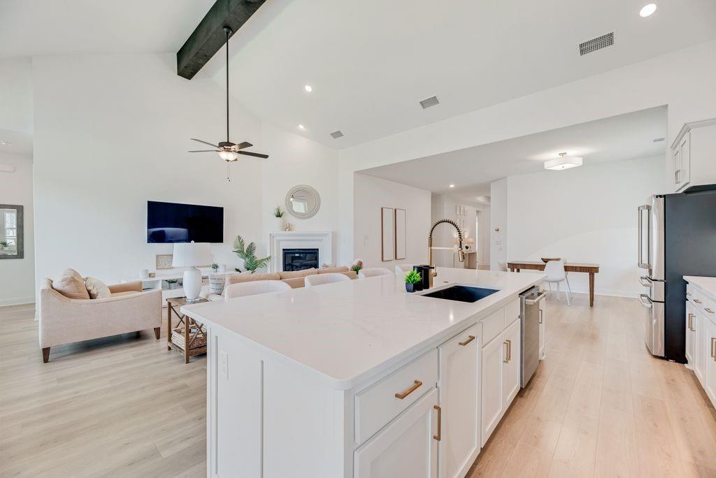 Step into effortless style and comfort in this David Weekley home - Caroline (model) floor plan! All on one level! Thoughtfully built in 2023. From the moment you enter, you’re welcomed by a bright, open layout that flows seamlessly into the sun-filled main area. With its vaulted ceiling, cozy fireplace, and expansive picture windows, the space feels both inviting and expansive. Step outside to the covered back porch—perfect for morning coffee or evening gatherings.