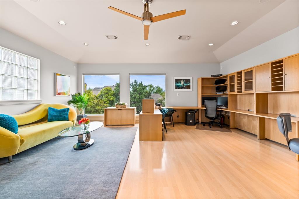 In a world of ordinary, 5608 Stone Cliff Court is unapologetically extraordinary—a Simmie Cooper original that marries bold contemporary design with a lifestyle of ease, privacy, and prestige. In the coveted, guard-gated enclave of Oakdale, where tree-lined streets meet architectural artistry, this custom estate is a statement of modern luxury. Perfectly placed at the end of a private cul-de-sac, it offers a serene retreat without sacrificing the convenience of Bent Tree Country Club, fine dining, and Plano ISD’s premier schools. Inside, sunlight pours through walls of windows, dancing across soaring ceilings and open, flowing spaces. The heart of the home chef’s kitchen, equipped Sub-Zero refrigeration, a Wolf gas cooktop, four Wolf ovens, and a commercial vent hood ideal for culinary adventures and gatherings that spill naturally into the expansive living areas. A striking fireplace anchors the room, panoramic views draw you to the outdoor living spaces. Beyond the glass, discover a private resort setting: a covered lounge, built-in outdoor kitchen, and a shimmering pool with fountains, spa, and lush landscaping—perfect for everything from summer soirées to quiet evenings under the stars. The main-level primary suite is a sanctuary of calm, with a fireside sitting area, dual custom closets, and a spa-inspired bath complete with steam shower. A second ensuite bedroom downstairs provides comfort and privacy for guests or multi-generational living. Upstairs, three oversized ensuite bedrooms each feel like a private retreat, complemented by a media room with wet bar, a spacious home office, and a versatile flex space for a gym, playroom, or studio. With a slate roof, Spanish tile, travertine floors, whole-home sound system, and timeless architectural detail, this is a residence where quality and design are paramount. For those who value security, exclusivity, and a lifestyle that blends sophistication with ease, 5608 Stone Cliff Court is the ultimate Dallas address.