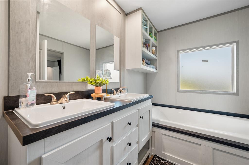 The oversized primary suite offers a relaxing ensuite with a dual sink vanity, garden tub, and separate shower. With the split-bedroom layout, the two additional bedrooms are tucked away on the opposite side of the home for extra privacy. You’ll also find a full-size laundry room with shelving for pantry space and as a huge bonus, the washer and dryer stay! Out back, a 31x30 concrete slab is already in place, perfect for adding a massive porch or anything else you dream up. Come take a look before it’s gone!