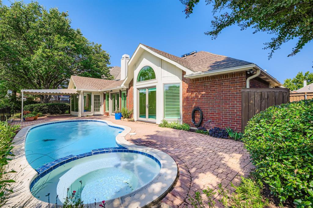 Beautifully updated 4-bedroom Frisco home with a Sparkling pool and heated spa, overlooking a pond and the Plantation Resort golf course. Freshly painted interior with new carpeting installed, you will be impressed by this meticulously maintained home. Your family will love the spacious living rooms and bedrooms as well as enjoying many hours in this Sparkling pool and heated spa. The formal living and dining rooms are perfect for many family gatherings and celebrations. The kitchen is filled with stainless steel appliances, and the kitchen refrigerator will stay for the new owner.
