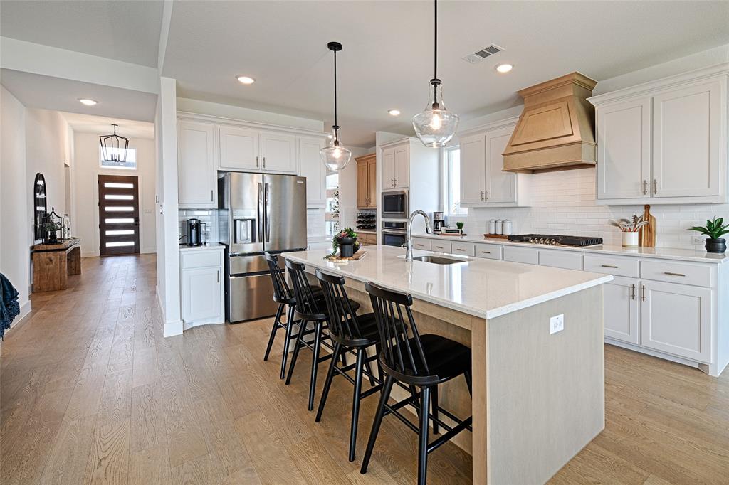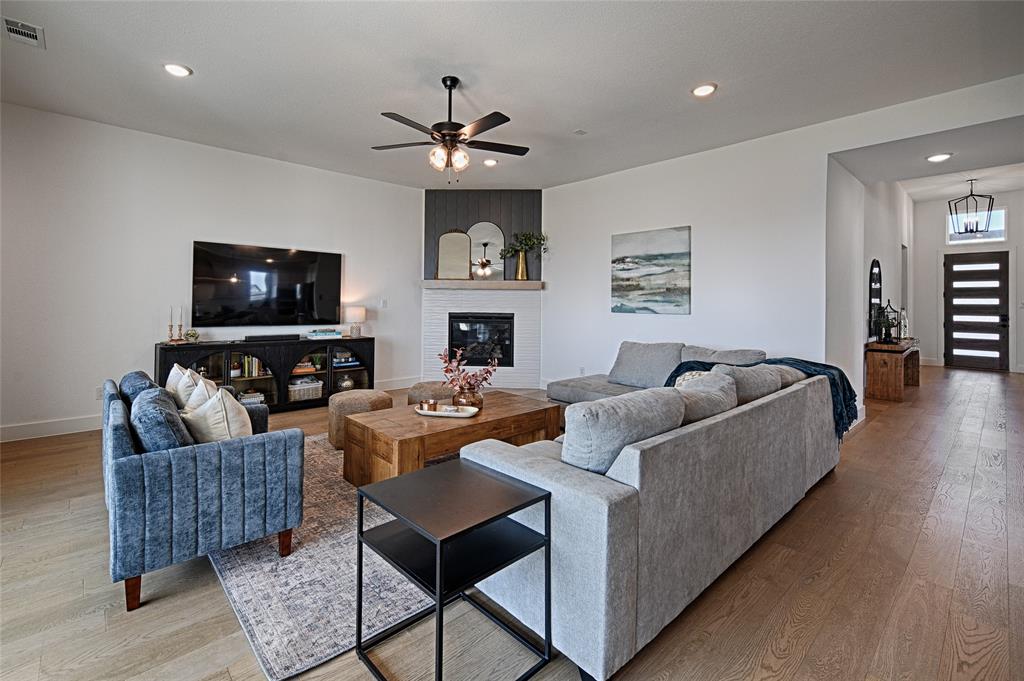 This beautiful mid-century modern home features 3 bedrooms, 2.5 baths, a designated office and even a game room... all on one-story! This home has ALL the upgrades, including the stunning 12-ft sliding glass doors located in the Great Room giving you the best view in the neighborhood. Gorgeous kitchen features quartz countertops and a gas stove with a huge island that opens up to the Great Room and is perfect for entertaining. Large Primary Suite is separate from other bedrooms and includes a large walk-in shower and boasts a large soaker tub. Beautiful accents of shiplap are included throughout the home including in the kitchen, mudroom and Great Room over the fireplace. This home features a Texas-sized 2-car garage with entry from the front entryway and mudroom as well as single stall garage with entry from the utility room. Neighborhood includes a newly built community pool as well as walking trails and access to ponds for fishing. This home has 3 This community gives you the country feel yet is only minutes away from all your shopping conveniences in Alliance. See available virtual tour link and also search address on YouTube for a detailed video walk-through of this home!
