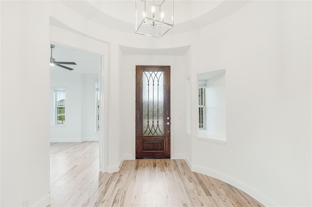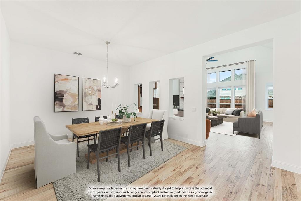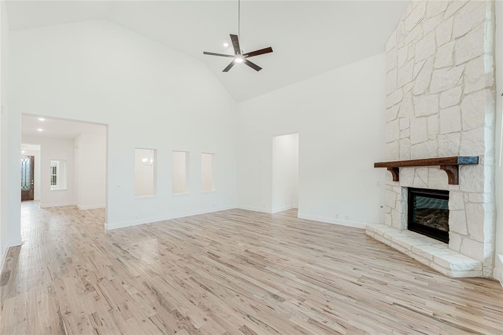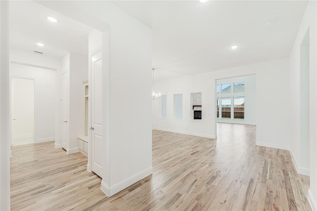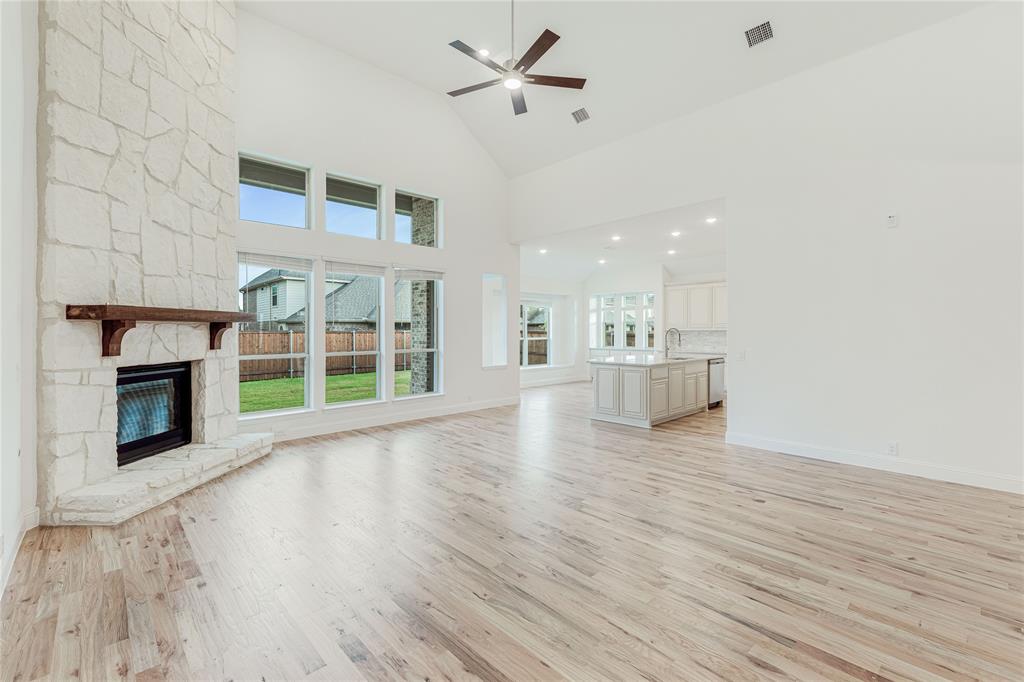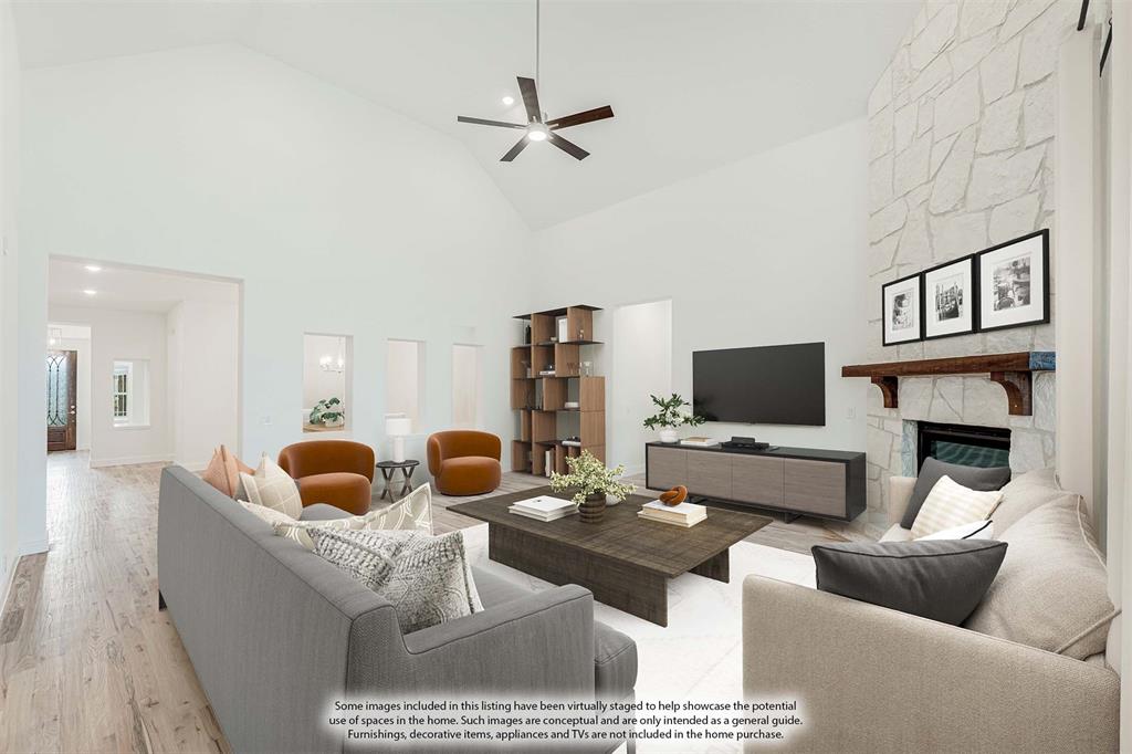 *$20K to use towards closing cost, rate buydown or off price!* NEW! NEVER LIVED IN. Expected November 2025 Move-In. Let us introduce you to the Primrose plan by Bloomfield Homes - offering 2800 square feet with a huge Primary Suite, 2 garage bays (3-car), 2 dining areas, study, powder bath, split secondary bedrooms, and elegant storage solutions. Oversized interior lot with generous yard space too! A rotunda-style foyer sets the tone with its graceful curve and warm wood flooring that continues through the main living areas. In the Family Room, sunlight filters across the floor and reflects off an 18-foot white stone fireplace that touches the vaulted ceiling. Soft color palette and textures found in the Deluxe Kitchen: painted cabinets finished in a soft cream with glaze, Level 3 granite counters with subtle veining, pearlescent mosaic backsplash, a stainless single-bowl sink, and a broad island that feels as much a gathering spot as a workspace. A window seat in the breakfast nook offers the perfect perch to watch the day begin. The Primary Suite sits at the back for quiet privacy, where the walk-in closet is spacious and the bath features a dual sink vanity topped by Level 2 quartz, a drop-in tub surrounded by travertine-look tile, and a separate glass-enclosed shower. Secondary bedrooms are light-filled with built-in shelving and easy access to the hall bath finished in ivory tile. Glass doors frame the dedicated Study, which can be utilized as a 4th bedroom if needed. The mudroom is smartly placed between the garage and living space, with a storage cabinet for quick drops and a separate utility room with a sink. There’s more room for a dining or lounge set on the extended covered patio overlooking the huge fenced yard. Details like cedar garage doors, upgraded brick and stone exterior, tankless water heater, and full landscaping complete the home. Tour the community amenities, this new build, and Bloomfield's model by visiting - we're open daily!