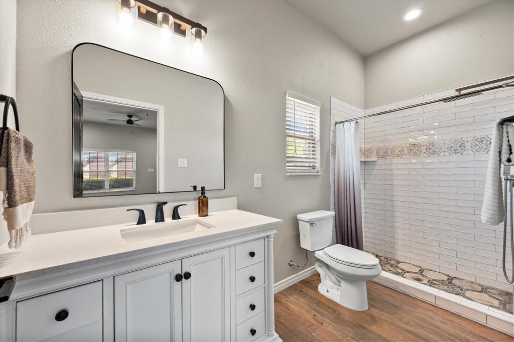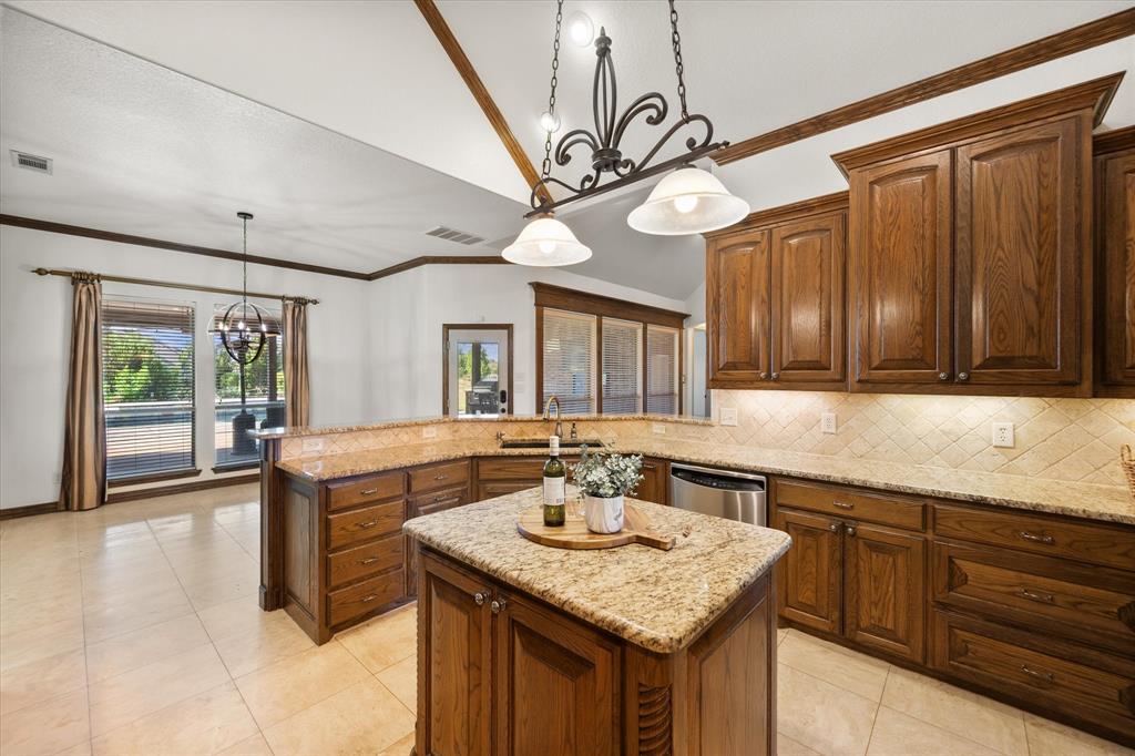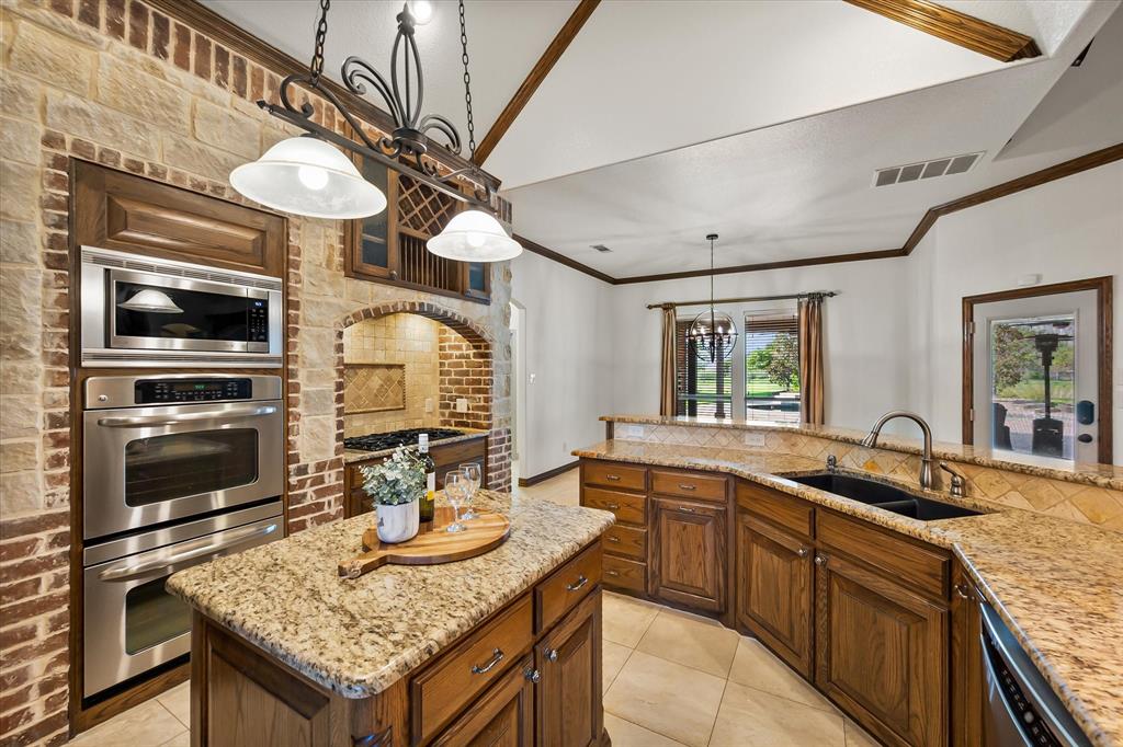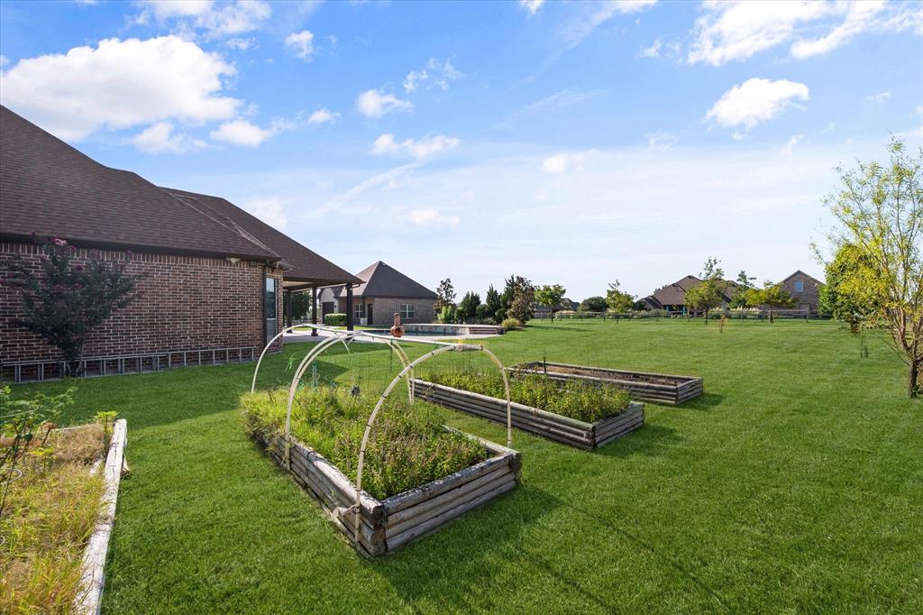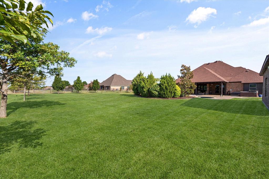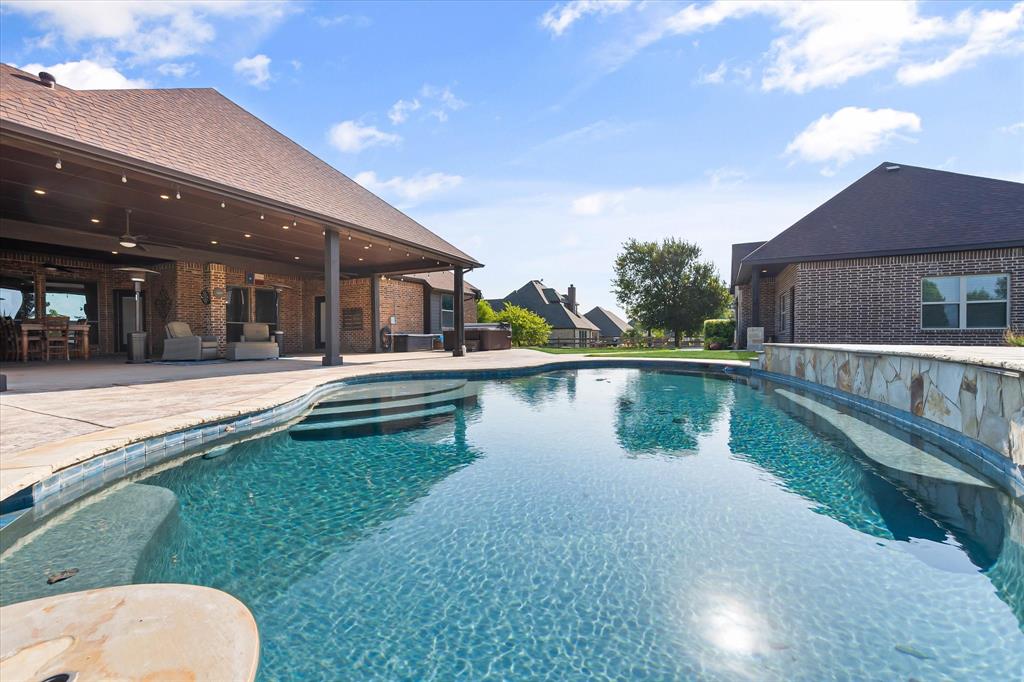 Immaculate single-story home on 1 acre in the highly desirable Vista Ranch community. With 4 spacious bedrooms, each with direct bathroom access, and a versatile 5th room perfect for a media room, game room, quiet home office, or gym, this home offers both comfort and flexibility. The thoughtful design includes split bedrooms, cathedral ceilings, true hardwood flooring, stain grade wood trim, and beautiful brick and stone detailing around the fireplace and kitchen. Special touches like a built-in spice rack in the pantry, generator outlet in the garage, and an abundance of closet storage make everyday living simply easier. Step outside to an outstanding backyard with a refreshing lagoon-style play pool, lush landscaping, and a covered patio that seamlessly extends your living space year round. A separate studio building with it's own 2 ton HVAC adds even more possibilities for independent living of an adult child, an aging parent or privacy for a regular visitor. *Tandem garage is fully insulated to allow for expansion of living if desired* This entire estate offers a lucky buyer the perfect blend of luxury and practicality. Zoned to Northwest ISD, this estate-style neighborhood is perfect for those who value space, quality finishes, and a strong sense of community.