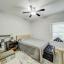The private primary suite boasts laminate floors, a contemporary frosted-glass sliding door to the ensuite bath, a glass walk-in shower, an L-shaped vanity, and a generous walk-in closet. Two additional bedrooms offer flexible space for guests, a home office, or hobby room.