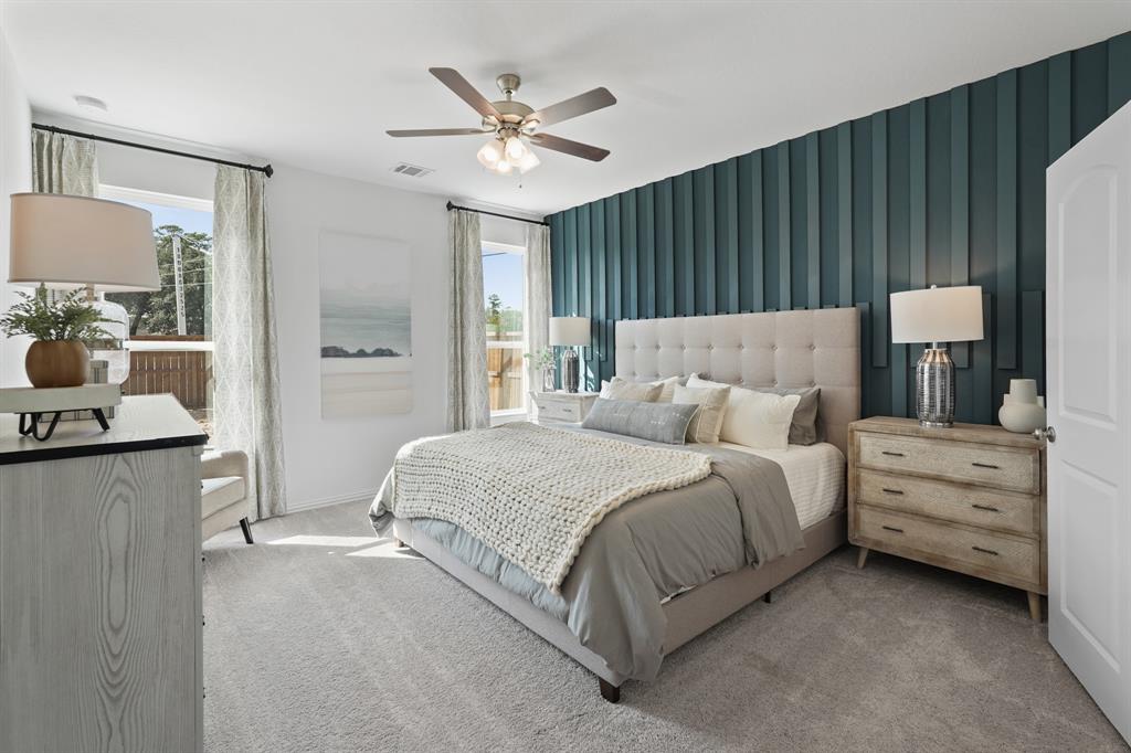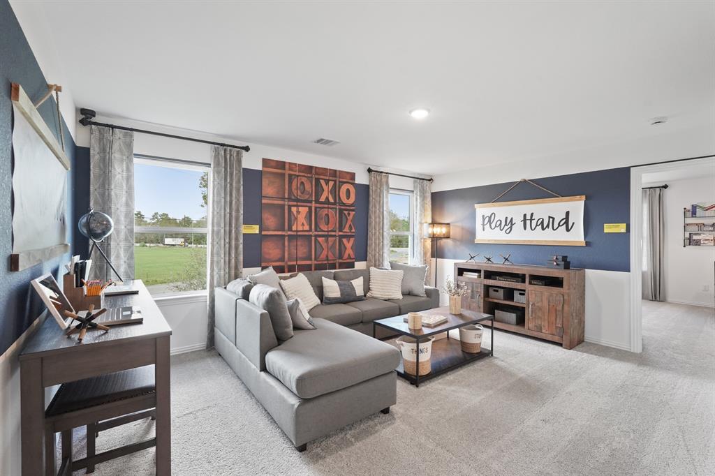 MLS# 21027574 - Built by HistoryMaker Homes - Oct 2025 completion! ~ 4.99 FIXED RATE PLUS 10K CC INCLUDED!! Copperwood, Elevation H, 2,331 four Bedroom three bath, and spacious game room. Two bedrooms located downstairs in an open concept floorplan style home that will have Linen- 42 inch cabinets, built-in stainless-steel whirlpool appliances, a great sized island with Bayshore quartz countertops, and plenty of space for entertainment. The main areas will have a copano oak luxury vinyl flooring and bedrooms, as well as upstairs will have carpet. The primary will include a both a tub and shower, dual sinks, and a large walk in closet. If you like the outdoors you will have plenty of space for some family fun, fury friends, and plenty of space to cool off under a great sized covered patio! You will not want to miss out!