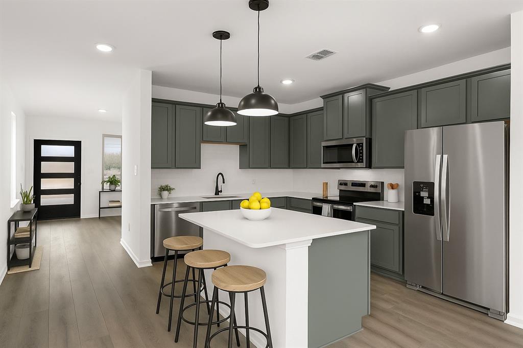 MLS# 21027636 - Built by HistoryMaker Homes - Oct 2025 completion! ~ 4.99 FIXED RATE PLUS 10K CC INCLUDED!! Tarrant, Elevation H, 1,750 Three Bedroom two bath, with a study, open concept home that will have truffle 42-inch cabinets, stainless steel whirlpool appliances, a great sized island with blanco quartz countertops, and plenty of space for entertainment. The main areas will have a copano oak luxury vinyl flooring and bedrooms will have carpet. The primary will include a 60-inch shower, dual sinks, and a large walk in closet. If you like the outdoors you will have plenty of space for some family fun, fury friends, that includes a 160 sq ft. large concrete patio for plenty of space for some entertainment! You will not want to miss out!
