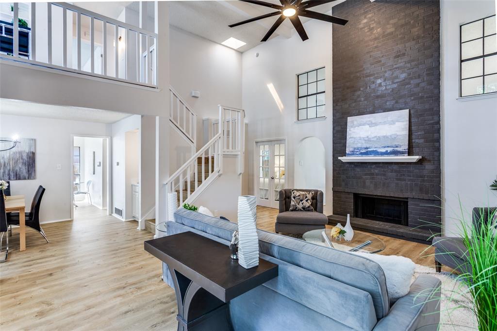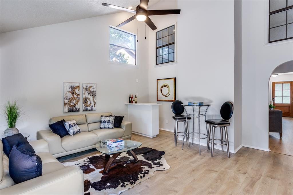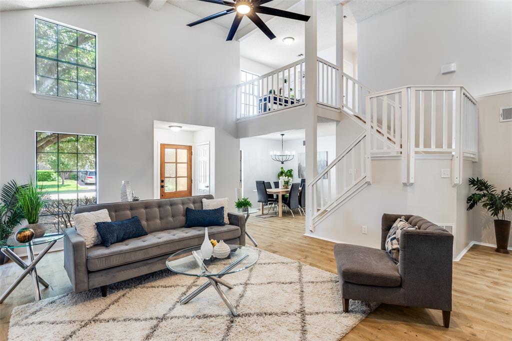 Step into this beautifully designed residence that boasts high-end finishes and modern touches throughout. As you enter, you are greeted by soaring vaulted ceilings and an elegant ceiling fan that enhances the spacious ambiance.